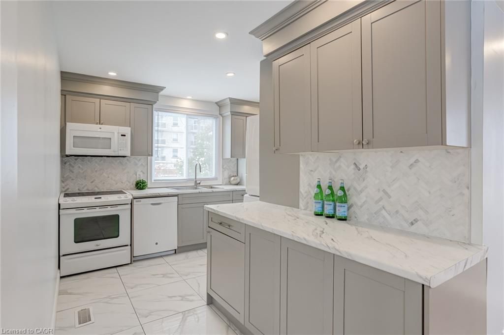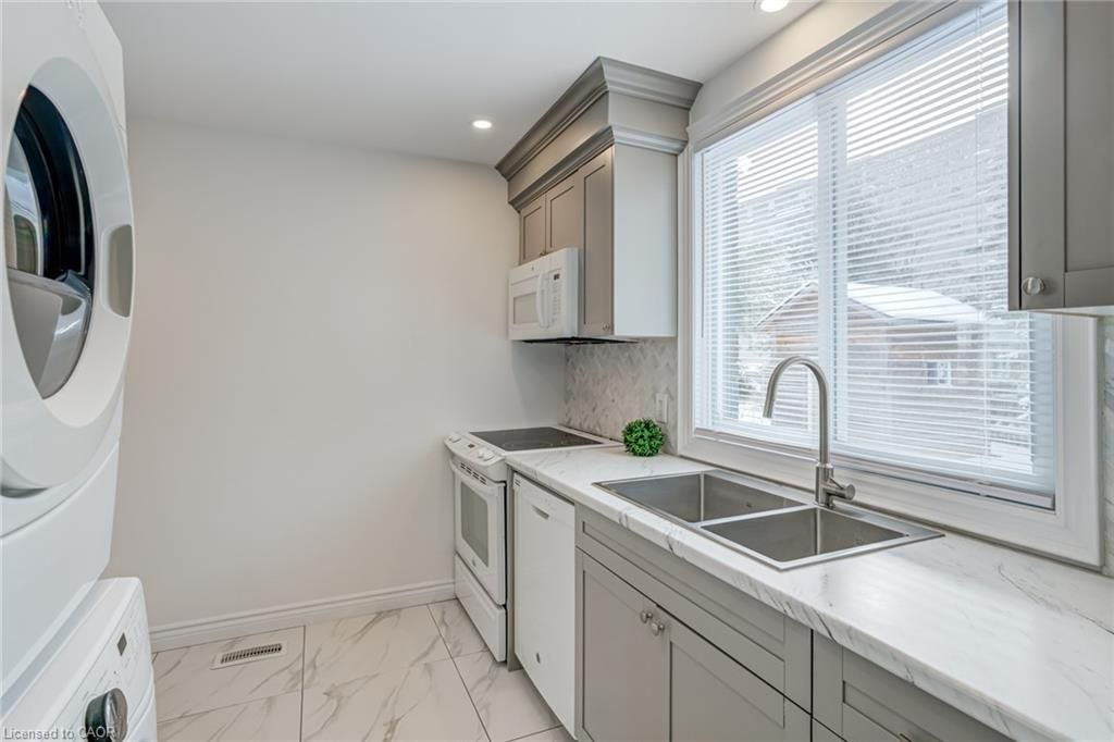 • Spacious kitchen with ample cabinetry and in-suite laundry.