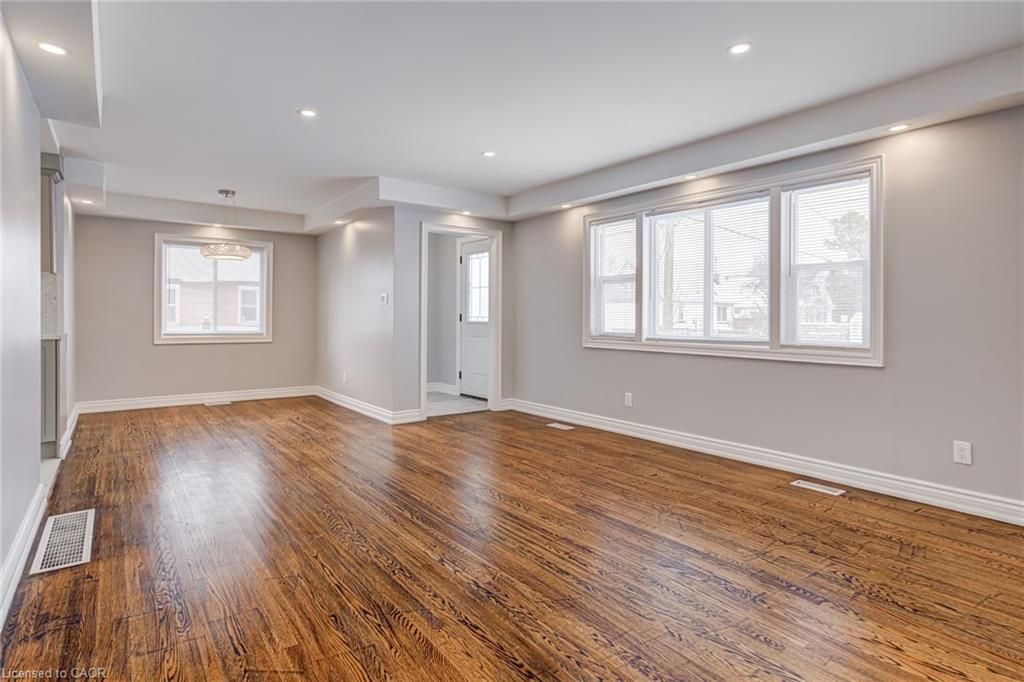 Welcome to this impeccably updated and meticulously maintained 3+2 bedroom raised bungalow, offering a full in-law suite with a separate side entrance and parking for up to five vehicles. Perfectly situated in a quiet family-friendly hamilton mountain neighbourhood and close to all amenities, this turn-key home delivers comfort, style, and exceptional versatility for multi-generational living or investment potential. The main level features a bright, open-concept living and dining area enhanced by smooth ceilings, recessed lighting and tasteful modern finishes throughout. The spacious kitchen offers ample cabinetry and convenient in-suite laundry. Three generous bedrooms and an updated 4-piece bathroom complete this level creating an inviting space ideal for families. A private side entrance leads to the beautifully finished lower-level in-law suite designed with comfort and independence in mind. This impressive space includes a large living area, an updated kitchen, two sizable bedrooms with large egress windows, a contemporary 4-piece bathroom with semi-ensuite access and its own oversized laundry area complete with abundant cabinetry and a custom folding counter. Additional highlights include a fully fenced backyard, a recently built custom garden shed, carpet-free interior and a fire suppression sprinkler system for added peace of mind. A rare opportunity in a prime location, move in and enjoy or take advantage of exceptional income and multi-family living options, this home truly has it all. Offering outstanding value, this property boasts an endless list of upgrades including a new roof (2022), new furnace/ac/hot water tank/windows/exterior doors/basement sprinkler system/type x fire-rated barrier/upgraded attic and exterior wall insulation (2019), updated plumbing and electrical (2016). *** some images have been virtually staged ***