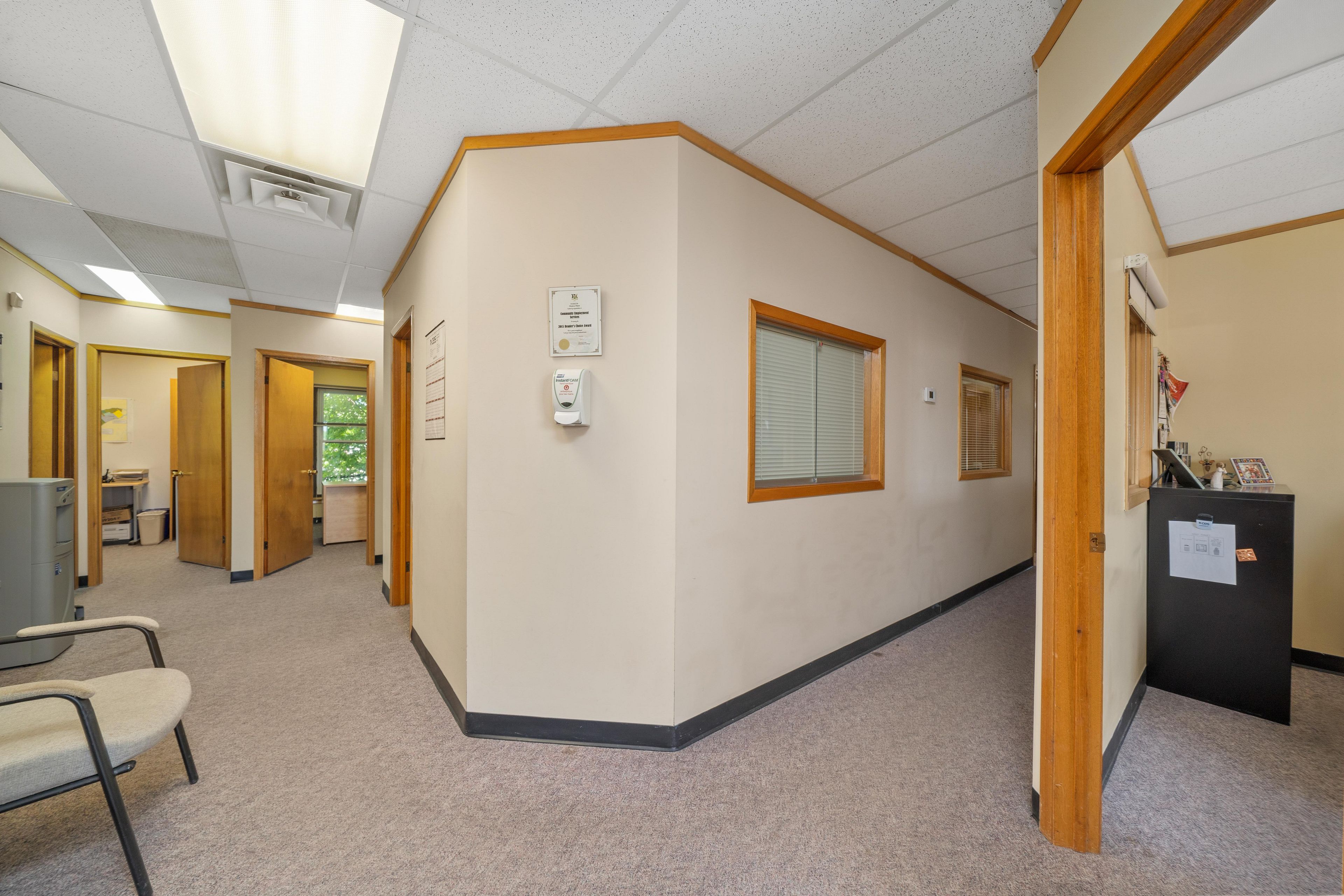 • Bright second-floor space with plenty of windows for natural light.