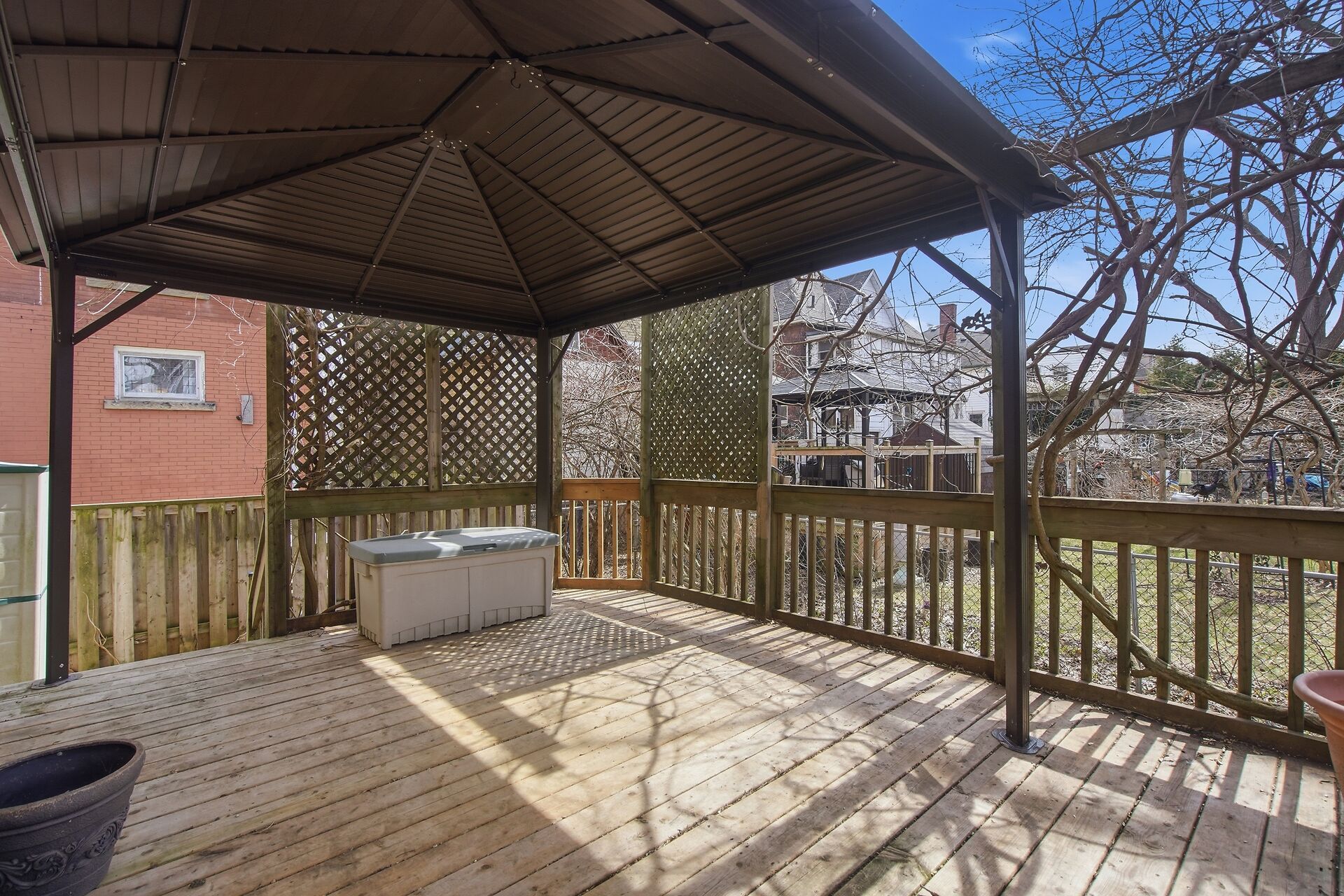 • Fully fenced yard with a covered deck for summer evenings and entertaining.