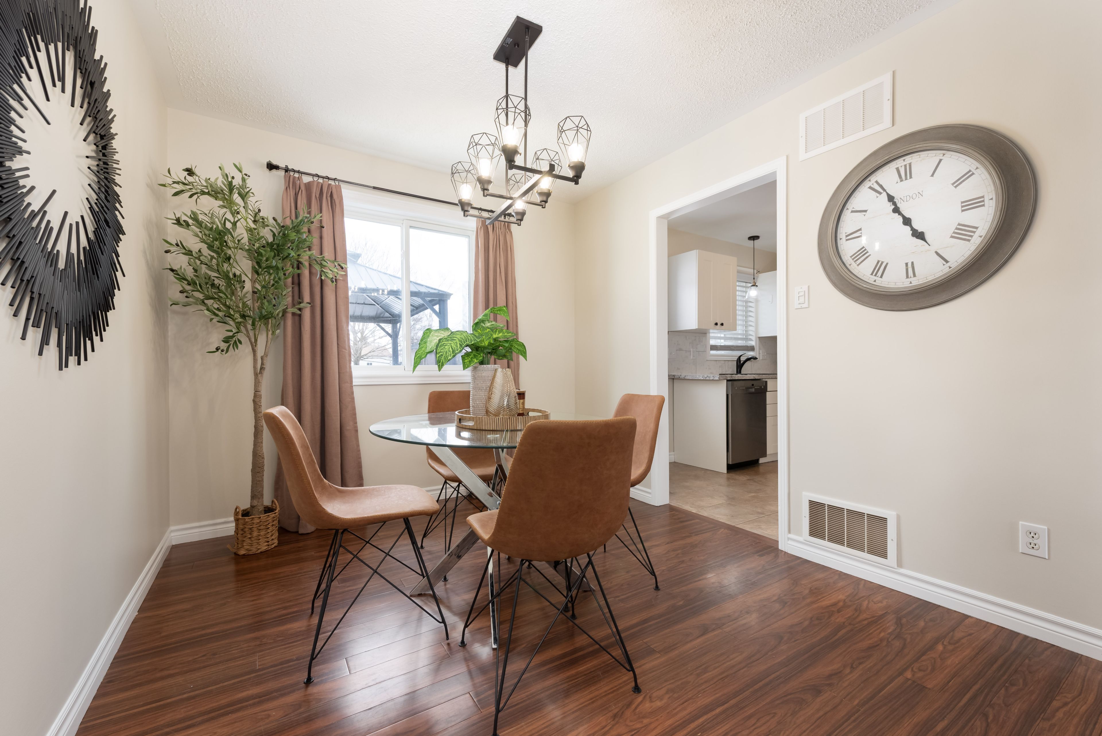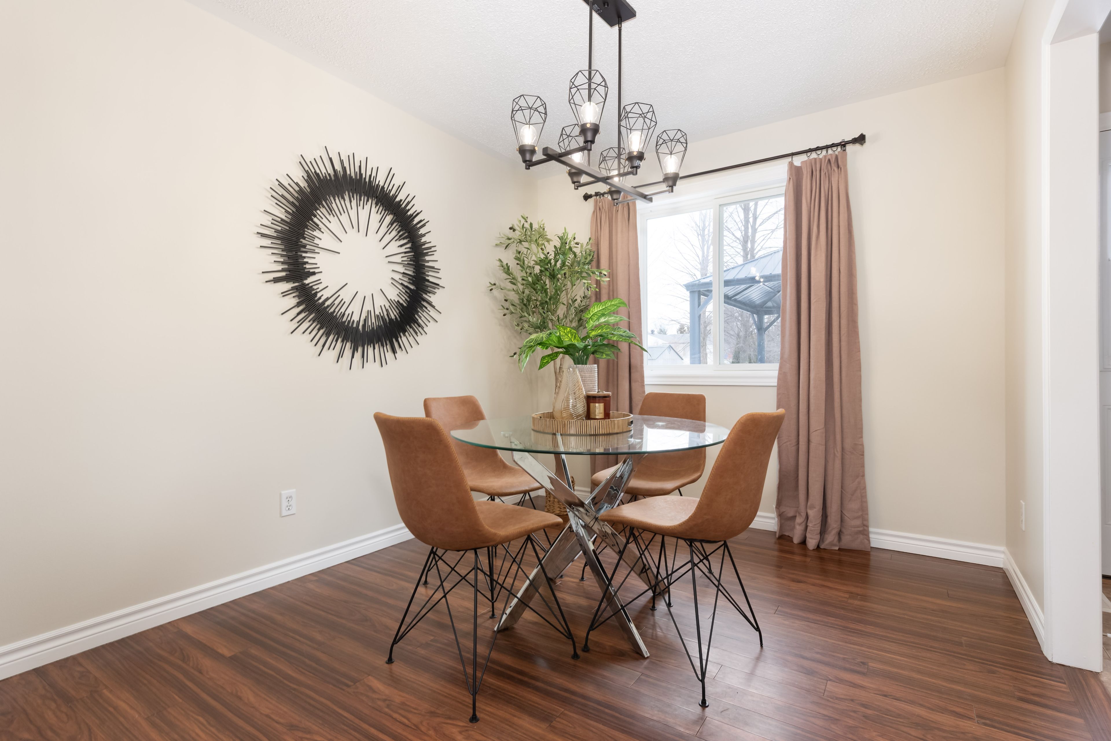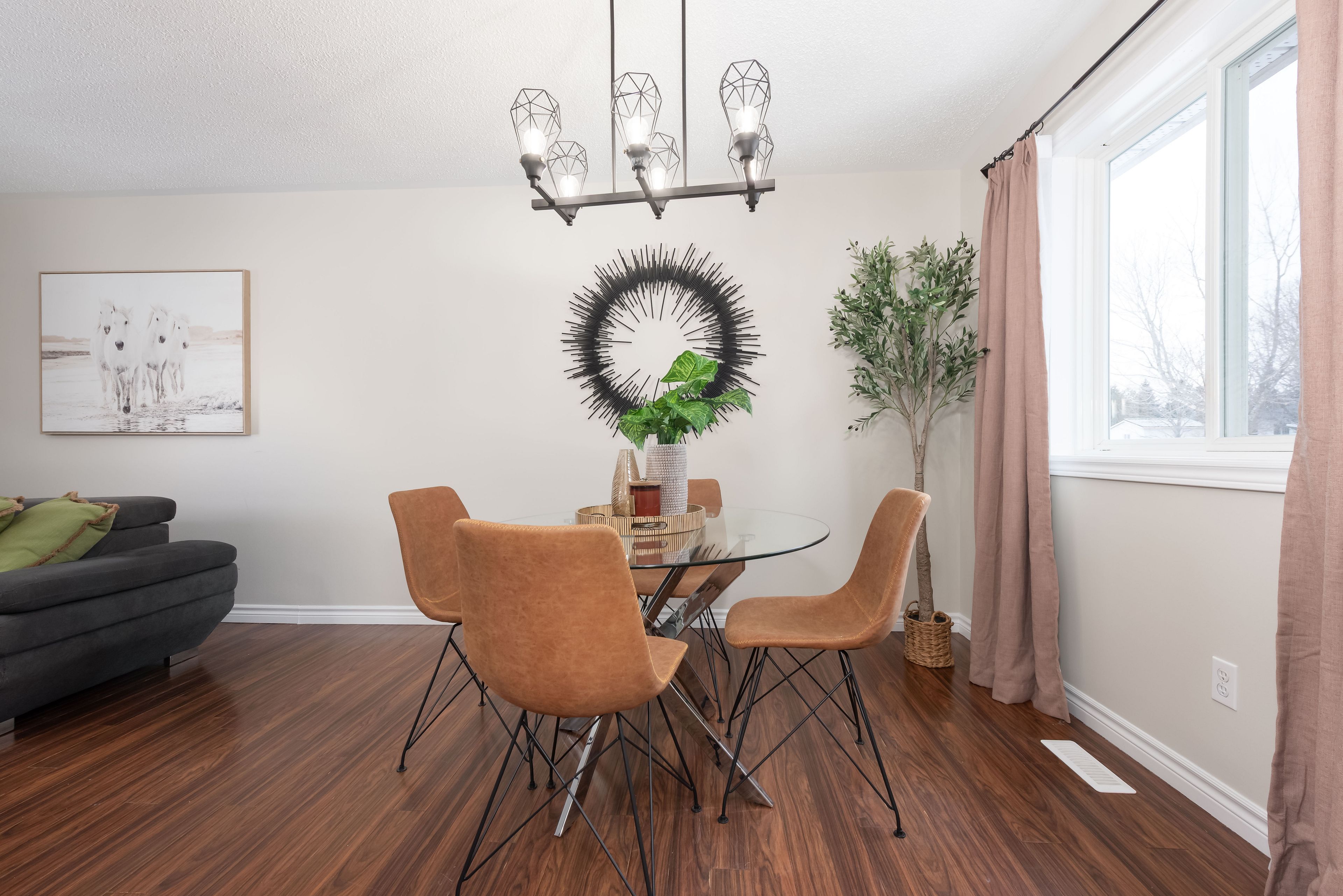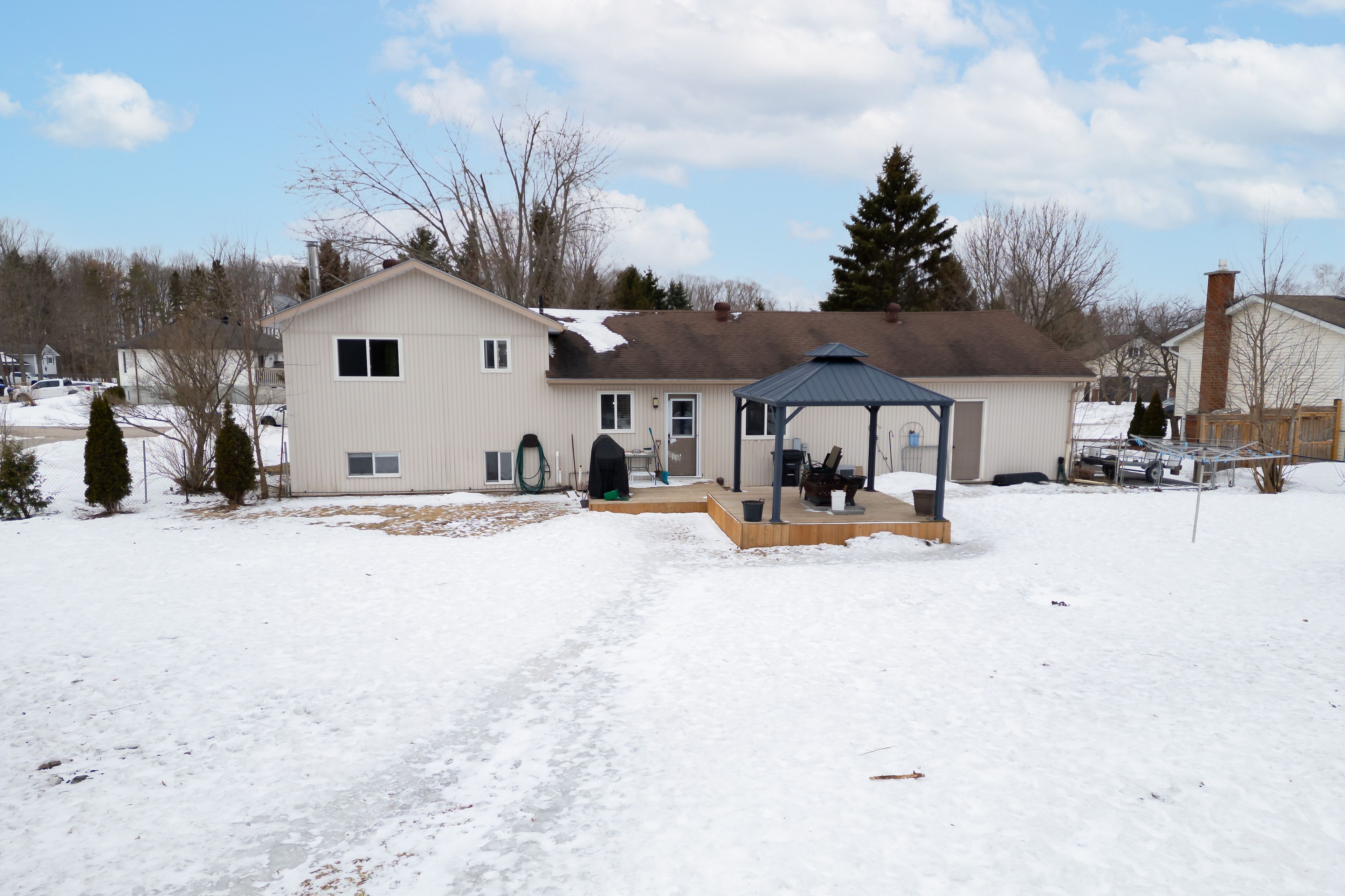 Welcome to 54 foyston park circle, a fantastic opportunity to own in the highly sought-after village of minesing. Built on a large, mature treed lot in a quiet, family-friendly community with no through traffic, this charming 4-level brick sidesplit offers space, functionality, and a peaceful lifestyle just minutes from barrie. Step inside to find beautiful bamboo hardwood flooring throughout the main level, hallway, and stairs, complemented by an updated kitchen featuring ceramic floors. The bright kitchen and dining area overlook the expansive backyard, complete with a deck and an enclosed hot tub-perfect for relaxing or entertaining. The carpet free upper level offers three well-sized bedrooms and an updated family bathroom, while the lower level provides additional living space with a cozy rec room, fourth bedroom, and a convenient 3-piece bath-ideal for guests or extended family. Enjoy the added benefit of inside entry from the double car garage directly to the lower level. Basement has a flex space and laundry room. With approximately 1,561 sq ft of finished living space, this home also features central vacuum, a newer shed, and updates including a furnace and air conditioner replaced in 2016, new entrance doors in 2015, along with a basement bathroom update in 2022. Located on just under half an acre, this property offers the perfect blend of small-town charm and accessibility, with easy access to barrie, wasaga beach, and collingwood. Enjoy nearby hiking, golf, skiing, and endless outdoor recreation right at your doorstep. A wonderful place to call home in a tight-knit community-don't miss your chance to live in minesing.