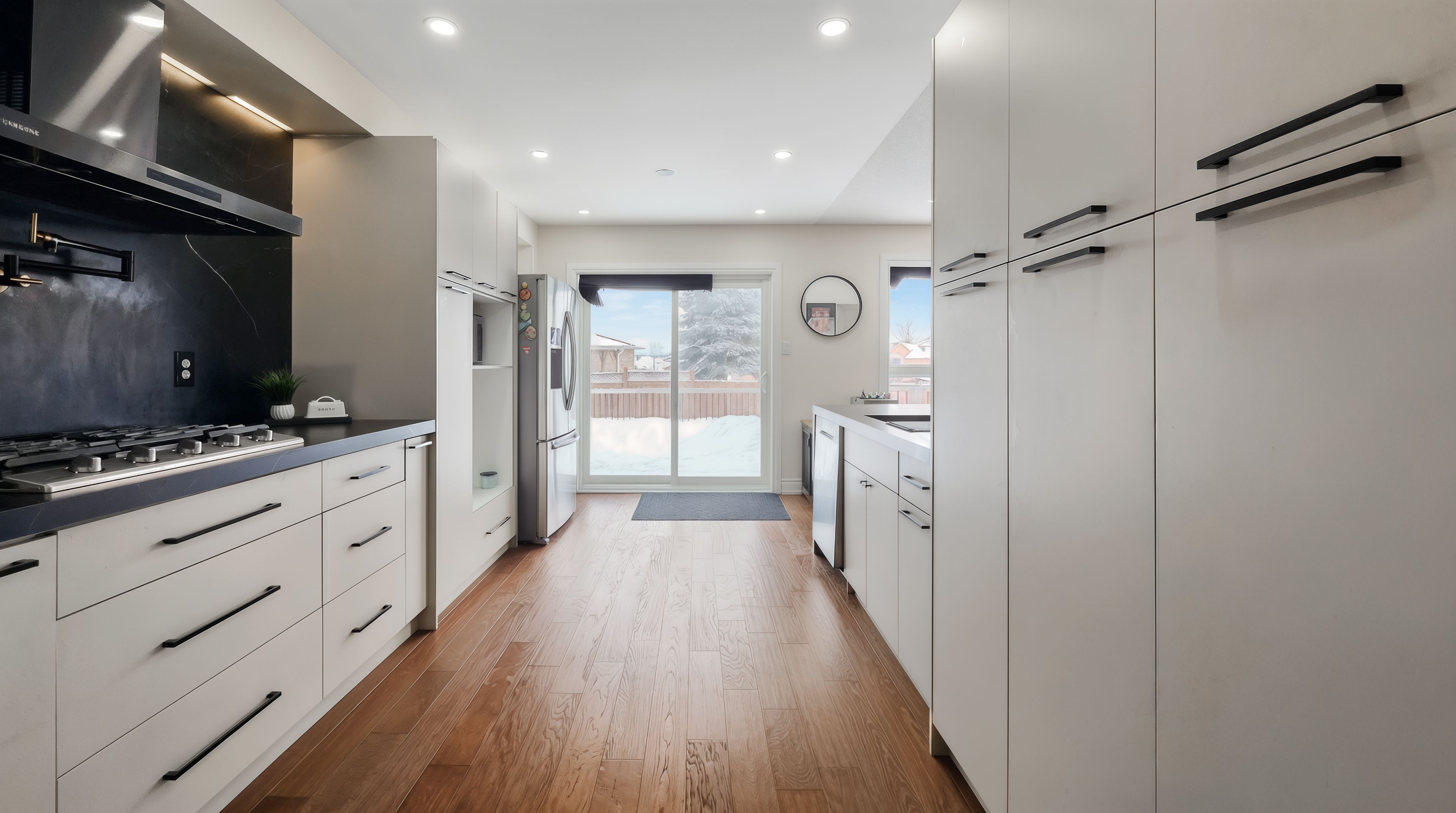 Welcome to 54 gore drive - a rare opportunity to own a beautifully upgraded 3+2 bedroom cornerlot home with an inground pool, situated on a large, private lot in one of barrie's most desirable and family-friendly neighbourhoods. This home offers the perfect blend of space, style, and location, making it ideal for growing families and entertaining. The main level features a bright and functional layout with upgraded hardwood flooring, newly installed pot lights throughout the main floor, and an updated staircase that adds a modern touch. The fully renovated kitchen is a showstopper, complete with porcelain countertops, modern cabinetry, pot filler, range hood, gas flame stove, and newer appliances installed. The open-concept design flows effortlessly into the living and dining areas, perfect for everyday living and hosting. Upstairs, the home offers a large primary bedroom flooded with natural light, featuring a recently renovated 4-piece ensuite and a walk-in closet, creating a private retreat. The two additional bedrooms are generous in size, offer abundant natural light, and provide flexible use for family, guests, or a home office. The finished basement adds two additional bedrooms, vinyl flooring, and a renovated laundry room, making it ideal for extended family or multi-generational living. Step outside to a gorgeous backyard with inground pool, perfect for summer entertaining and relaxation. Recent upgrades include most windows replaced in 2021, roof replaced in 2021, new ac, full house paint, and more. Solar panels generate approximately $400/year in income, with contract to be transferred to the buyer. Located in a quiet and peaceful community, within walking distance to ferndale woods, scenic trails, and top-ranking schools, and just minutes to all amenities, hwy 400, downtown barrie, and lake simcoe. A true turn-key home that delivers on space, lot size, upgrades, and lifestyle- don't miss this exceptional opportunity