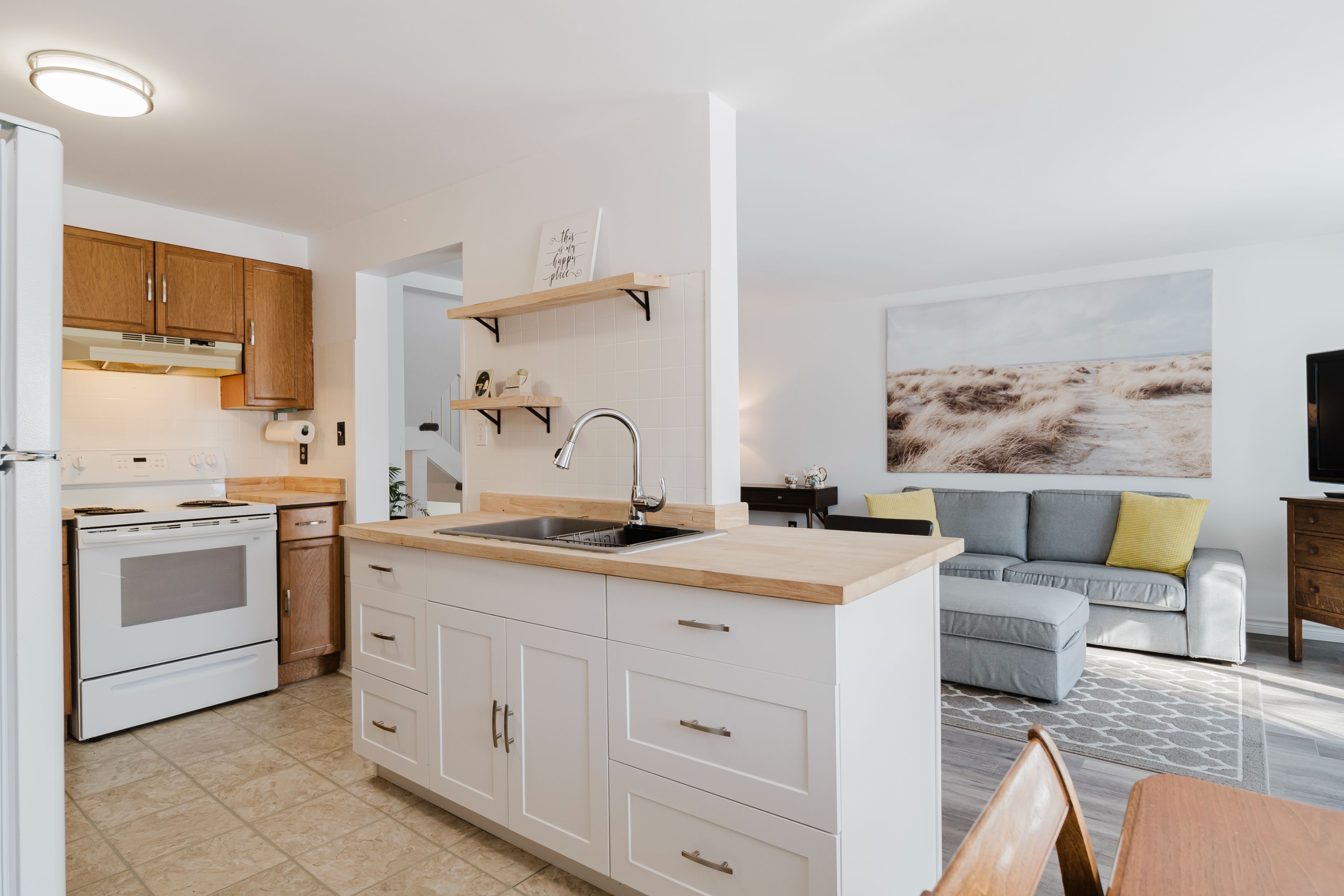 • Bright living area with updated kitchen and access to a private deck.