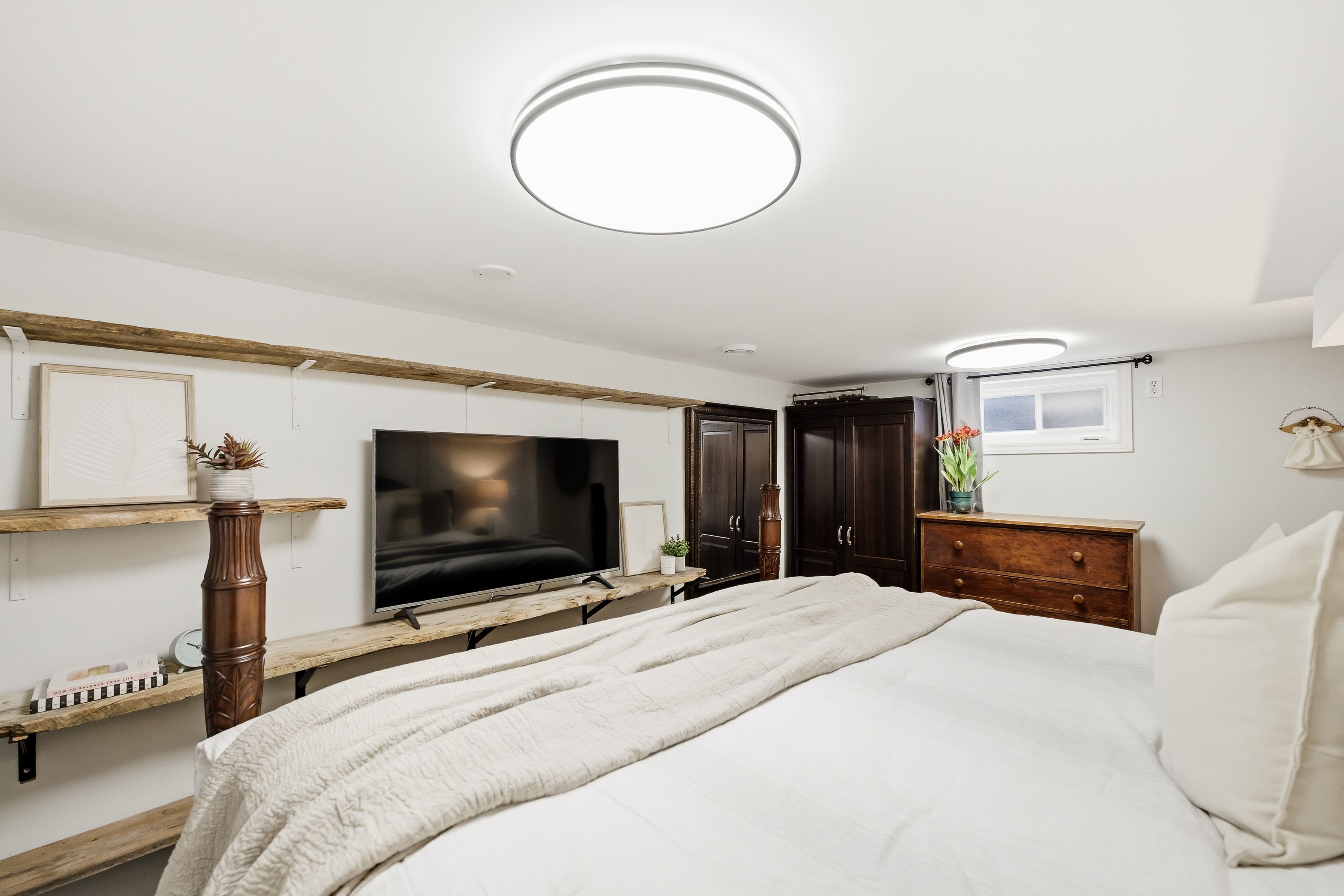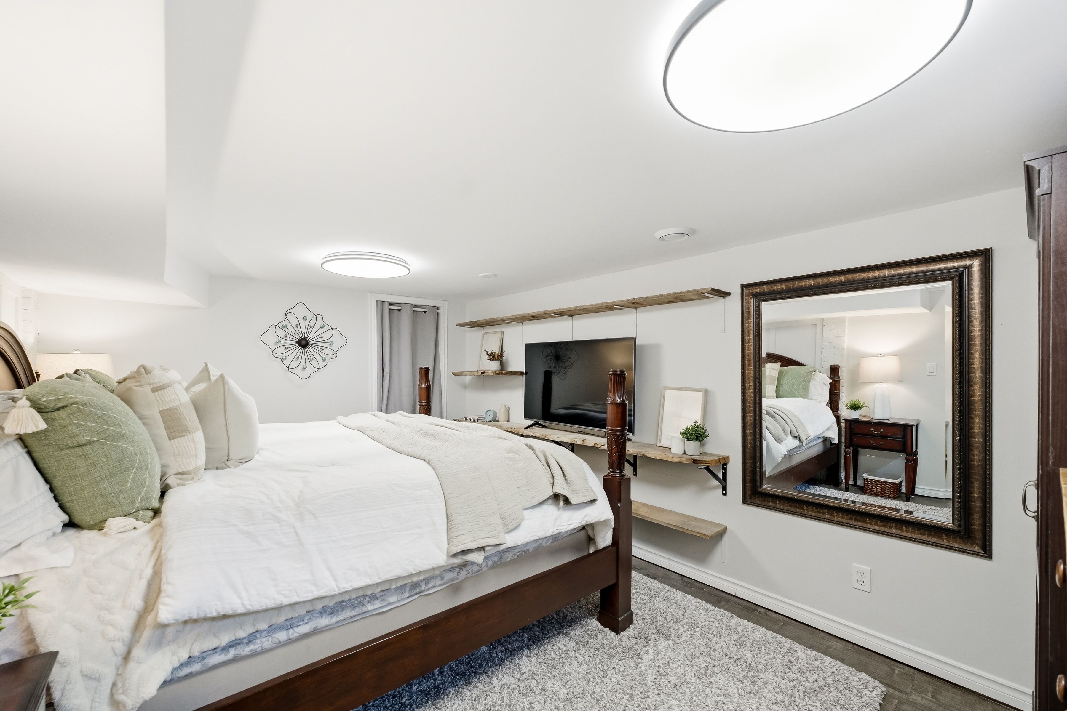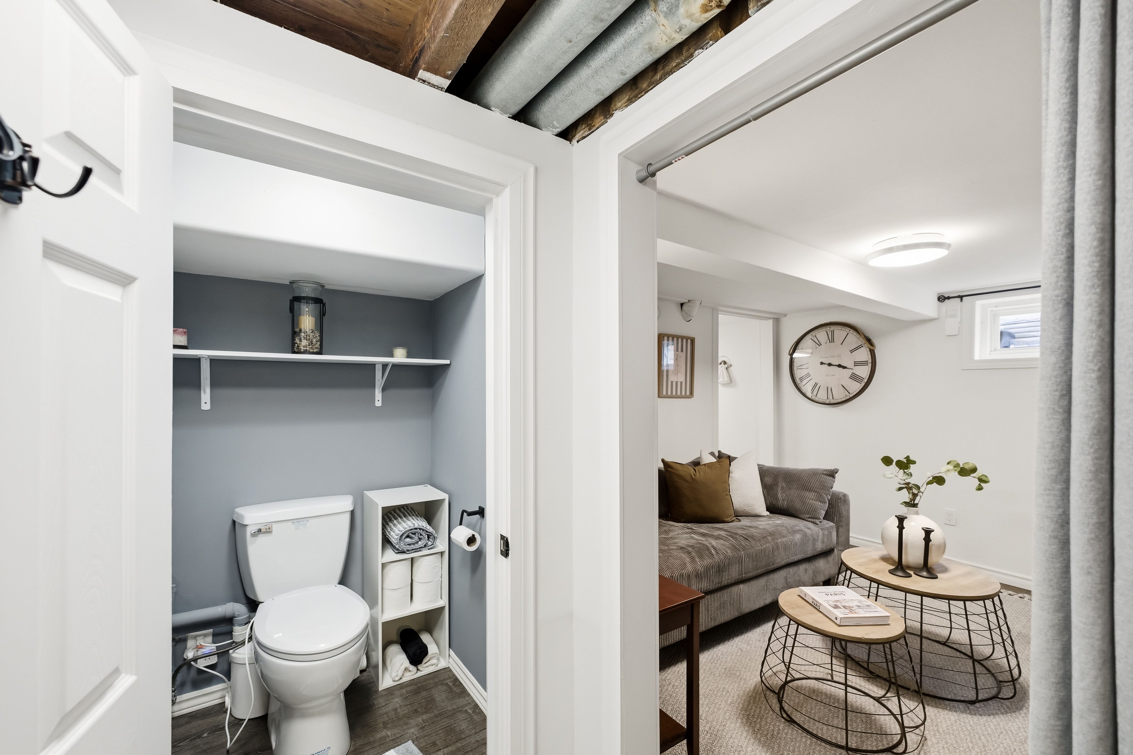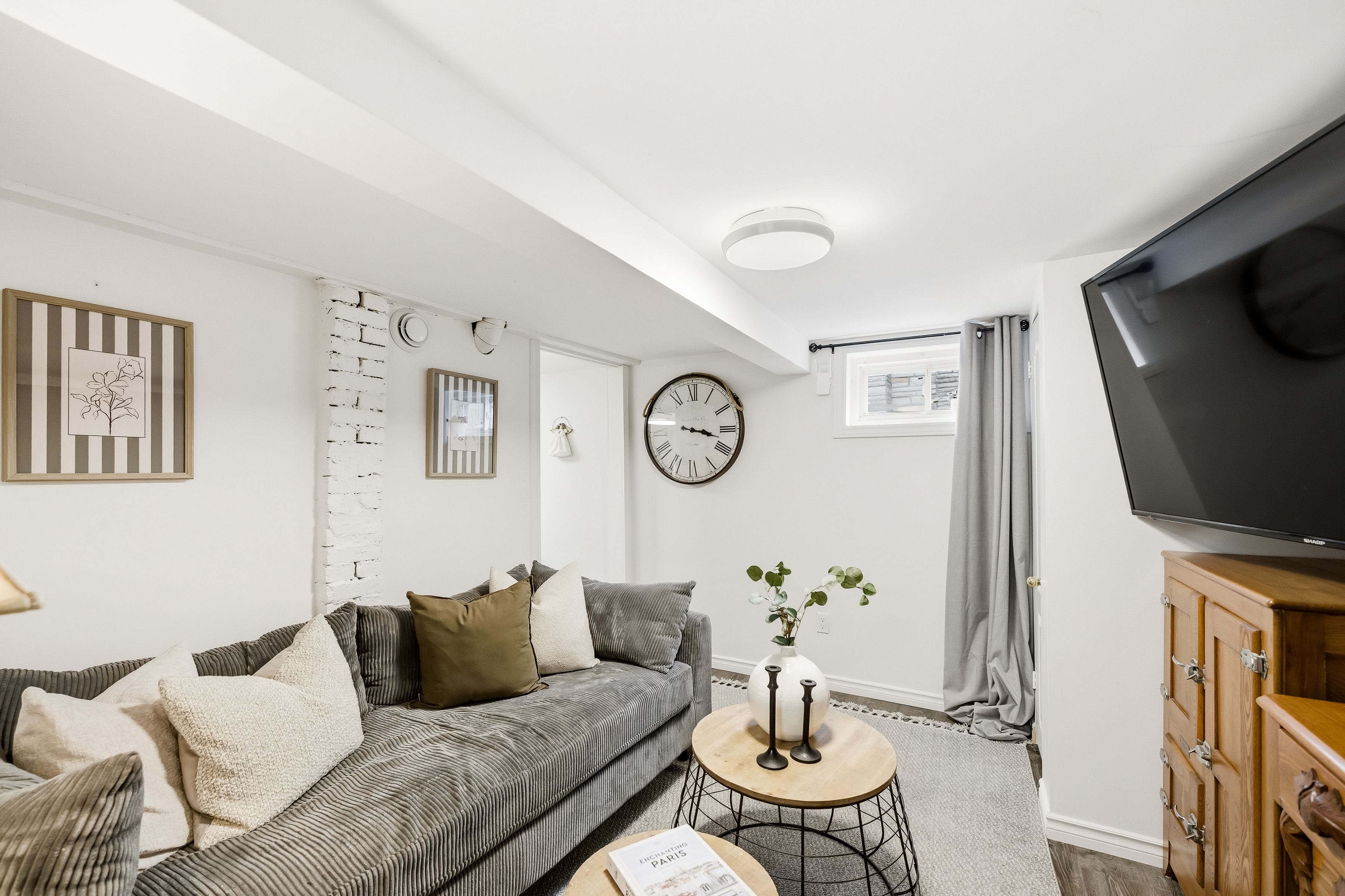 • Finished basement includes a rec room and additional bedroom for guests.