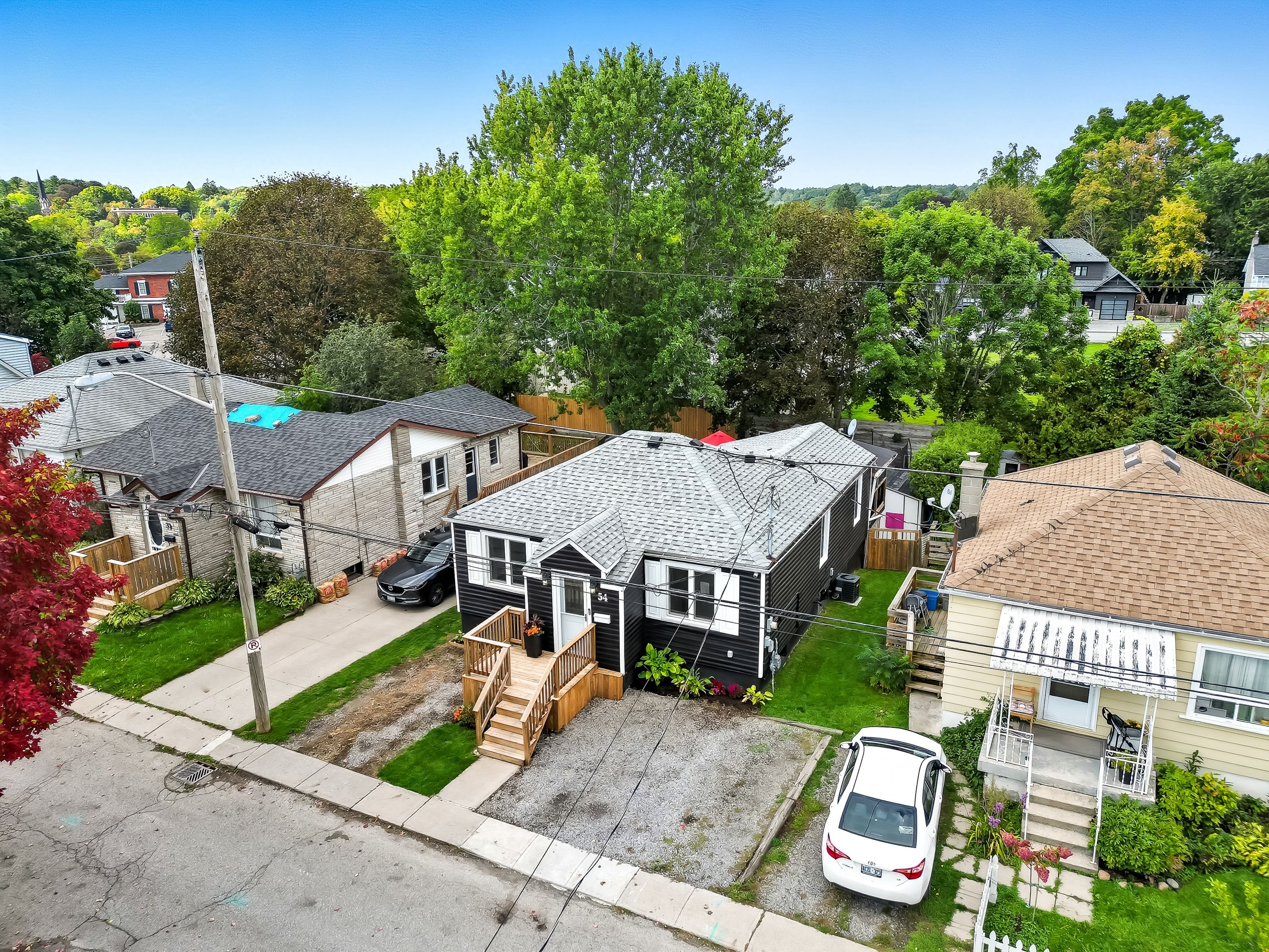 Coming home will be your favourite thing to do at 54 harcourt street in port hope. This 2+1 bedroom and 2 bathroom home has been well taken care of and thoughtfully updated throughout the years. Before you even walk through the front door, the newer siding and adorable front porch elevate the curb appeal. Parking for 2 and an ev vehicle charger round out this stunning exterior. Functional meets fabulous is obvious as soon as you step inside. Front entry has great options for storing boots, coats, dog leashes you name it. It leads immediately into the open concept living and dining space. Laminate floors, pot lights, and tasteful feature walls give magazine worthy vibes. Back of the home is all kitchen, which makes for a great space to cook meals, make cozy coffees, and get all the goods ready for summer time barbecues. You can walk right from the kitchen to the back deck, so you don't miss a second of that summer sun. Rounding out the main level is the 2 bedrooms serviced by an updated 4 piece bathroom. The primary bedroom has wall to wall custom closets with ample storage. The secondary bedroom has double closets and a window that looks out over the backyard, great for kiddos of all ages. Heading downstairs into the basement where you will find ample storage, a finished rec room, the 3rd bedroom, and a powder room. This space is ideal for guests, kids play rooms, in-laws, you name it. Gorgeous backyard blends nature and living space seamlessly. Large deck and custom pergola maximize usability throughout the warmer months. Hang on the deck and watch the kids or the dogs play in the sizeable fenced in yard! Welcome home to 54 harcourt street.