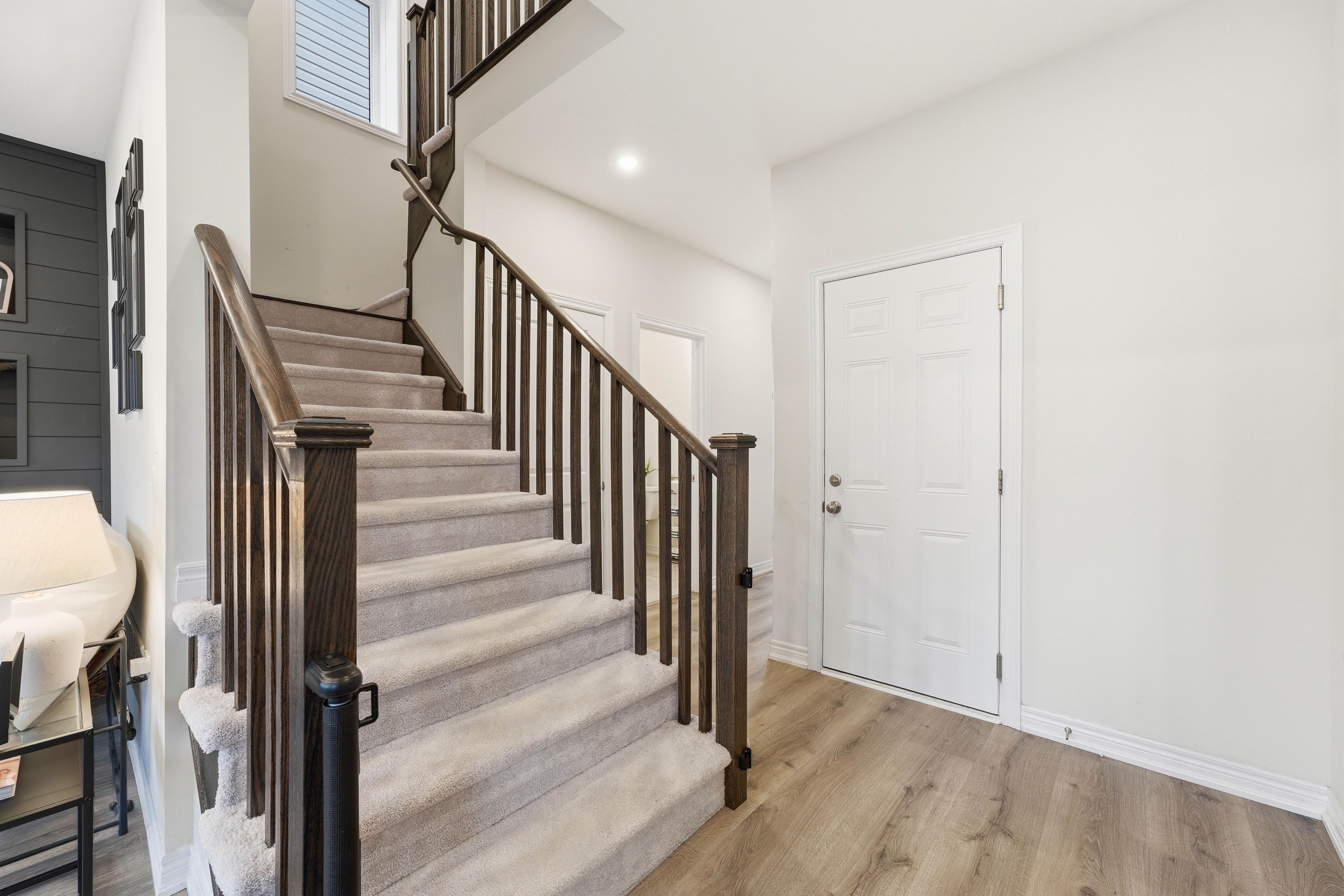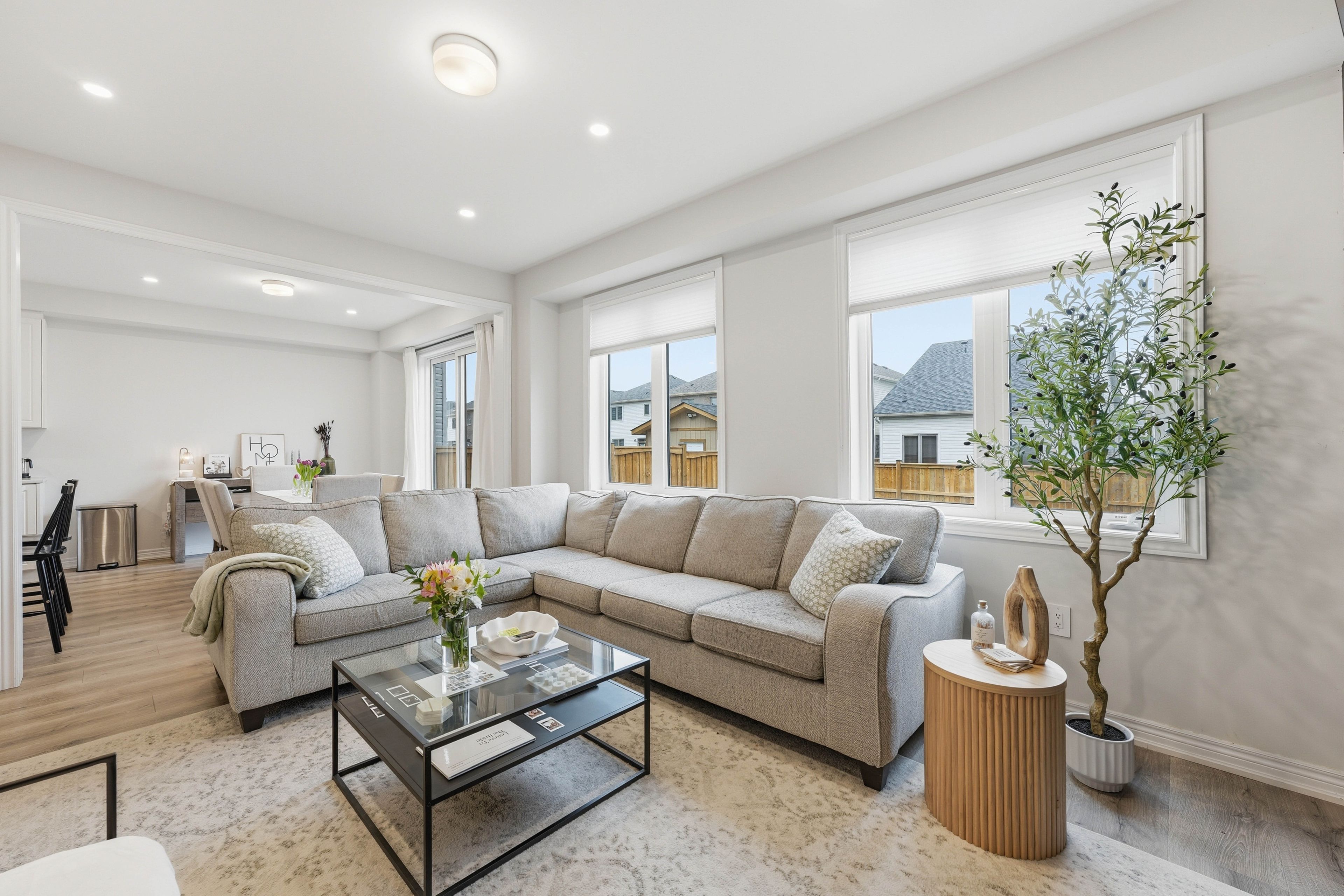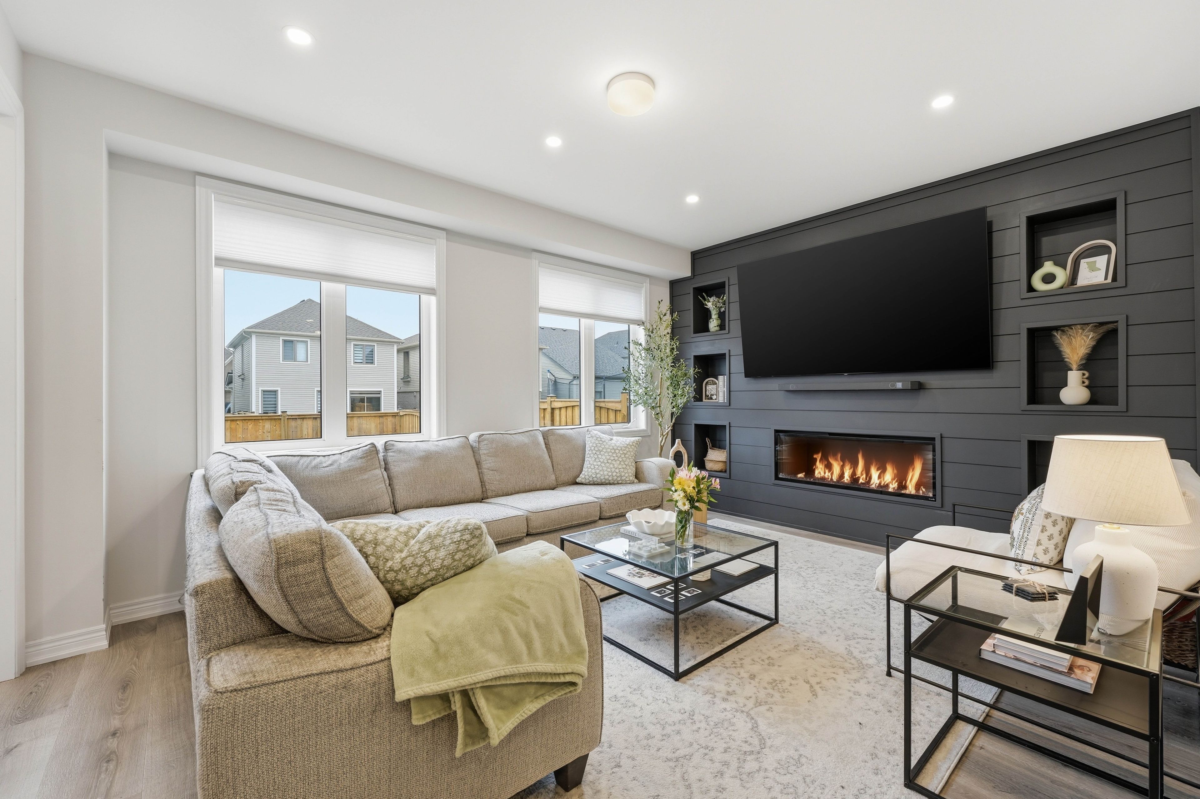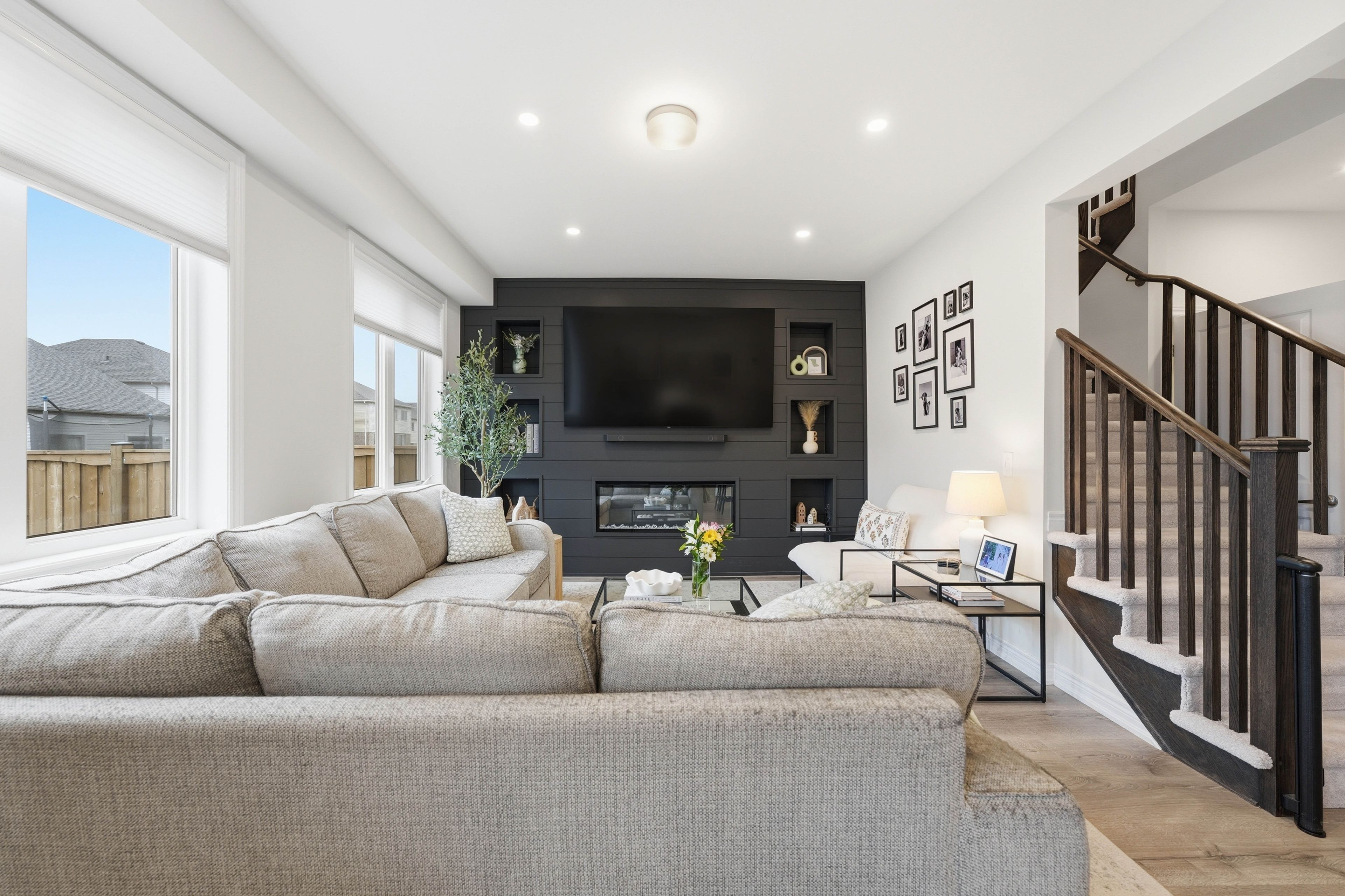 Welcome to 54 harpin way w in fergus! Nestled in a sought-after, family-friendly neighbourhood, this beautifully maintained 3-bedroom, 2. 5-bathroom home offers the perfect blend of comfort and modern living. Bright and airy throughout, the home is filled with natural light and features a stunning media wall that creates a warm and inviting living space. The spacious primary bedroom boasts a gorgeous ensuite, providing a private retreat to unwind. Enjoy the convenience of upstairs laundry and a thoughtfully designed layout ideal for growing families. The fully fenced backyard is perfect for kids, pets, and entertaining, while the basement offers a rough-in for a future bathroom, giving you the opportunity to customize and expand your living space. Located in the thriving community of fergus, just minutes from the charming shops, restaurants, and scenic beauty of elora, this is an incredible opportunity to call one of the area's fastest-growing communities home.