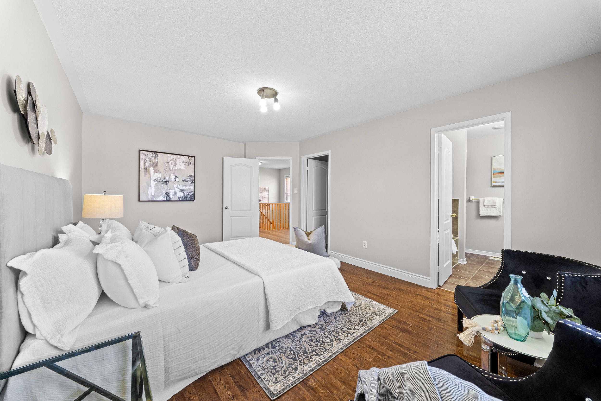 • Generous primary bedroom with ensuite and walk-in closet for added comfort.