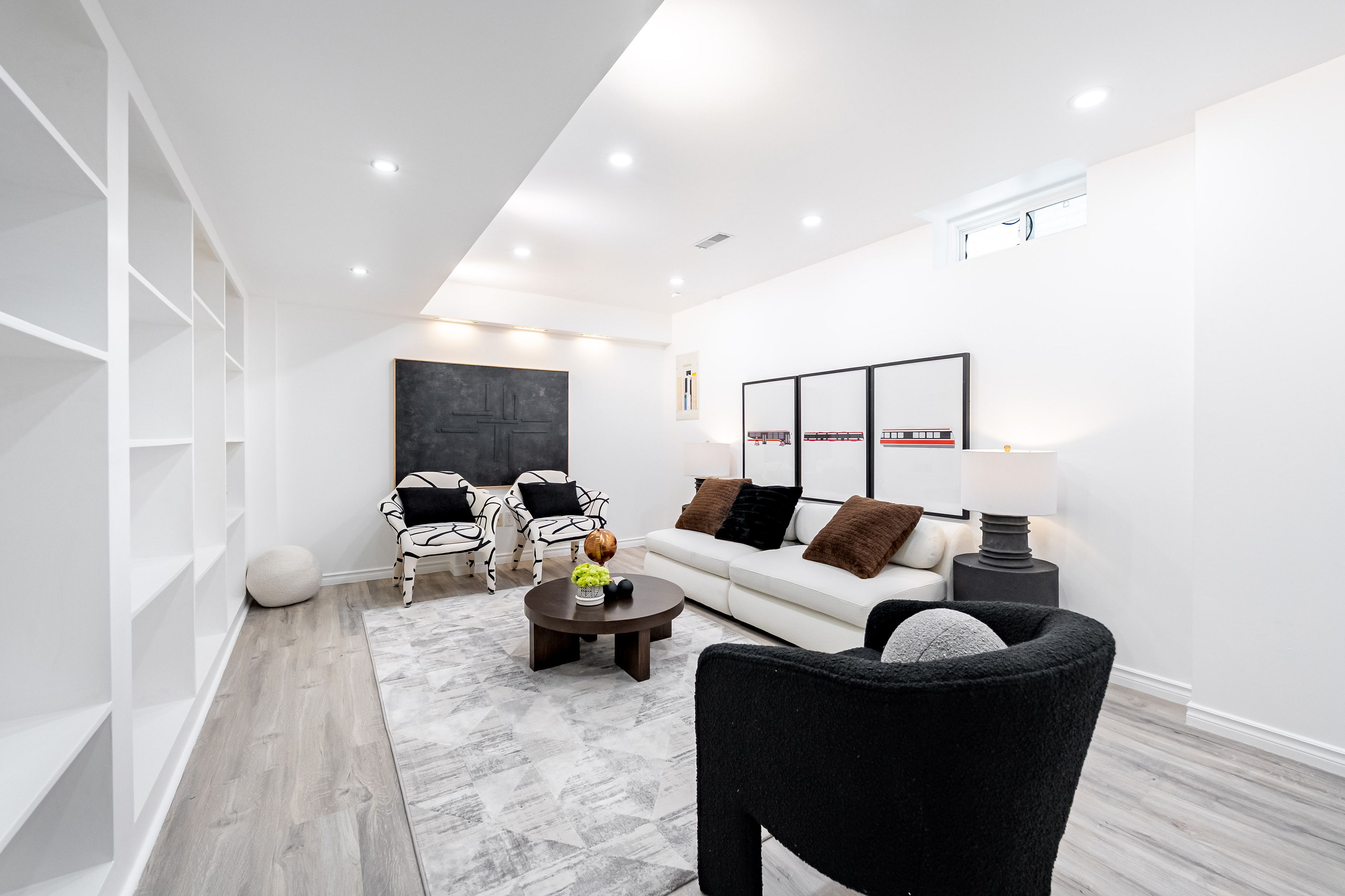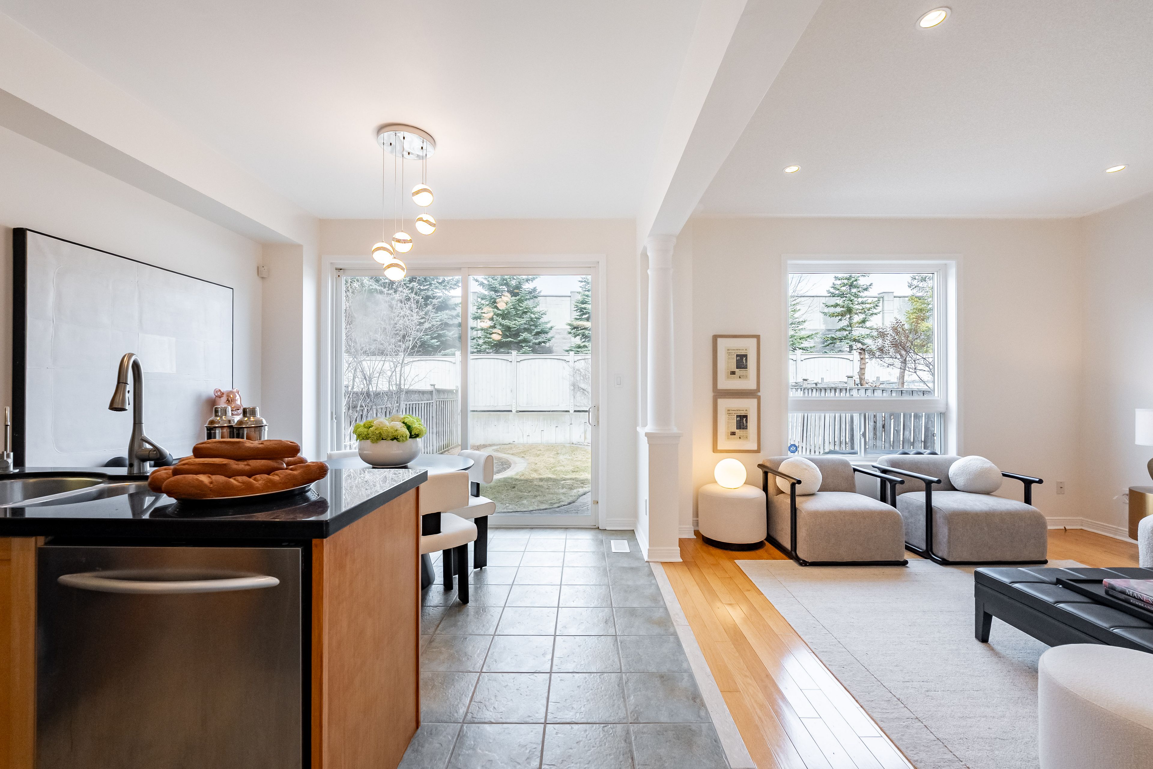 • Bright open-concept layout with 9' ceilings allowing natural light.
