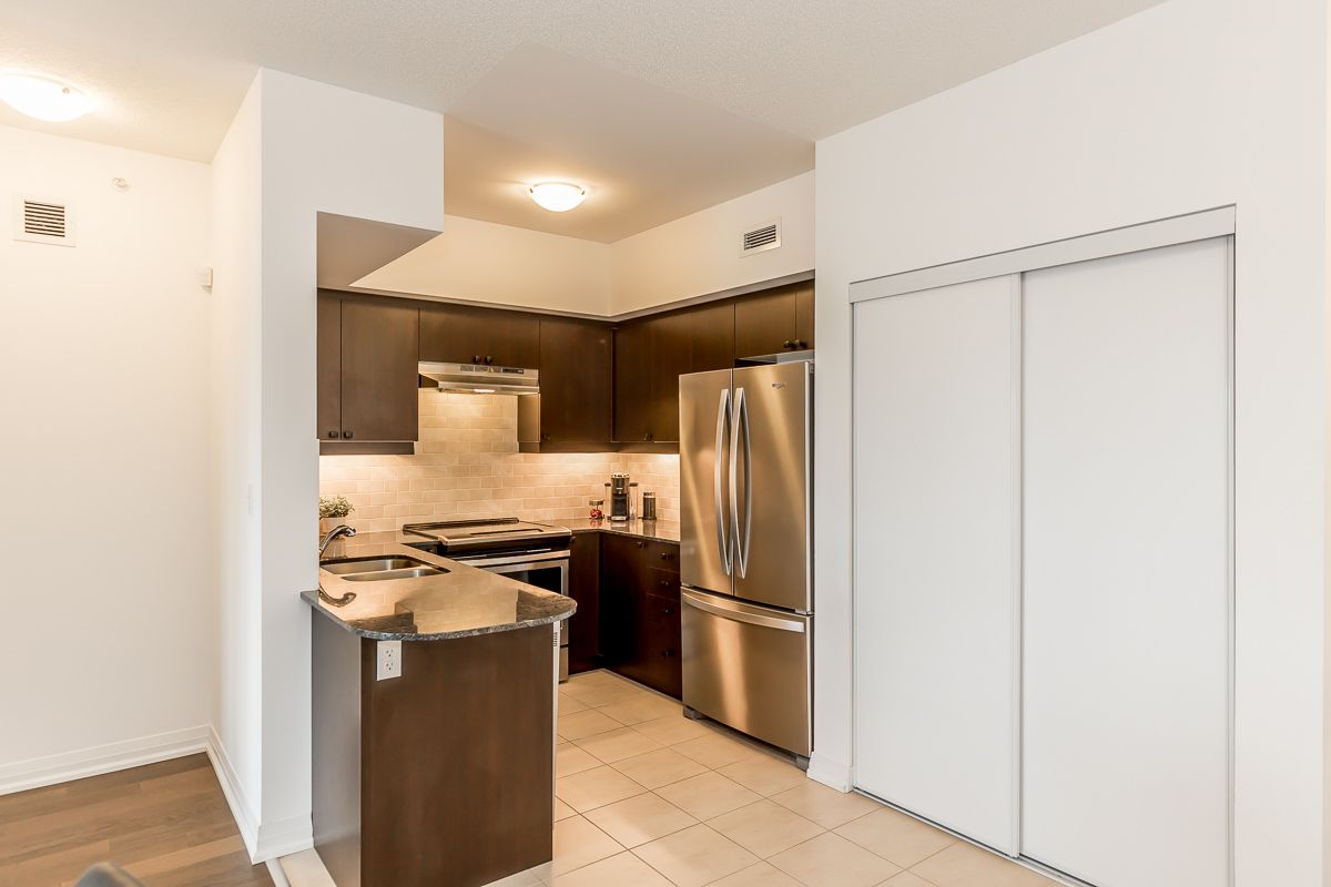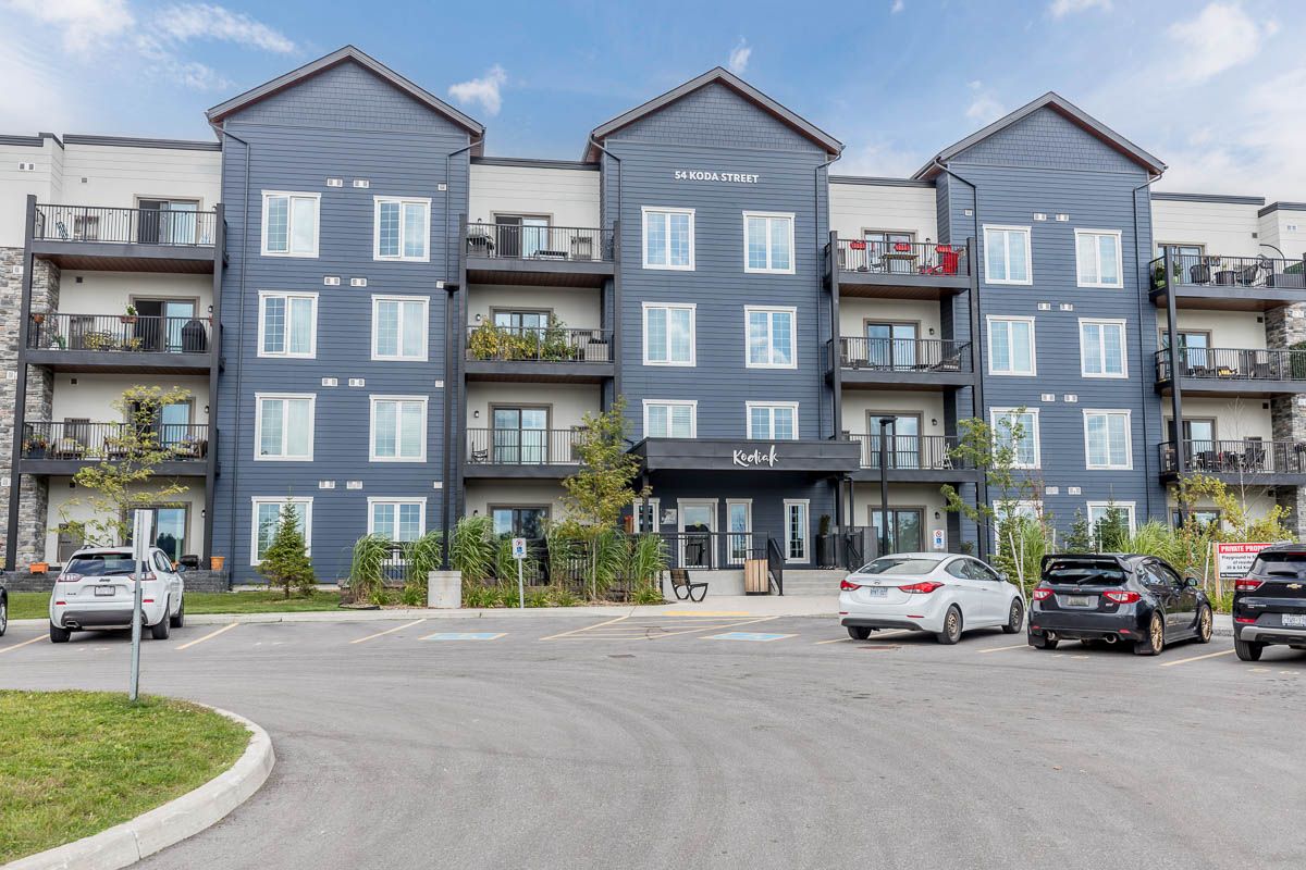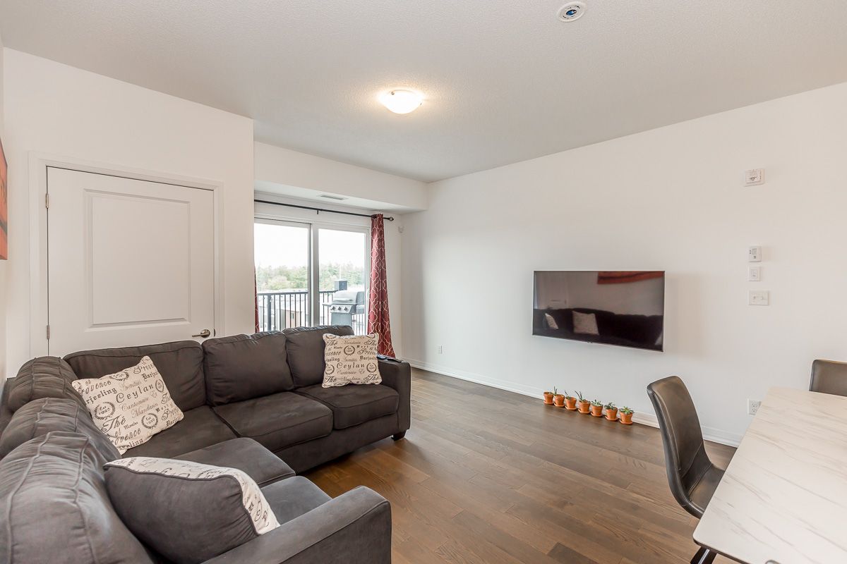 Bright and sunny, open concept two bedroom, two bathroom condo with two parking spaces and a storage locker! Close to all amenities and only 10 minutes to the 404! Enjoy, entertaining in the spacious layout, gourmet kitchen with stone countertops, stainless steel appliances, and elegant backsplash. Beautiful living and dining room with hardwood floors walk out to lovely balcony great for entertaining or putting your feet up to read a book. Primary bedroom boasts a large walk-through closet leading to a three-piece washroom. Large second bedroom has an additional four piece bathroom across the hall. Ensuite laundry is included.