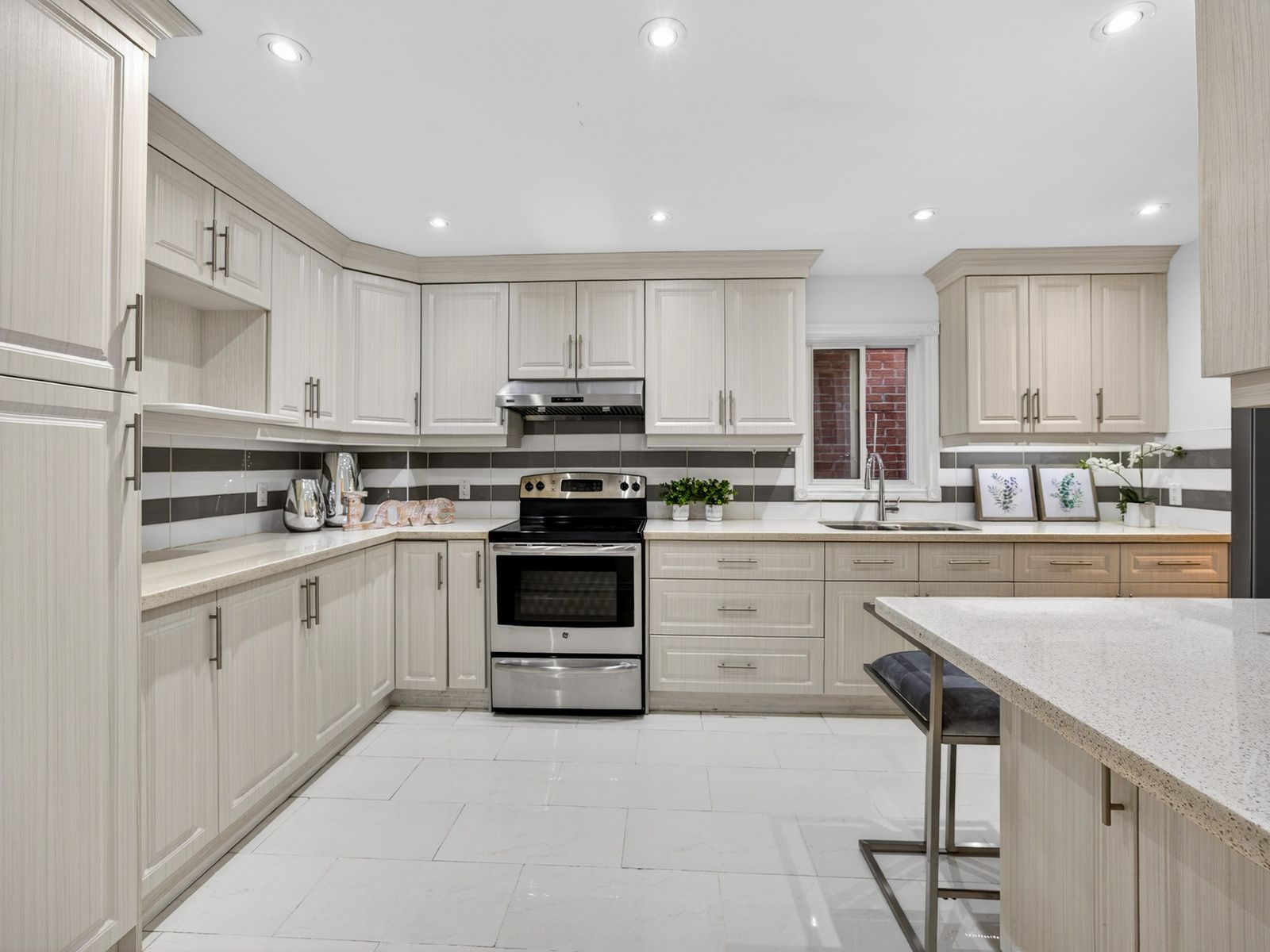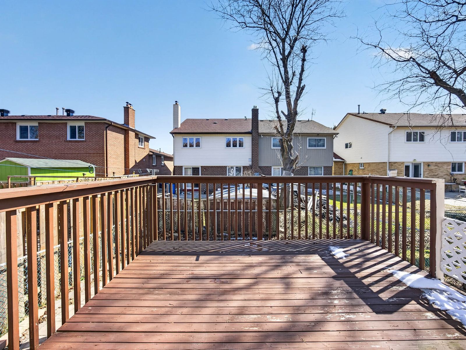 Welcome to this beautifully maintained all-brick 3+2 bedroom home, ideally situated on a quiet cul-de-sac in a highly sought-after neighbourhood. This home features a bright open-concept living and dining area with a seamless walk-out to a spacious deck. The updated kitchen is equipped with granite countertops, stainless steel appliances, a stylish backsplash, and a double sink. Recent upgrades include fresh paint throughout, renovated bathrooms, and a newer roof (2023), offering peace of mind and move-in readiness. The second floor offers three generously sized bedrooms, each with large windows providing abundant natural light. A separate entrance leads to a fully finished basement complete with two bedrooms, a 3-piece bathroom, and a kitchen-an excellent opportunity for extended family living or potential rental income. Conveniently located within walking distance to ttc, schools, library, parks, woodside square, lcbo, and dollarama, with quick access to hwy 401 and scarborough town centre.