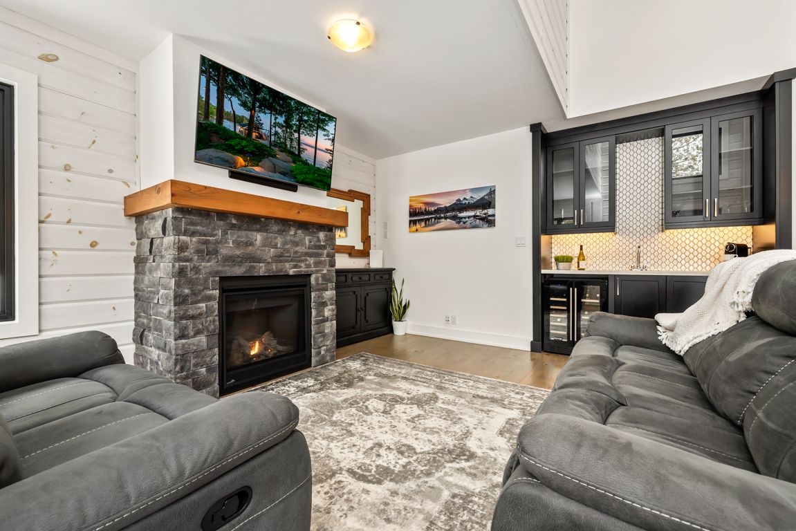 Turtle lake executive lake house for the discriminating buyer! 300 ft of prime easy access shoreline, nestled on 3. 1 acres of privacy, custom landscaping, first time offered custom-built 'timber block' bungalow (2025) features elegant one-floor living, wide plank hardwood flooring, stunning wall of lakeside windows/walkouts, open-concept great room enhanced with vaulted ceiling, cozy gas fireplace and wet bar with wine fridge, designer kitchen showcases large island for kitchen prep & eating, quartz counters, quality stainless appliances, abundance of cabinetry and walk-in pantry, spacious primary suite features walk-in closet, luxurious 4 pc ensuite bath, unwind in the soaker tub overlooking nature, main floor laundry/mudroom with convenient access to double garage, full basement offers partially finished rec room, guest room/den, rough-in bath, workshop, and ample storage, patented 'timber block' design boasts r36 insulation, generac system for worry free all weather enjoyment, high speed internet & paved road, mins to the renowned village of rosseau, 'crossroads' restaurant, boat launch to muskoka lakes and easy access to hwy 400/gta, this lake house is in immaculate, move-in ready condition, an ideal cottage retreat, home or retire here on desirable turtle lake, enjoy sunrise to sunset! 2 docks for swimming/boating enjoyment, your 4 season cottage life awaits!