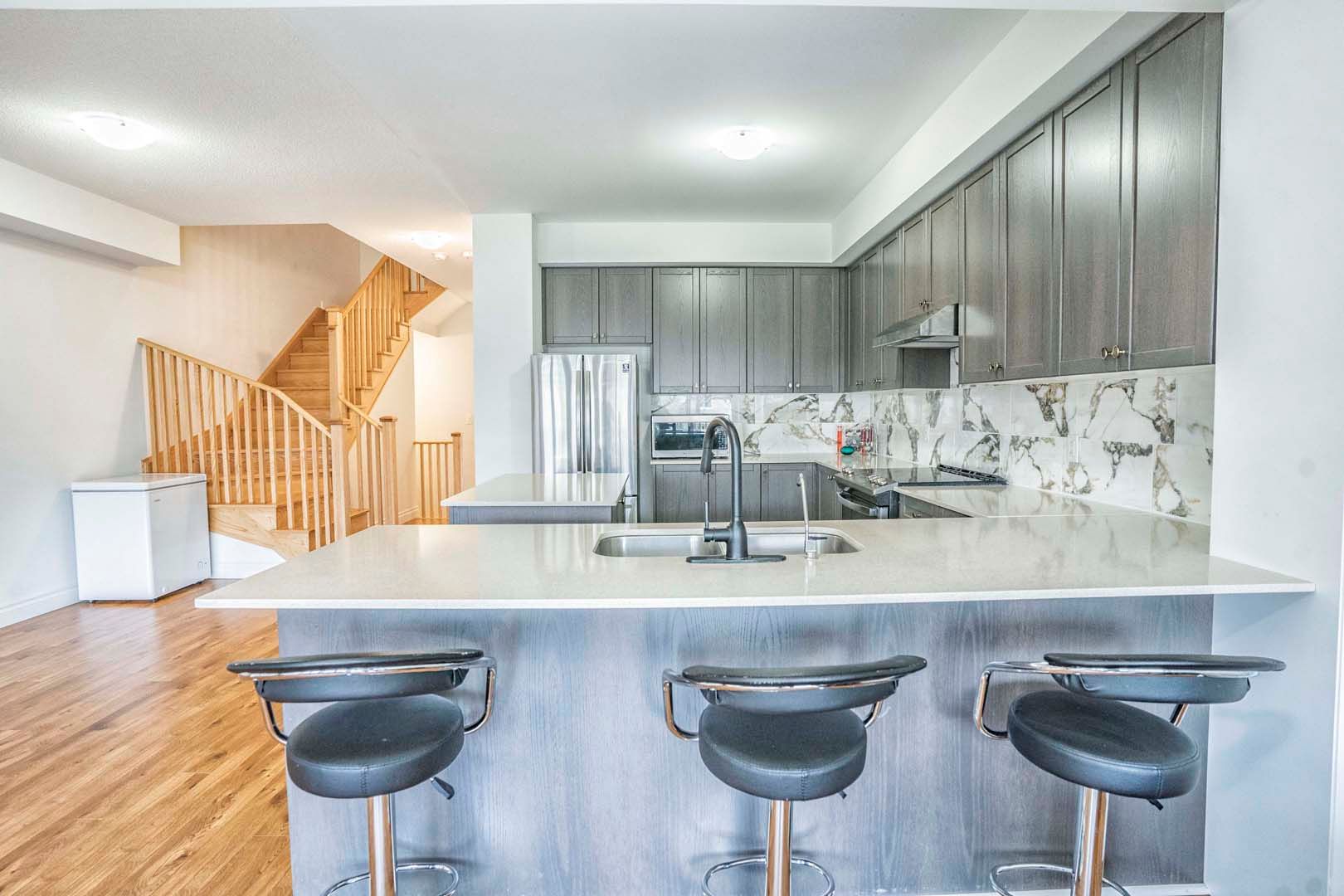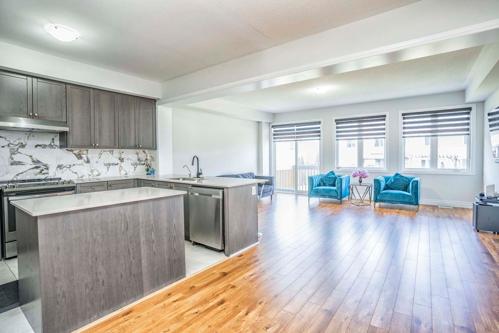 Fabulous 3-bedroom, 3-bath modern freehold townhome, just 4 years new, featuring the sought-after osler a model by cachet homes. Offering approximately 1,809 sq. Ft. Of open-concept living space with a bright eat-in kitchen complete with centre island, quartz countertops, and stylish backsplash. Walk out to a deep backyard-perfect for outdoor enjoyment. Features include a long 2-car driveway with no sidewalk, foyer access to the garage, spacious primary bedroom with walk-in closet, convenient second-floor laundry, and generously sized bedrooms, including one with a walk-out balcony. Ideally located close to highways 400 & 404, transit, schools, shopping, and all major community amenities.