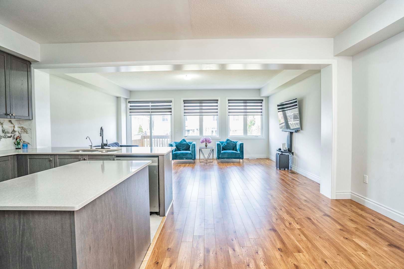 • Open-concept living space with a bright eat-in kitchen and center island.