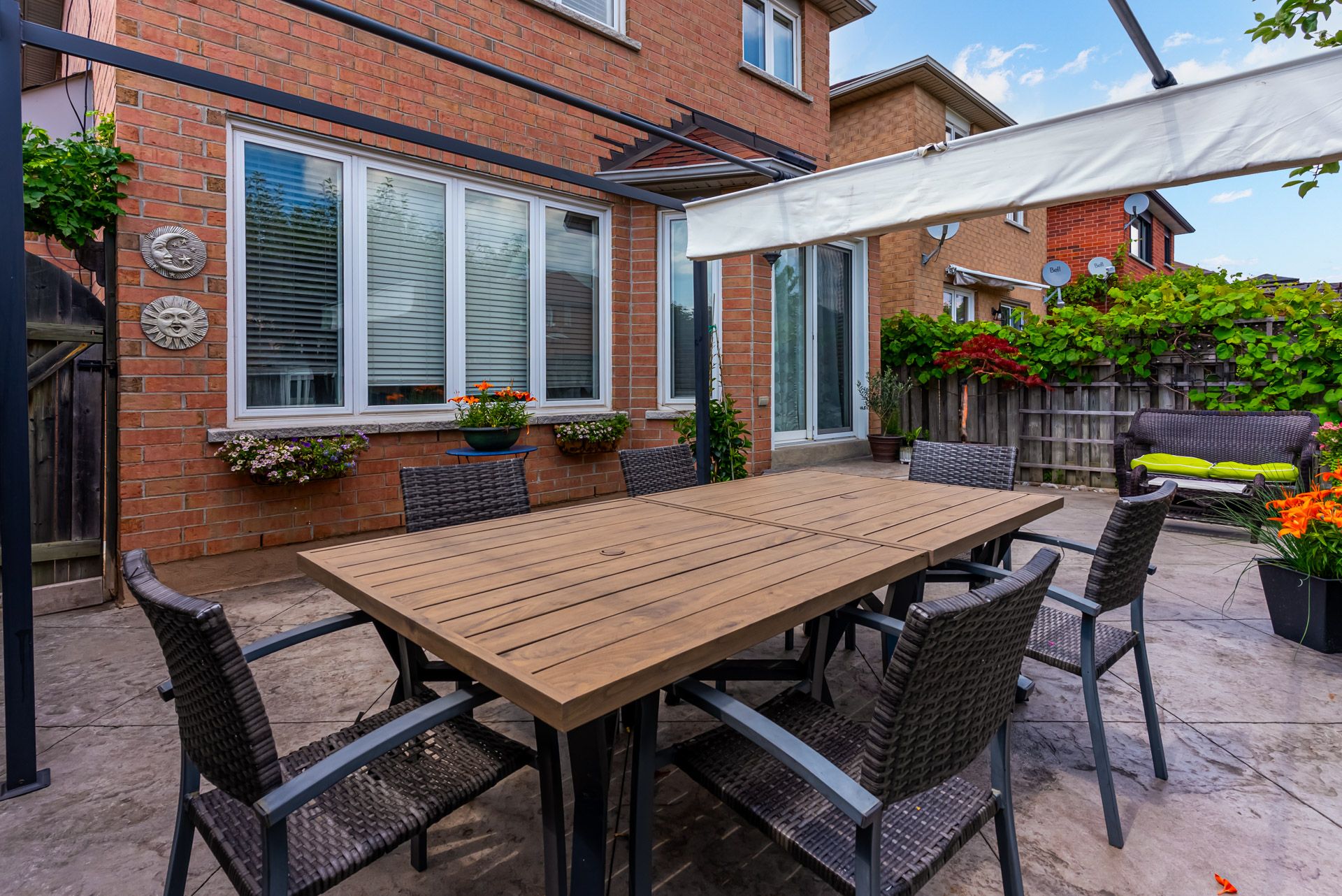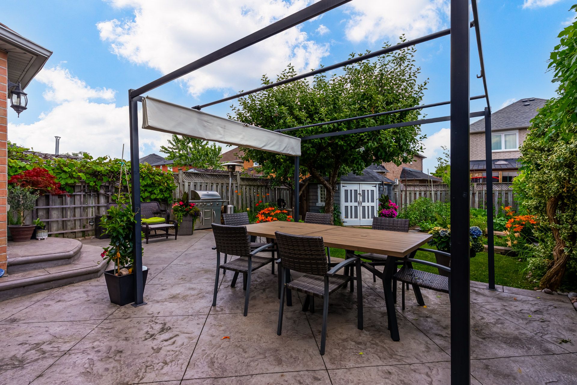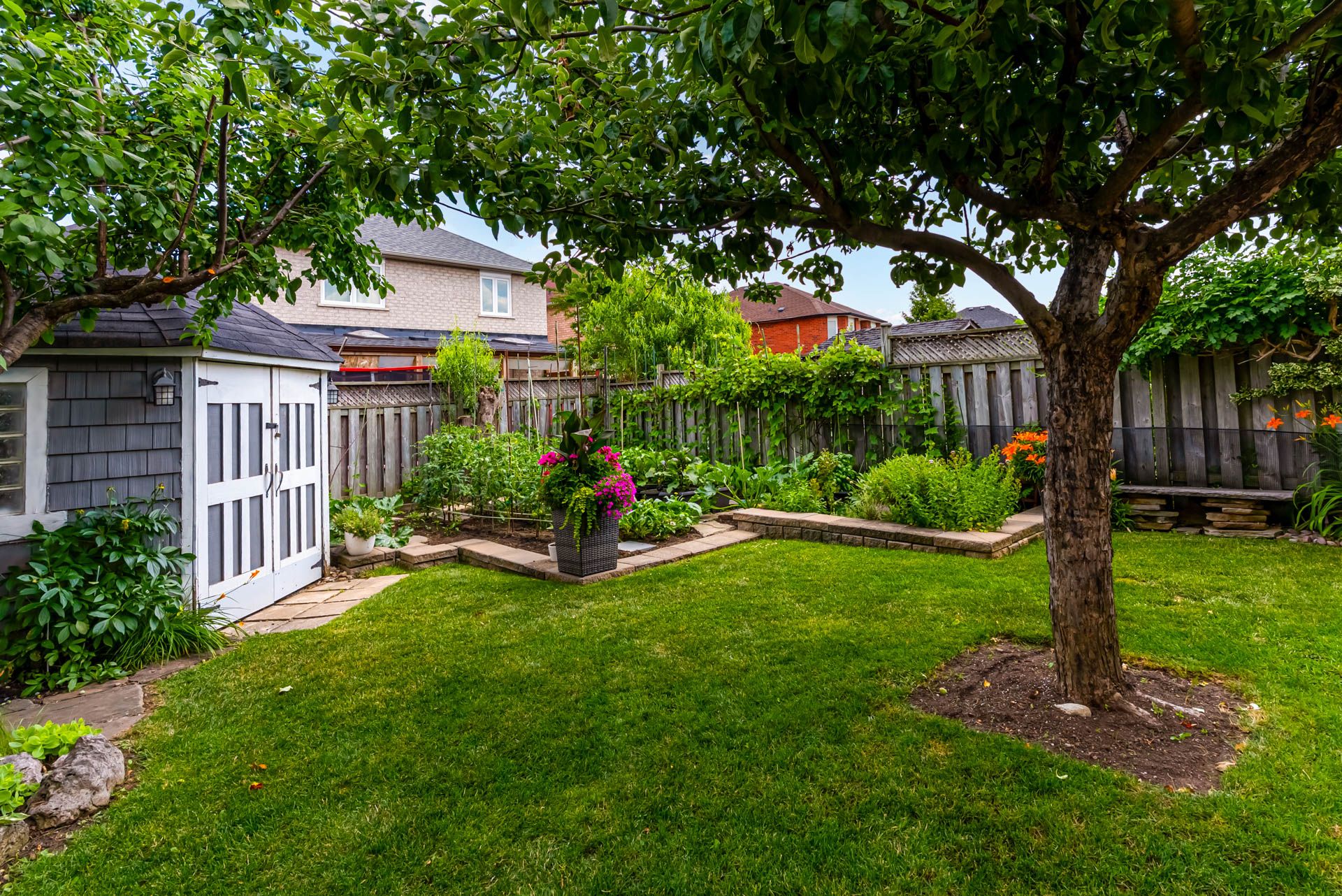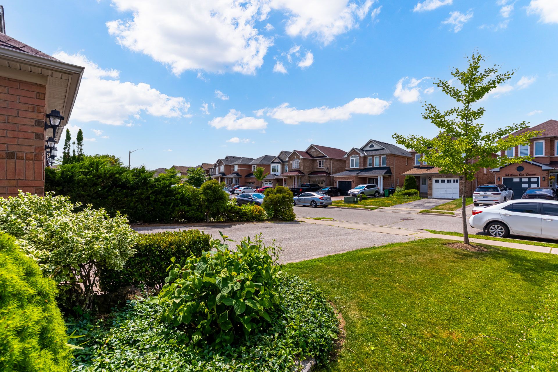 Absolutely stunning detached home featuring 3 bedrooms and 3 washrooms, including a finished basement. Step inside to elegant french doors, a welcoming front porch, and exceptional curb appeal enhanced by patterned concrete and meticulous landscaping. The backyard offers a generous 14' x 29' patio surrounded by a landscaped garden with a vegetable patch, apple and plum trees, vines, and a spice garden. An insulated tool shed is equipped with electrical outlets, indoor/outdoor lighting, hot and cold water access, and a natural gas hookup for bbq. Additional highlights include an insulated garage, new windows throughout, lifetime-warranty sliding doors, new front doors (2012), a roof (2020), a cold cellar, pot lights, porcelain tile in the entryway, new closet doors, a new staircase with iron railing, 4" oak hardwood floors on the main level, smooth ceilings, crown moulding, and a natural stone cladding feature wall with an electric fireplace, natural gas hookup, and centralized outlets. Includes upgraded main-floor powder room. The second floor, renovated in (2022) includes (6" engineered hardwood ) includes new bathrooms with porcelain tiles, quartz countertops, updated plumbing, a glass standing shower, and a free-standing soaker tub. The basement is finished with smooth ceilings, sound system wiring, a wet bar. And upgraded baseboards on the main and window coverings, granite kitchen countertops, and porcelain kitchen flooring, enhancing the home's elegance. Appliances include an lg fridge (2021), lg stove (2022), whirlpool dishwasher (2021), washer & dryer (2021), an additional stove in the basement with a 220v outlet, a fridge in the garage, and ac (2022). Garage also includes a new remote opener. Fenced backyard. Located within walking distance to trinity common plaza, public transit school recreational centers, places of worship, and with easy access to hwy 410.