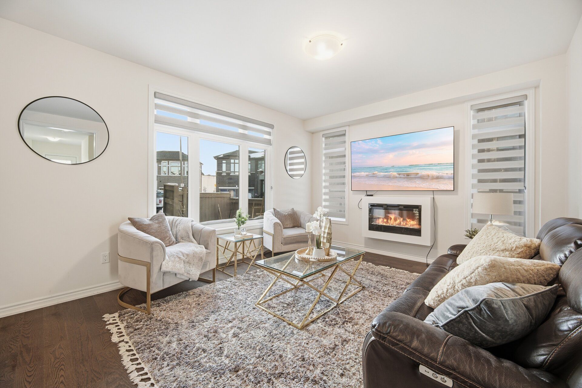Prime location and opportunity! Welcome to this stunning east-facing detached residence with modern elevation, ideally situated at **54 moorcroft pl** in the highly sought-after **city pointe common** community of brampton. This sun-filled home is bathed in natural light and offers approximately **4,200 sq. Ft. Of total living space**, featuring **4+3 bedrooms and 5bathrooms**. The main level boasts a functional **den/home office**, elegant **separate living and dining areas**, and a warm, inviting **family room with fireplace**-perfect for everyday living and entertaining. The **finished legal 3-bedroom basement** includes **separate laundry** and is currently **rented for $2,500/month**, offering excellent income potential. The recently upgraded **chef's kitchen** showcases **quartz countertops and backsplash**,premium **high-end stainless steel appliances**, and a **36" gas stove** backed by a **5-yearwarranty**. This home also features a **2-car garage with a wide driveway** for added convenience. Retreat to the **spacious primary suite**, complete with a sitting area, an oversized **walk-in closet**, and a luxurious **5-piece ensuite**. Enjoy **upgraded hardwood flooring and porcelain tiles throughout**, generously sized bedrooms with **walk-in closets**, and a **convenient second-floor laundry** with a **walk-in linen closet**. This exceptional family home is **move-in ready** and presents a rare opportunity to own in one of brampton's most desirable locations!