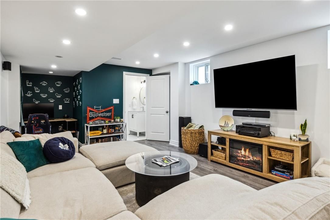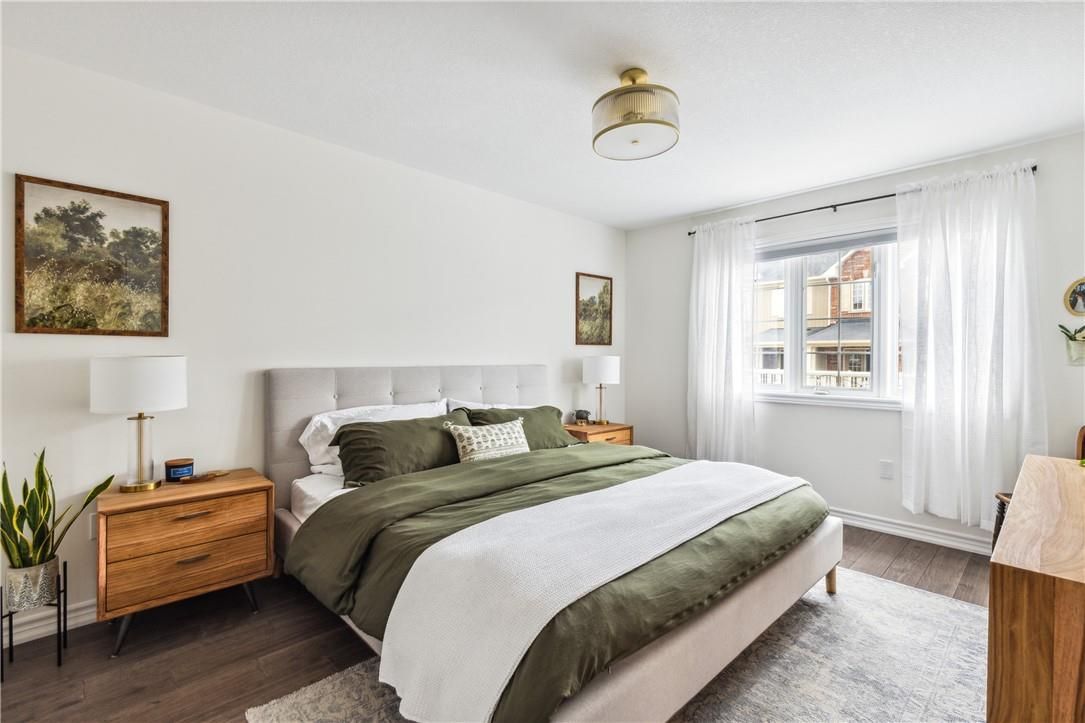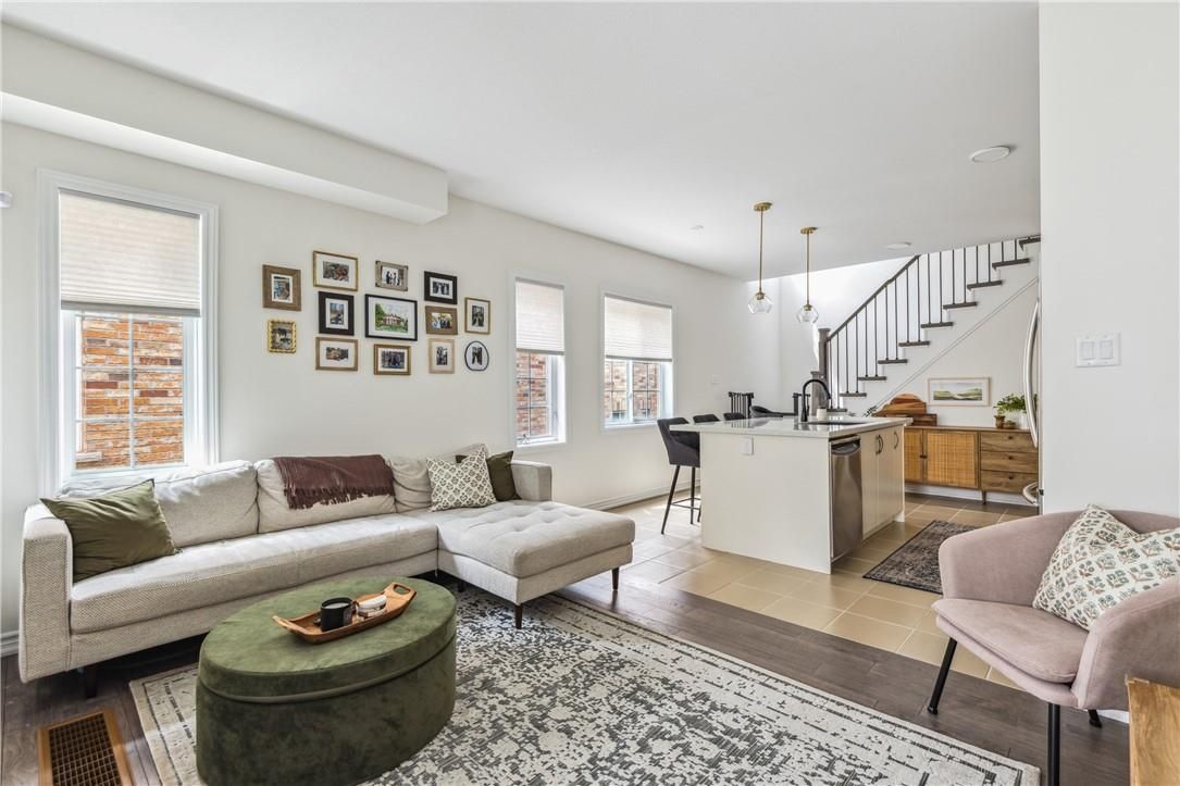 Urban elegance meets modern comfort! Welcome to this fabulous freehold townhome nestled in a highly desirable area of waterdown. This rare end unit boasts three spacious bedrooms and a double car garage allowing for four vehicle parking a true luxury in today's market! With an impressive 2,200 square feet of finished living space, this home offers room to breathe and grow. The gourmet kitchen features an extended island with a convenient breakfast bar, premium stainless steel appliances, and abundant cabinet space for all your culinary needs. Upstairs, you'll discover three generously sized bedrooms, including a stunning primary bedroom complete with a three-piece ensuite and a walk-in closet expertly fitted with organizers. Step outside to enjoy morning coffee or evening relaxation on your private balcony, complete with a gas line for barbecuing enthusiasts. Second-floor laundry with a utility sink adds everyday convenience. The professionally finished lower level provides additional entertaining space perfect for family movie nights or hosting friends. A 3 pc bathroom, and ample storage complete the level. Recently refreshed with fresh paint throughout, this immaculate home is move-in ready. The child-friendly neighbourhood offers peace of mind for families, while proximity to waterdown district high school (just 381 meters away) and memorial park makes this location ideal. Enjoy the convenience of walking to shops, restaurants, and recreational areas. Commuters will appreciate easy highway access and just a 10-minute drive to aldershot go station. Your urban oasis awaits!