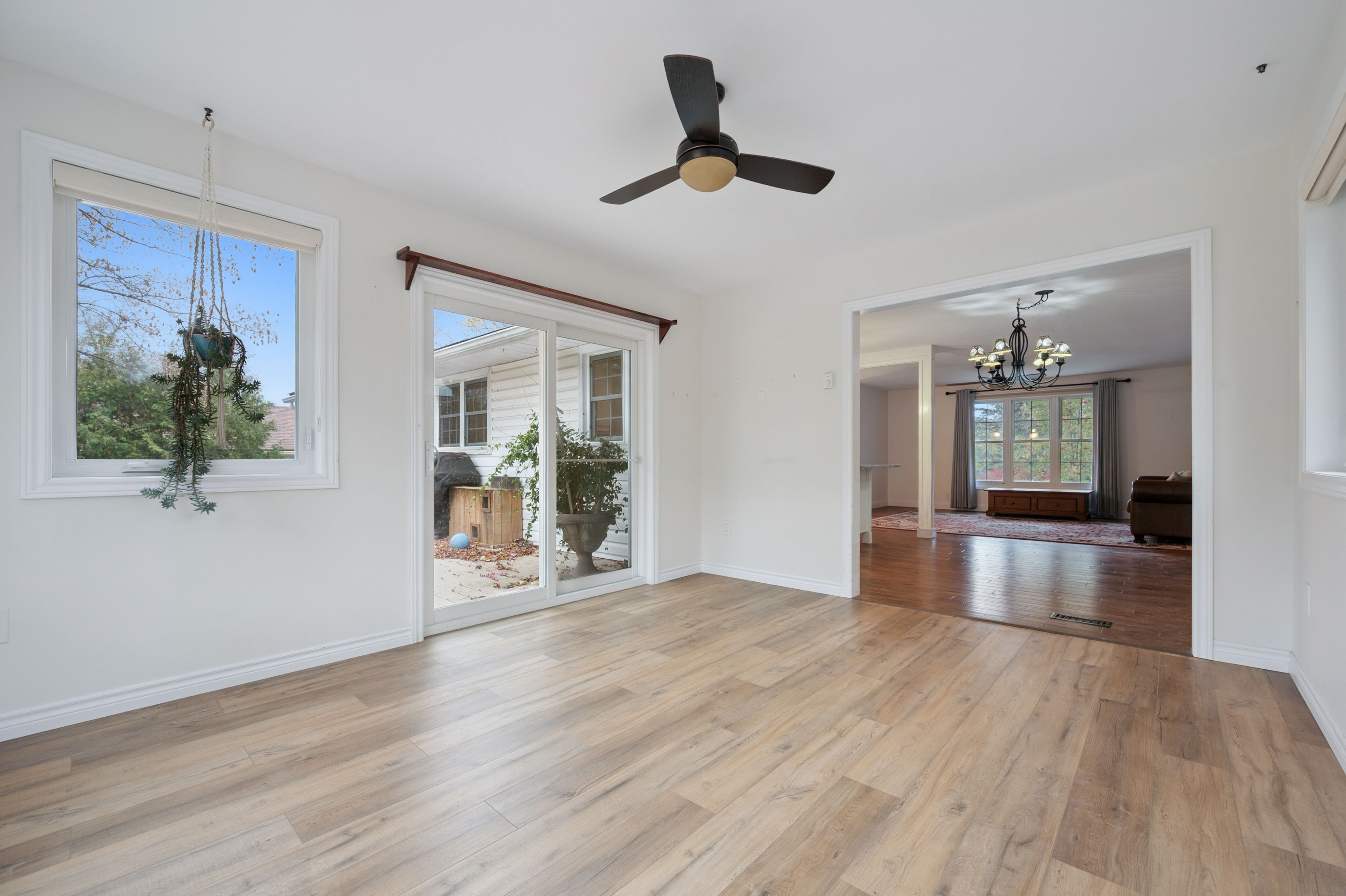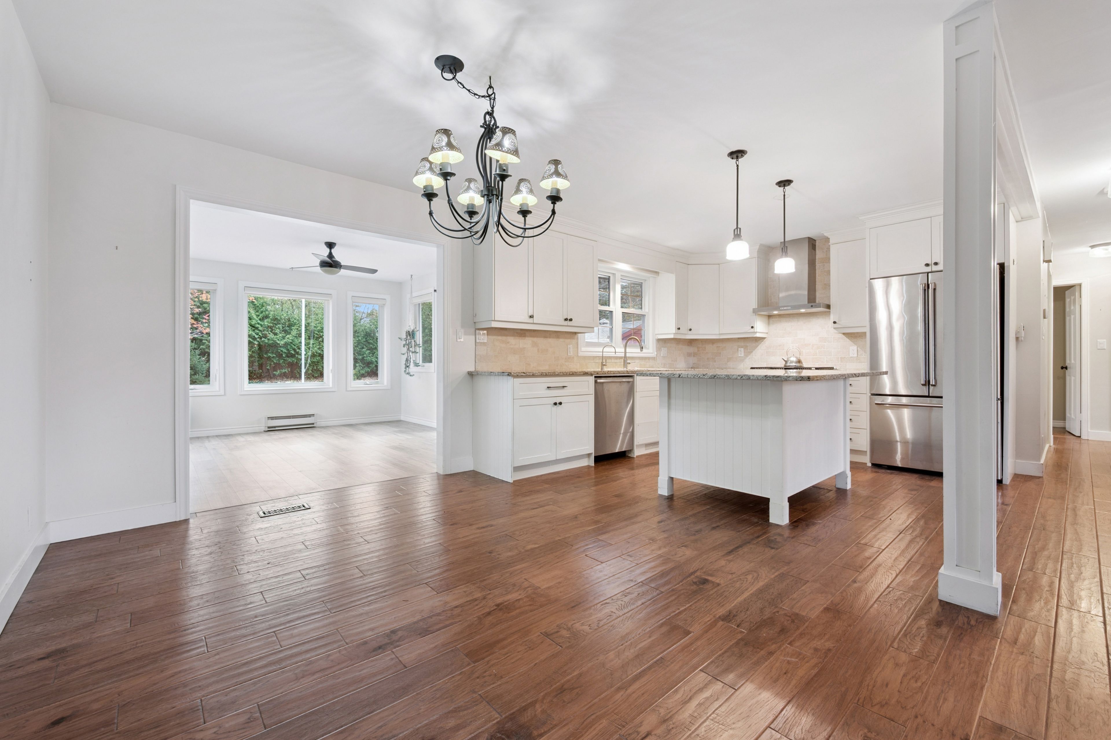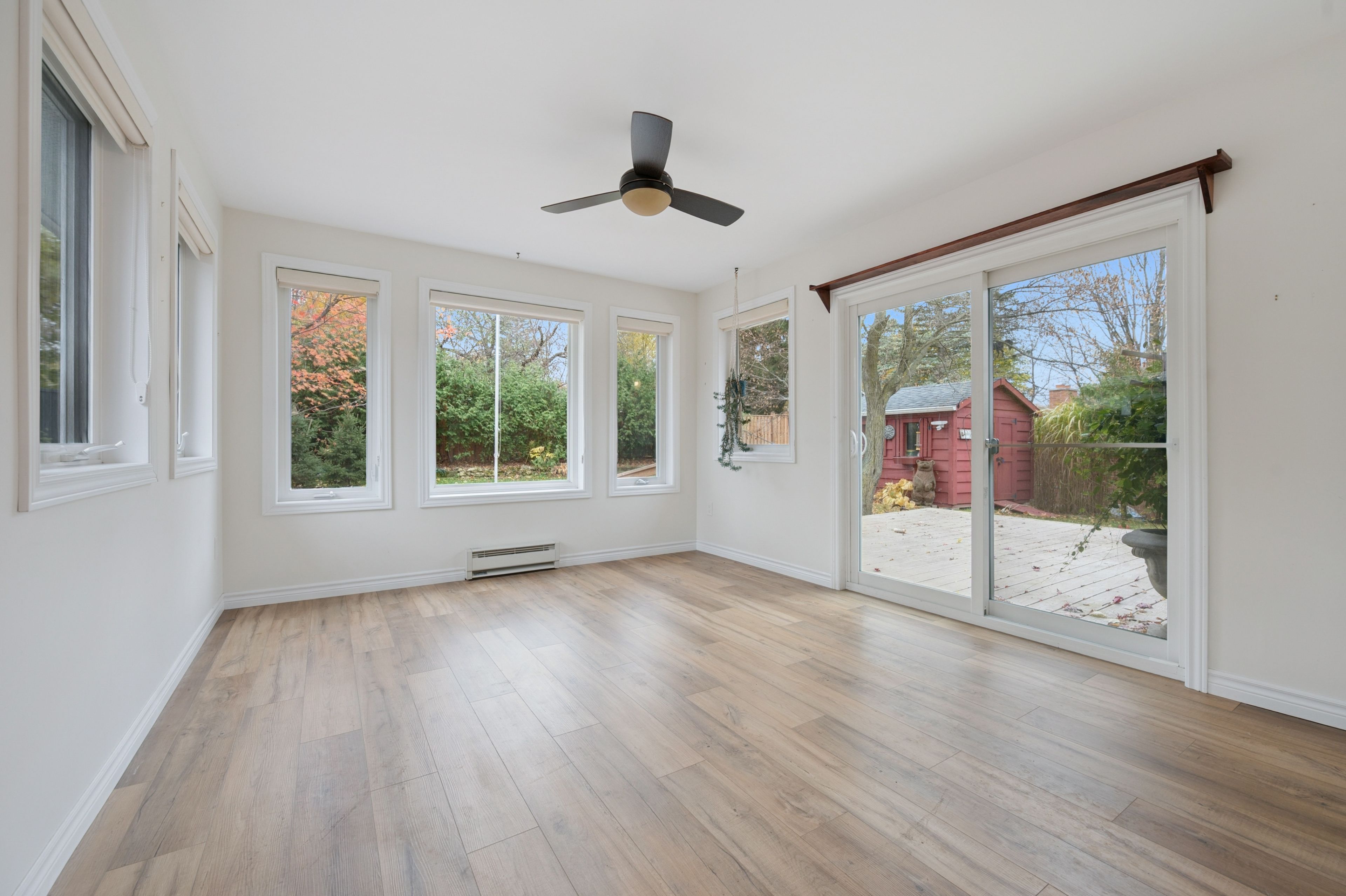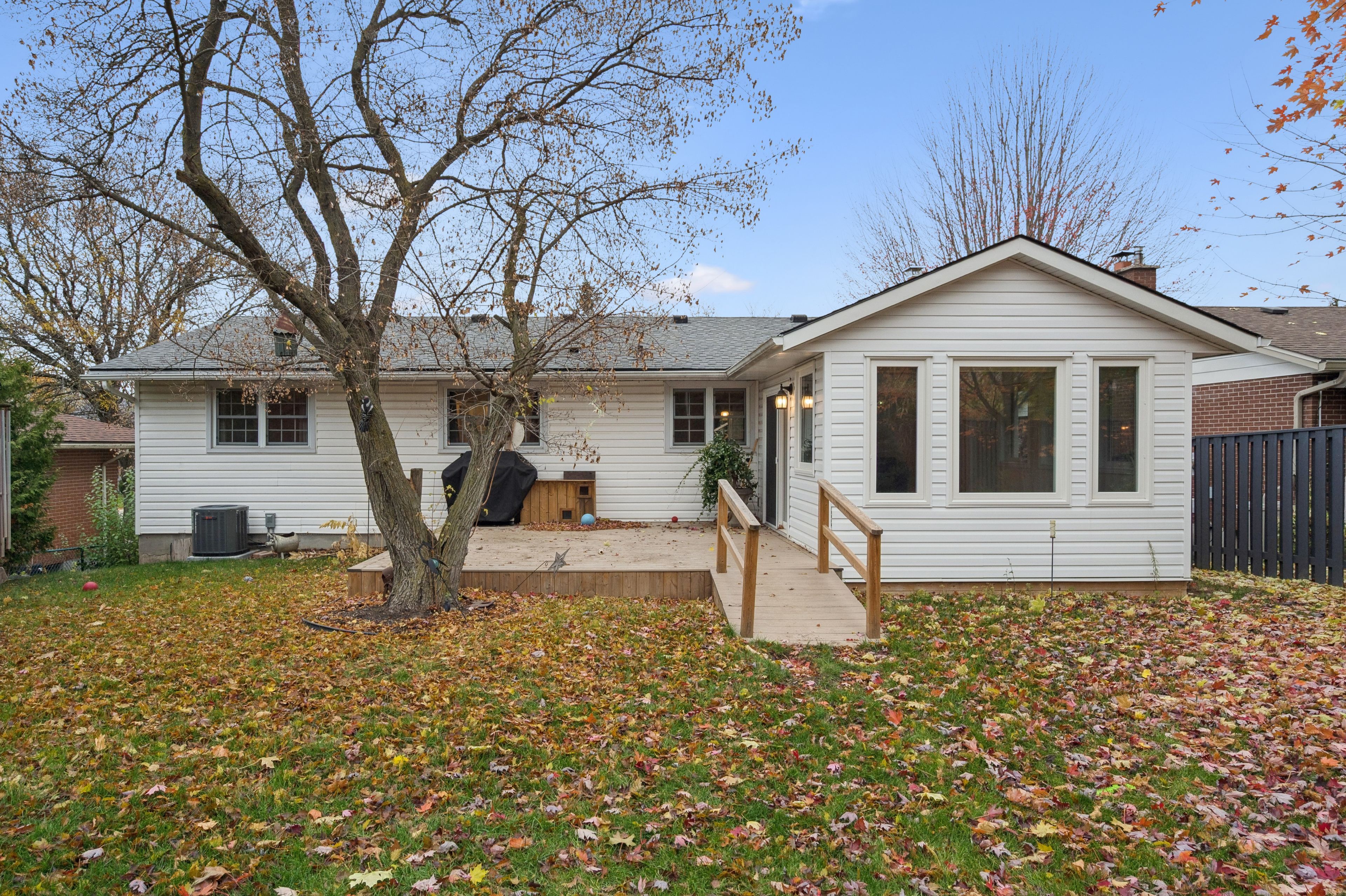 Charming detached raised bungalow in an amazing quiet neighbourhood situated on a large (invisible) fenced yard. The bright and sunny main floor features an open concept layout with living room, dining room on to a large 4 season sunroom with many windows and patio doors unto a composite deck. Kitchen with granite counters, stainless steel appliances, large island with breakfast bar. Hardwood floors in the main living area. 3 spacious bedrooms, 3 pc main bath with walk-in shower, heated floors newly renovated. Newer furnace and air conditioning. Very large 2 car garage with garage door opener. Front porch was recently renovated. The basement has a 2 pc. Bath and entrance from the garage. Recreation room plus an area for a 4th bedroom or home office. Plenty of storage area under stairs. P. S. Owner had additional insulation blown into r20 value.. Book your showing today.