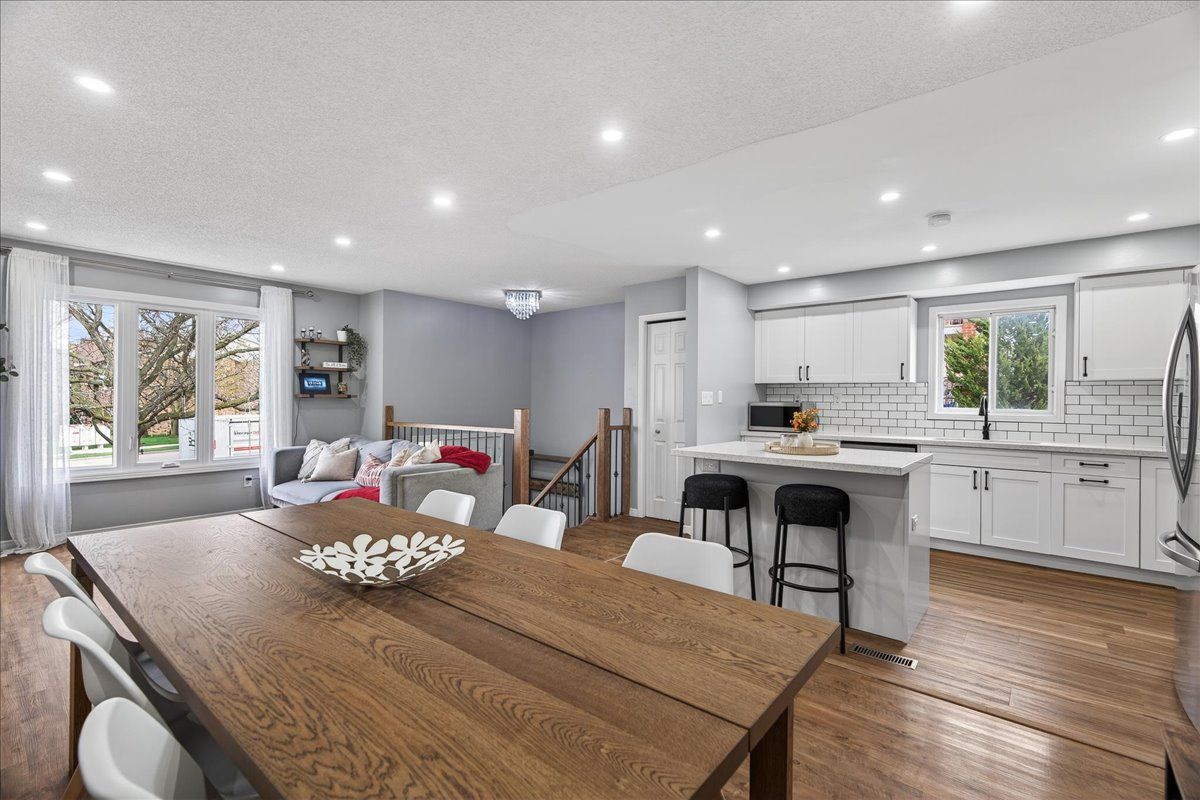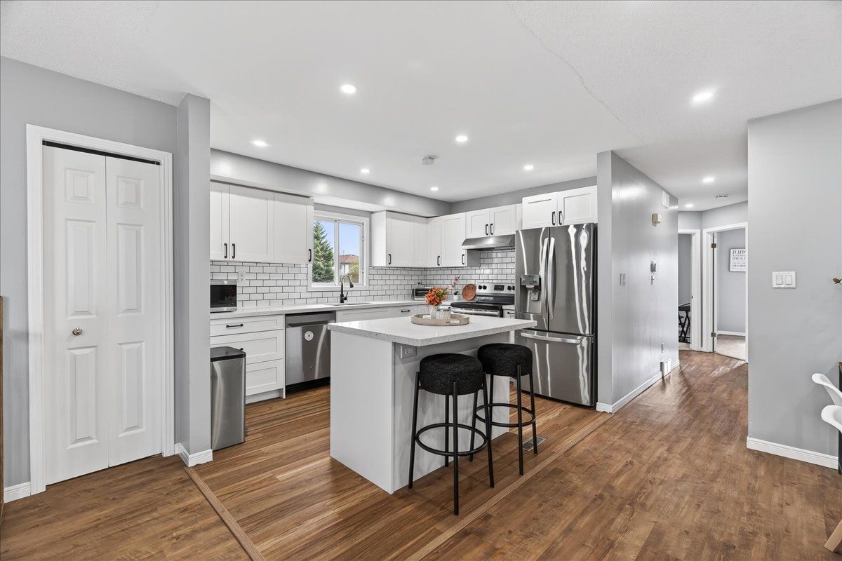 This updated semi features 4 bedrooms, 2 full bathrooms, a fully fenced yard and 3 car parking. The open-concept main floor features a spacious brand new kitchen with quartz countertops, new stainless steel appliances and an eat-in island overlooking your dining and living area. It's the perfect functional layout for those who love to host. Down the hall, you'll find three well-sized bedrooms with access to the backyard and a full bath. The lower level features extra large windows supplying tonnes of natural light to enter the rec room or second living area. On this level you'll also find a primary bedroom complete with an updated cheater bathroom, not one but two walk-in closets and laundry room. Enjoy outdoor living in the fully fenced backyard, complete with a deck perfect for relaxing, entertaining, or enjoying a quiet morning coffee. Perfectly located, this home is just a 5-minute walk to elgin centre and optimist park, offering excellent convenience for shopping, recreation, schools, playgrounds and everyday needs. Bus stops are within walking distance and being located 3 minutes from highbury avenue makes your commute a breeze! This home is truly move in ready. Once you see it in person you'll know it's the perfect fit for growing families or those looking to downsize. Get in touch and book your showing today!