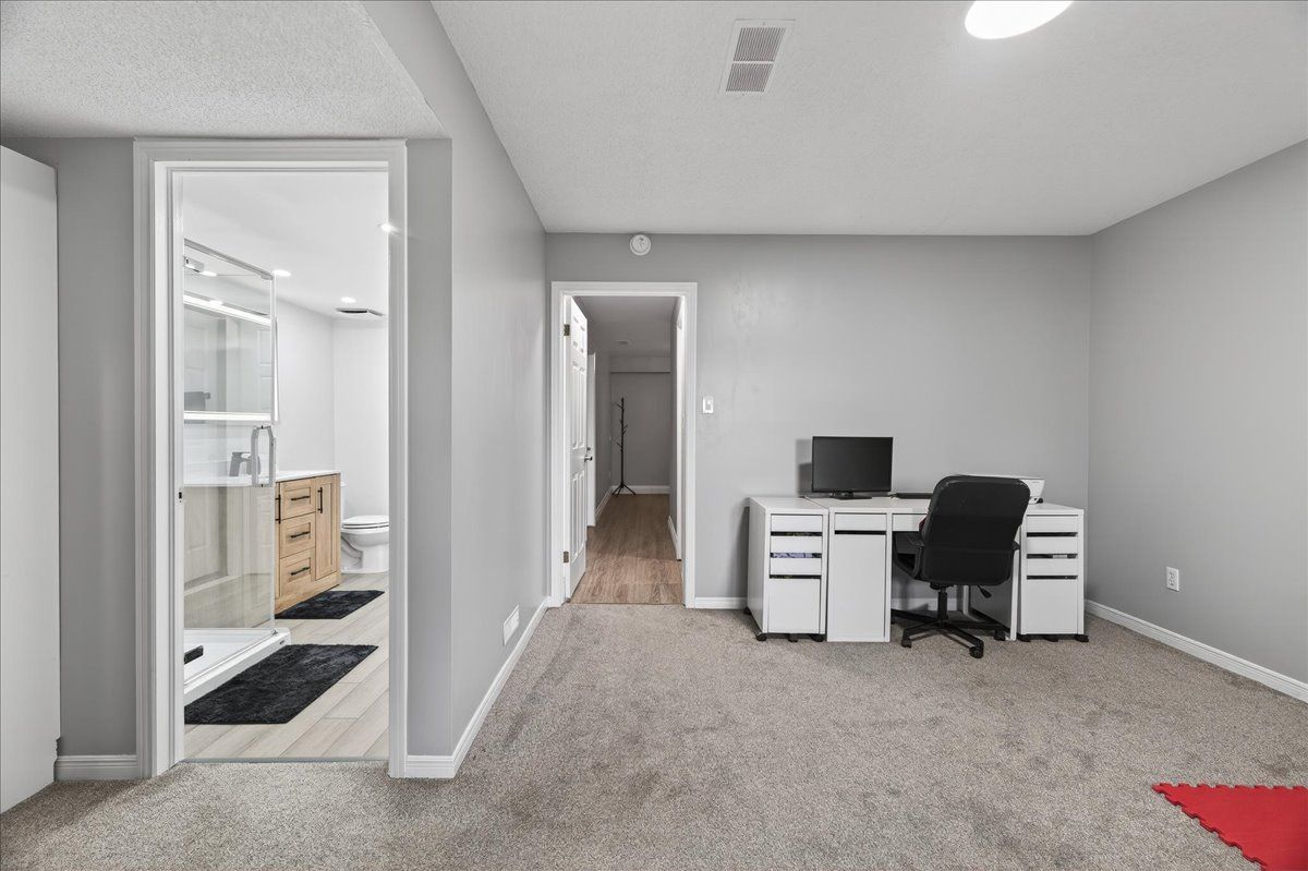 • Lower level has large windows, bright rec room, and a primary bedroom suite.