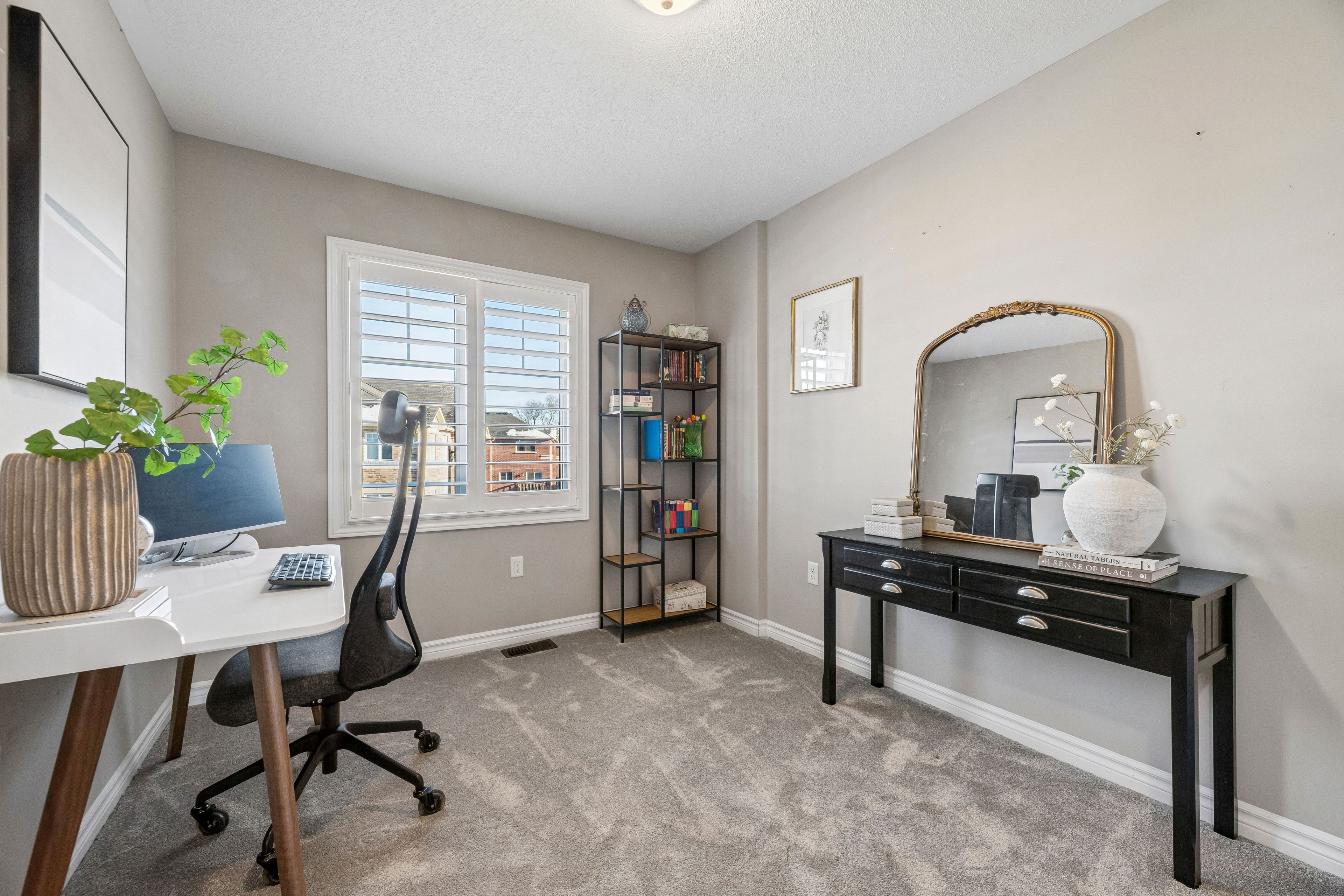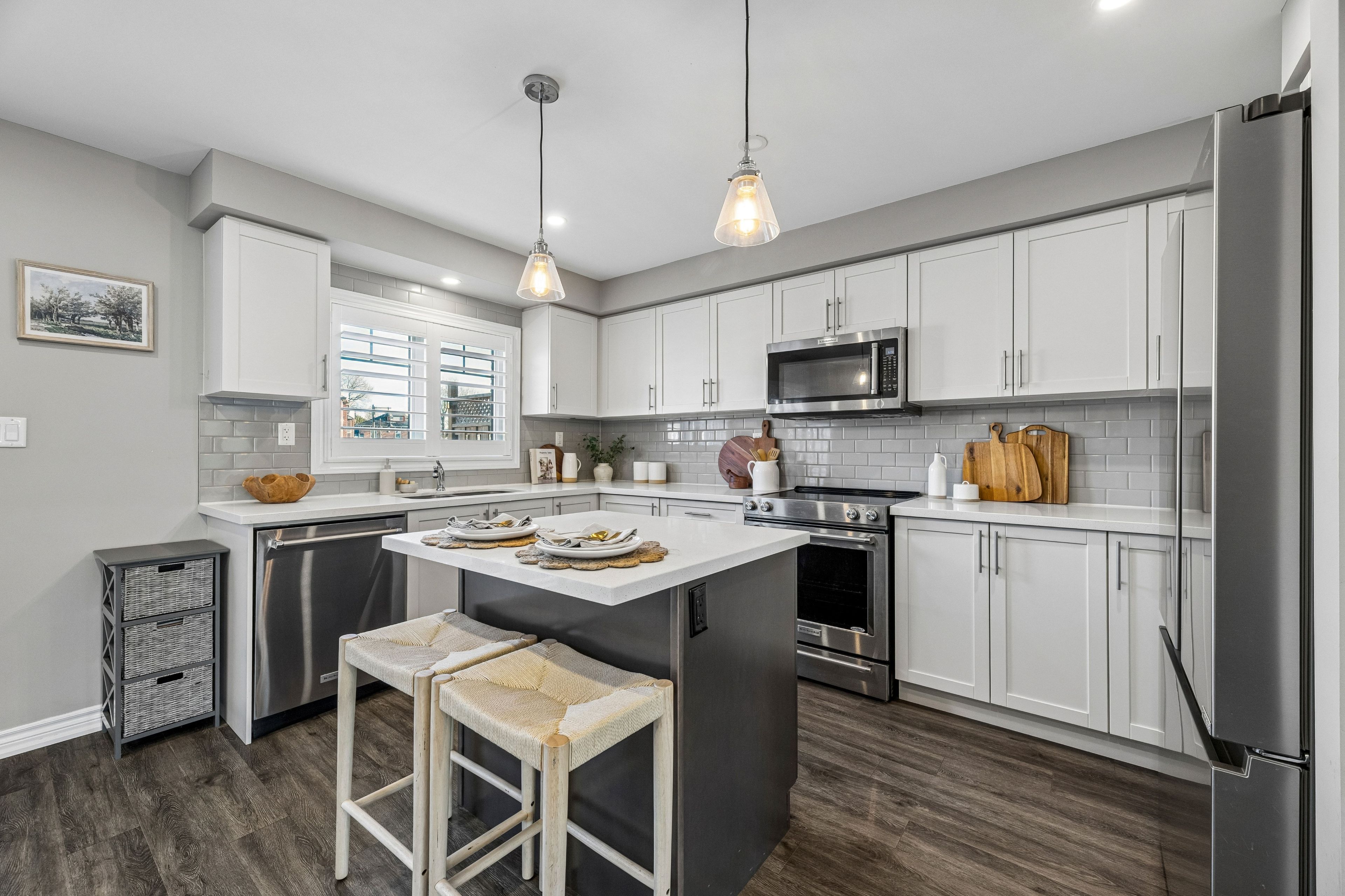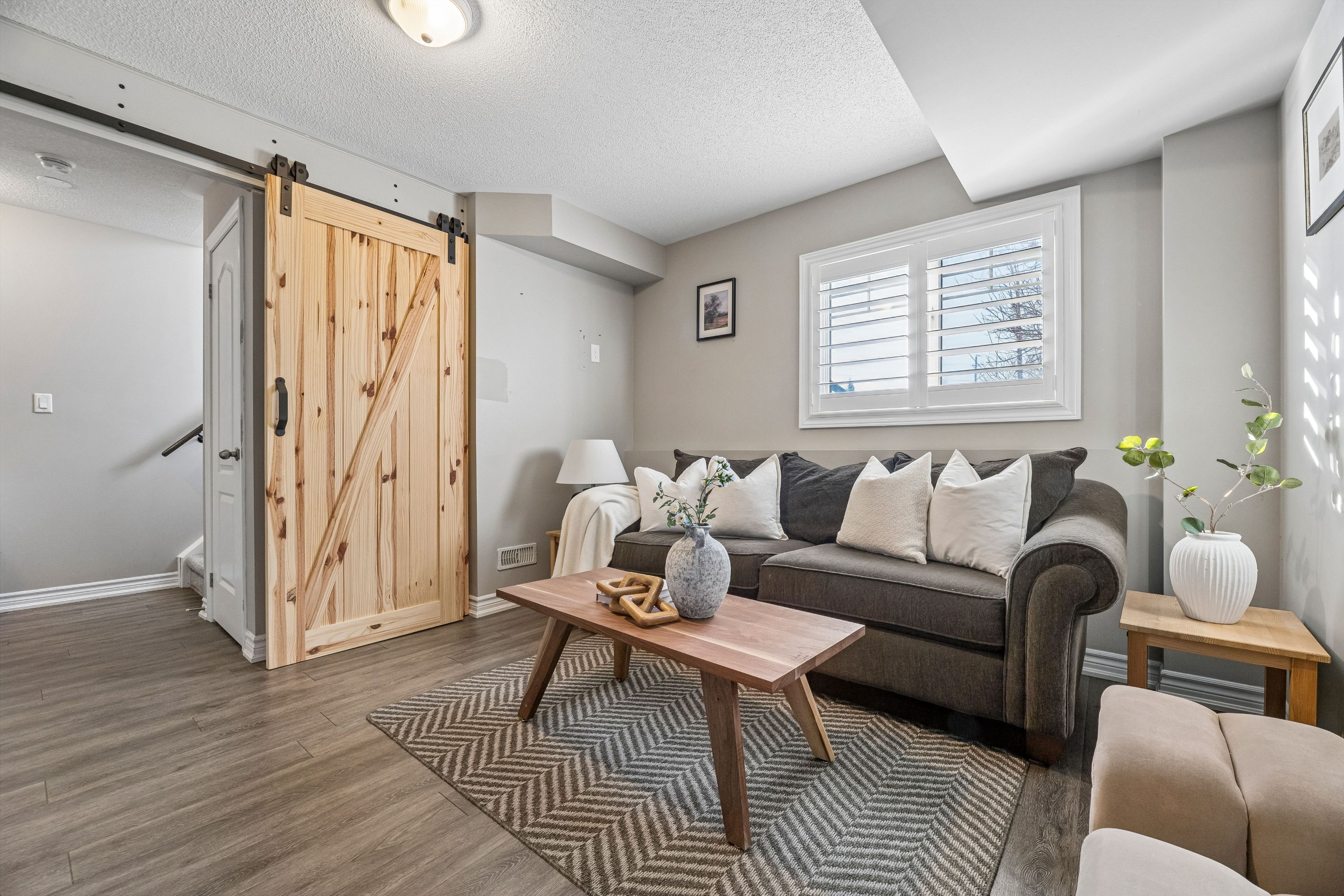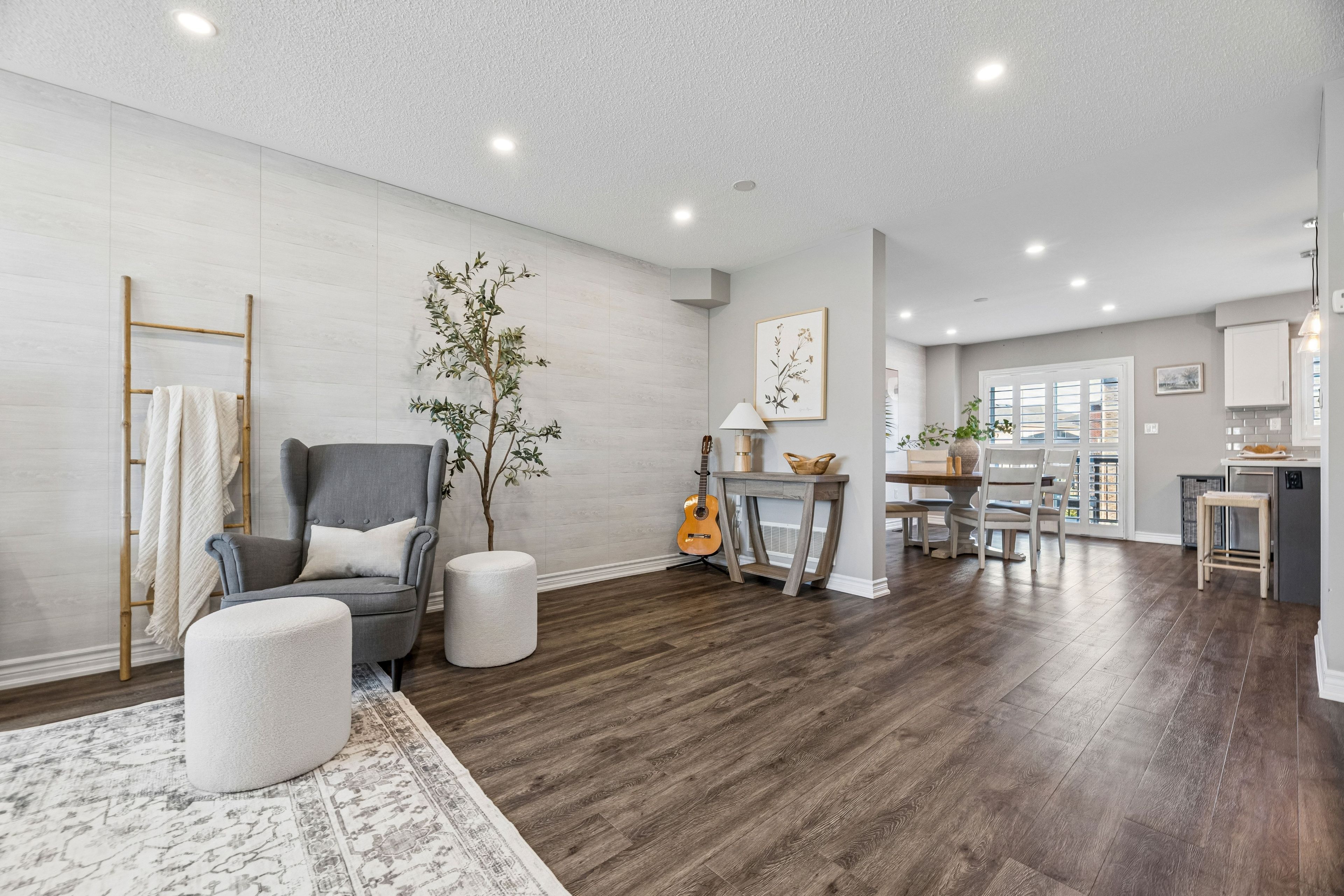 Welcome home to this luxury townhouse built by halminen homes. This rarely offered "oxford" model offers approximately 1,733 sq ft of well-designed living space. Featuring 4 bedrooms & 3 bathrooms. This home showcases a highly functional layout ideal for modern living. Enjoy quality finishes throughout, including luxury vinyl flooring on the main and lower levels, quartz countertops, stainless steel appliances, california shutters, and pot lights across the main floor. The kitchen walks out to a large balcony, perfect for entertaining. Additional features include a double car garage with direct interior access plus double car parking in the driveway. Updated broadloom (2025). Fridge updated in 2025. Ideally located within walking distance to schools, transit, parks, and shopping, with convenient access to all amenities and quick connections to hwy 401 and 407.