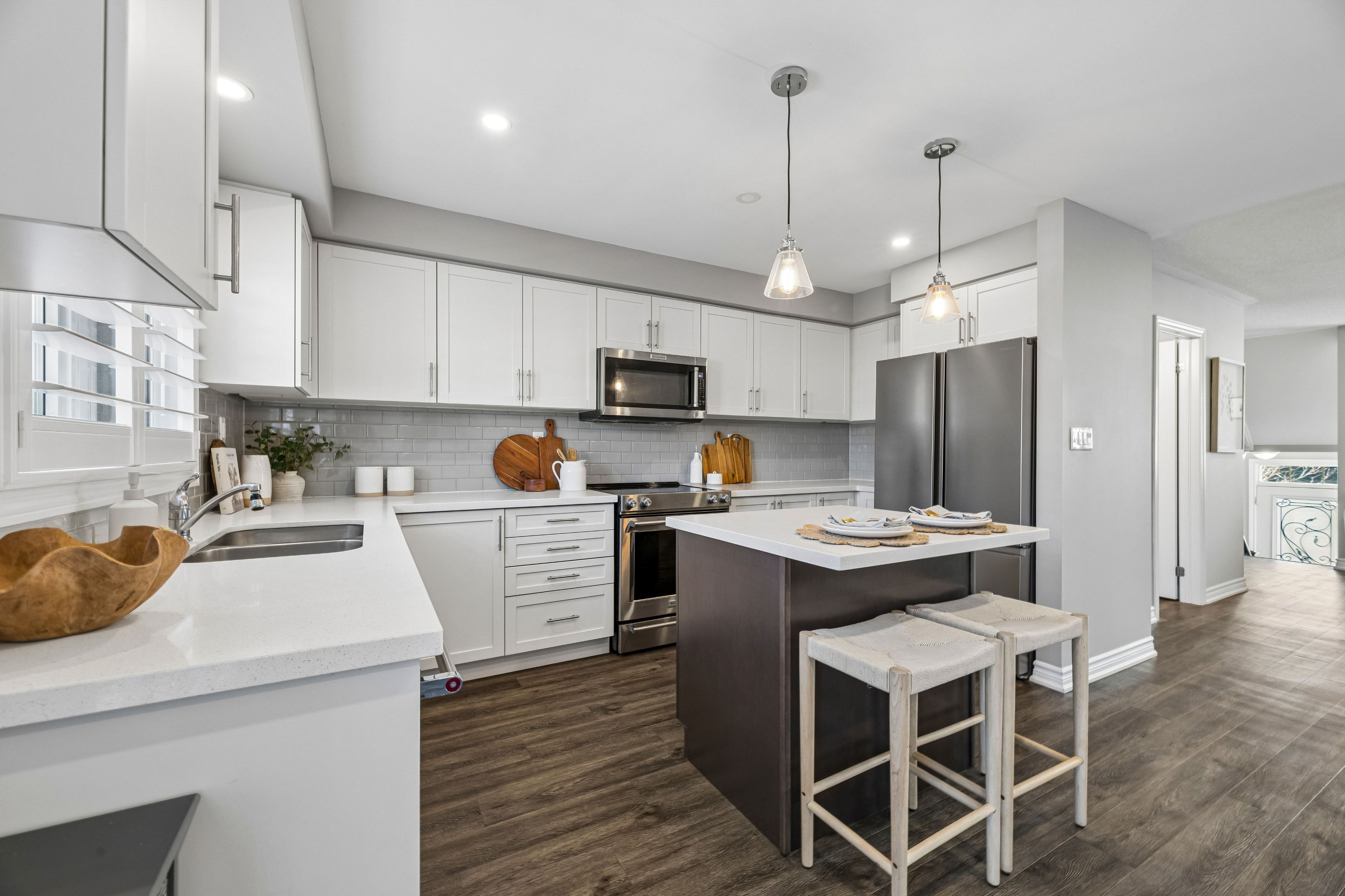 • Modern kitchen with quartz countertops and stainless steel appliances.