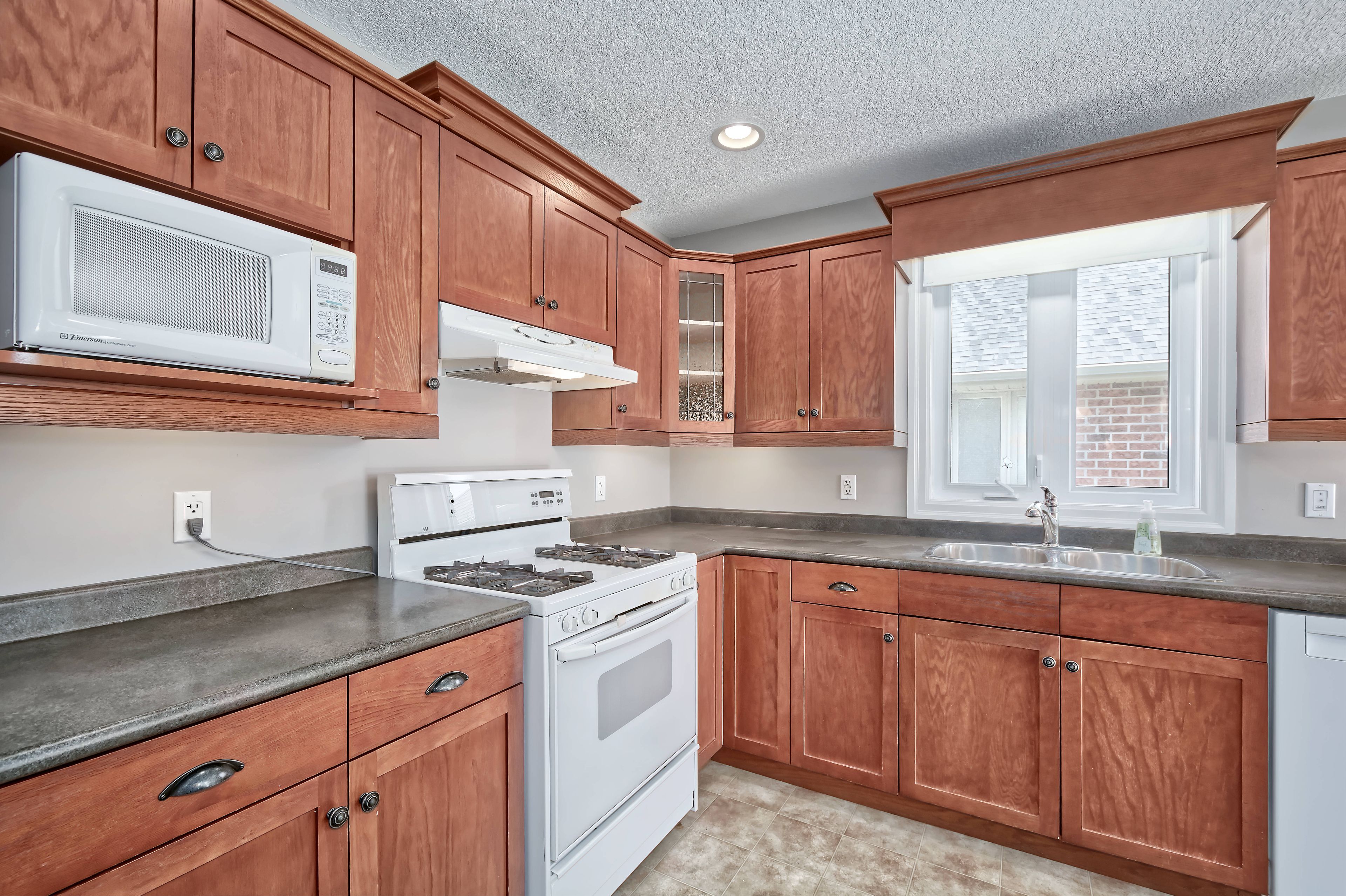 • Bright kitchen with cherry cabinetry and views of the amazing yard.