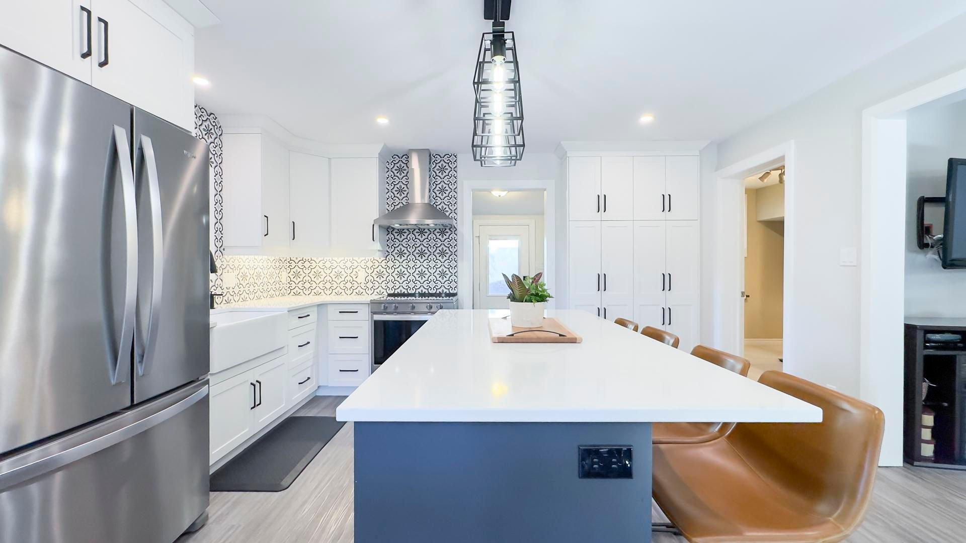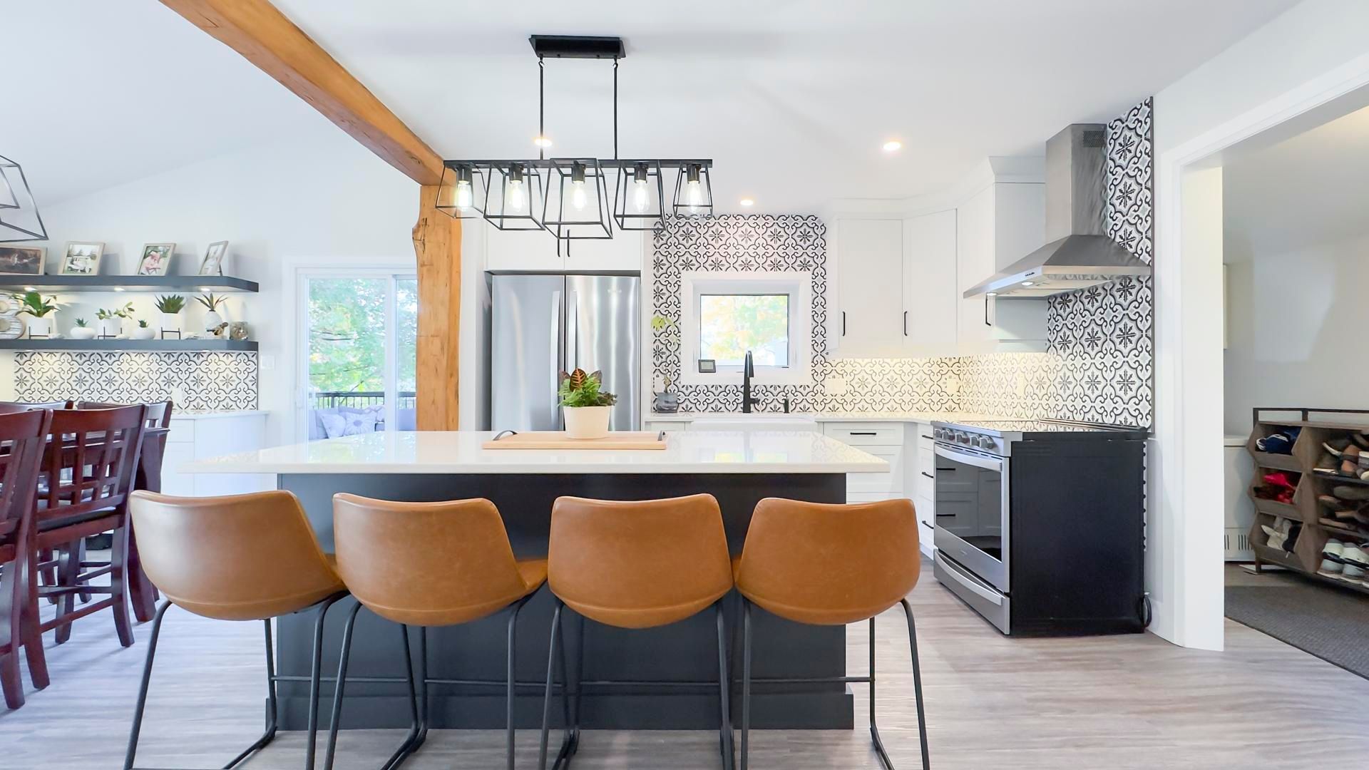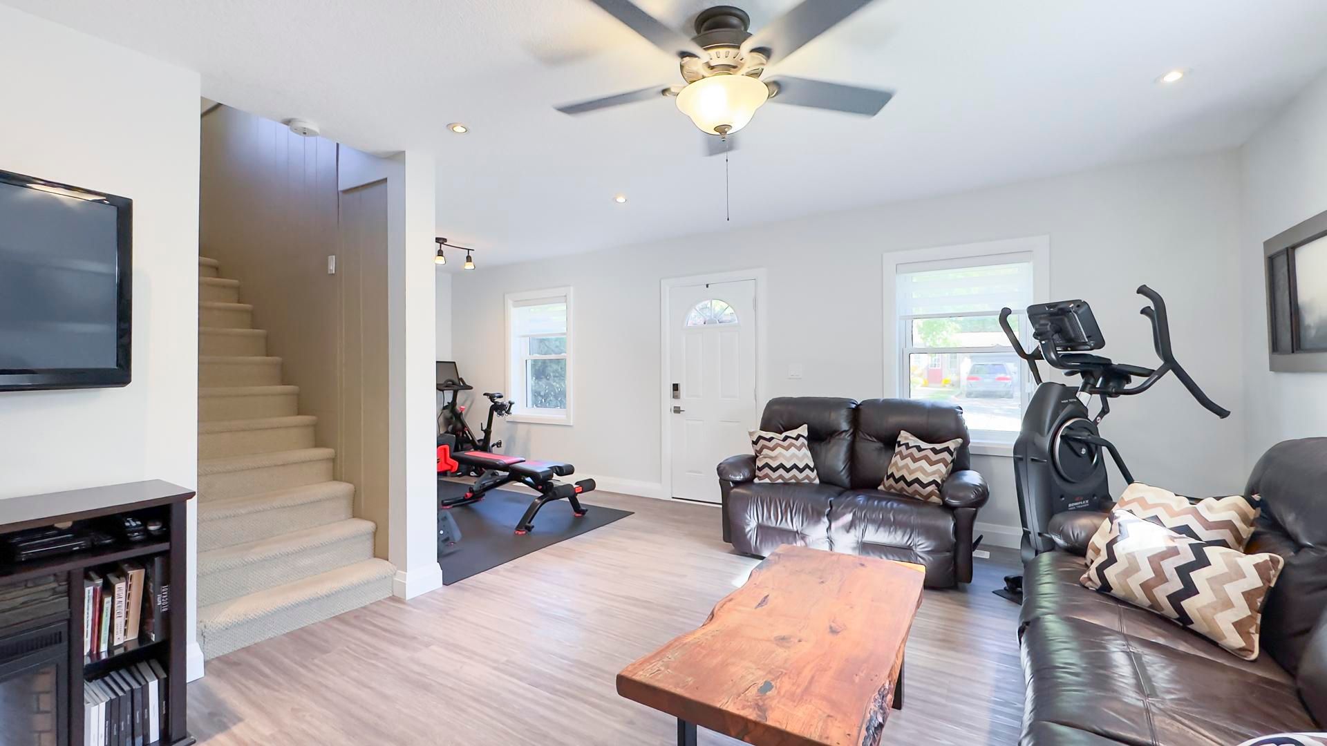 Welcome to 54 waterloo street - where classic brick character meets modern, thoughtful renovation just minutes from downtown mitchell. The fully redesigned main floor is the true showpiece of this home. A custom kitchen featuring quartz countertops, a large center island with seating for four, and abundant cabinetry flows seamlessly into a bright dining area - ideal for everyday living and entertaining. Patio doors lead to a composite deck overlooking the fully fenced backyard, creating the perfect indoor-outdoor lifestyle. The spacious 23' x 17' living room offers incredible flexibility for family living, while updated flooring throughout the main level enhances the clean, modern feel. You'll also appreciate the convenience of main floor laundry and a beautifully updated 4-piece bathroom. A versatile bonus area currently used as a workout space could easily serve as a home office, playroom, or reading nook. Upstairs, you'll find three comfortable bedrooms and a convenient 2-piece bath. Outside, enjoy a fully fenced yard, storage shed, and private driveway parking for two. The brick exterior and stone foundation offer timeless curb appeal and lasting durability. With 1,688 sq ft above grade, low property taxes, and extensive main-floor and exterior updates already completed, this move-in ready home offers exceptional value in a growing community. A stylish blend of character and modern comfort - ready for its next chapter.