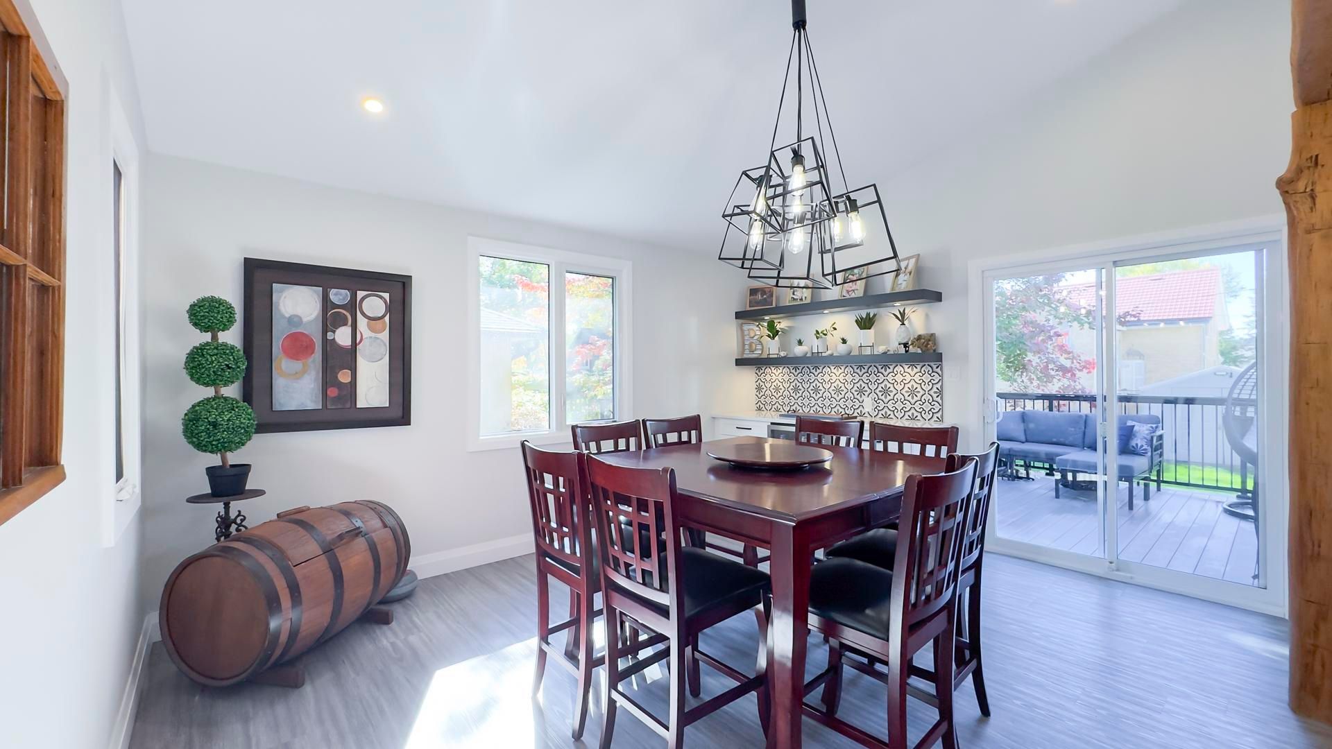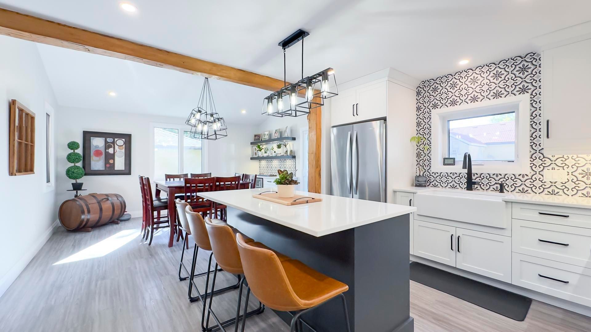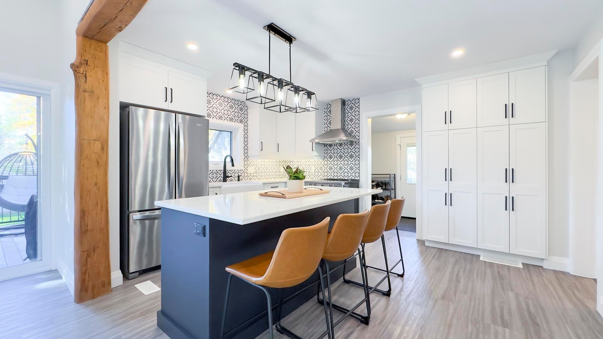 Welcome to 54 waterloo street - where classic brick character meets modern, thoughtful renovation just minutes from downtown mitchell. The fully redesigned main floor is the true showpiece of this home. A custom kitchen featuring quartz countertops, a large center island with seating for four, and abundant cabinetry flows seamlessly into a bright dining area - ideal for everyday living and entertaining. Patio doors lead to a composite deck overlooking the fully fenced backyard, creating the perfect indoor-outdoor lifestyle. The spacious 23' x 17' living room offers incredible flexibility for family living, while updated flooring throughout the main level enhances the clean, modern feel. You'll also appreciate the convenience of main floor laundry and a beautifully updated 4-piece bathroom. A versatile bonus area currently used as a workout space could easily serve as a home office, playroom, or reading nook. Upstairs, you'll find three comfortable bedrooms and a convenient 2-piece bath. Outside, enjoy a fully fenced yard, storage shed, and private driveway parking for two. The brick exterior and stone foundation offer timeless curb appeal and lasting durability. With 1,688 sq ft above grade, low property taxes, and extensive main-floor and exterior updates already completed, this move-in ready home offers exceptional value in a growing community. A stylish blend of character and modern comfort - ready for its next chapter.