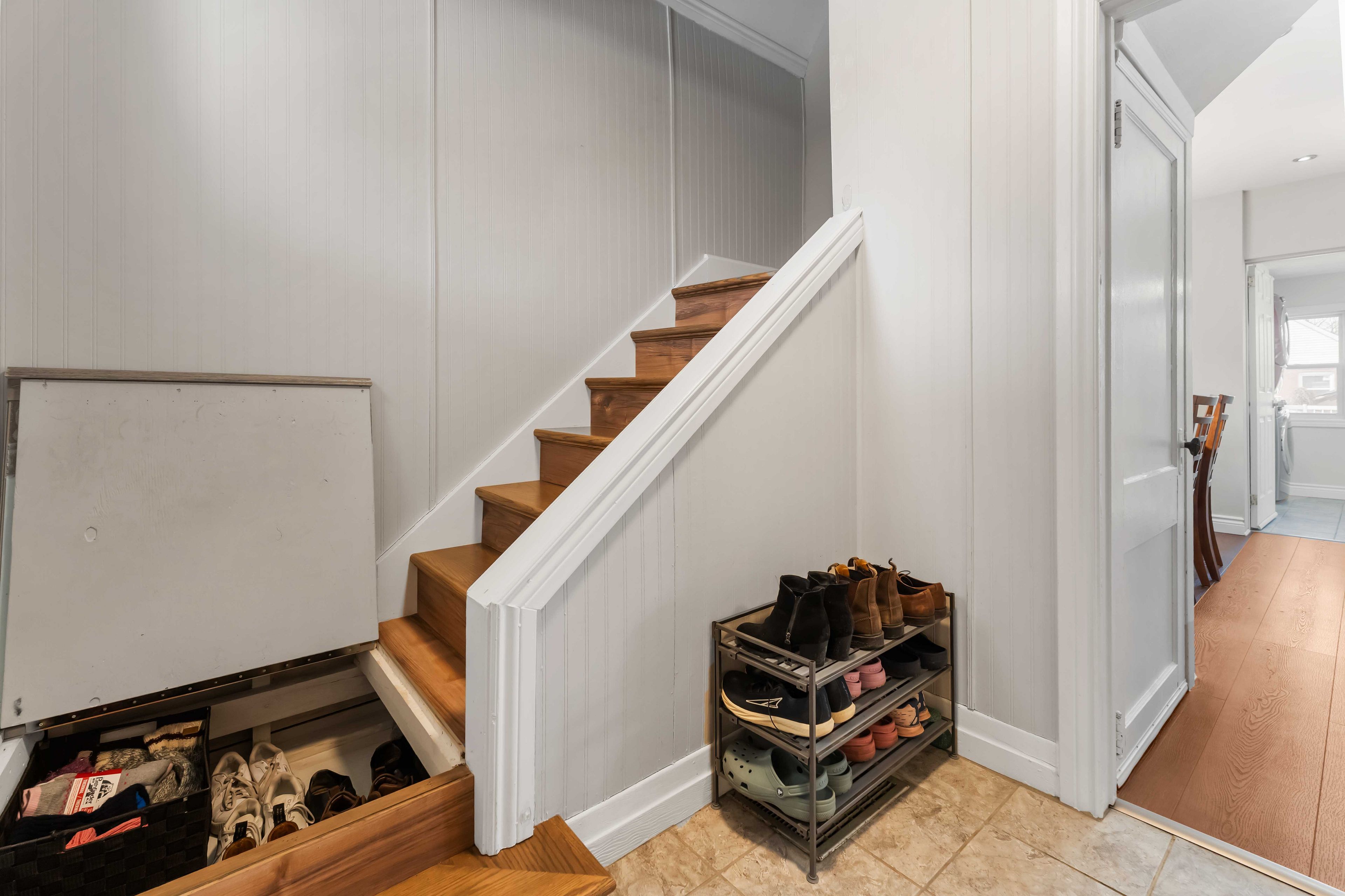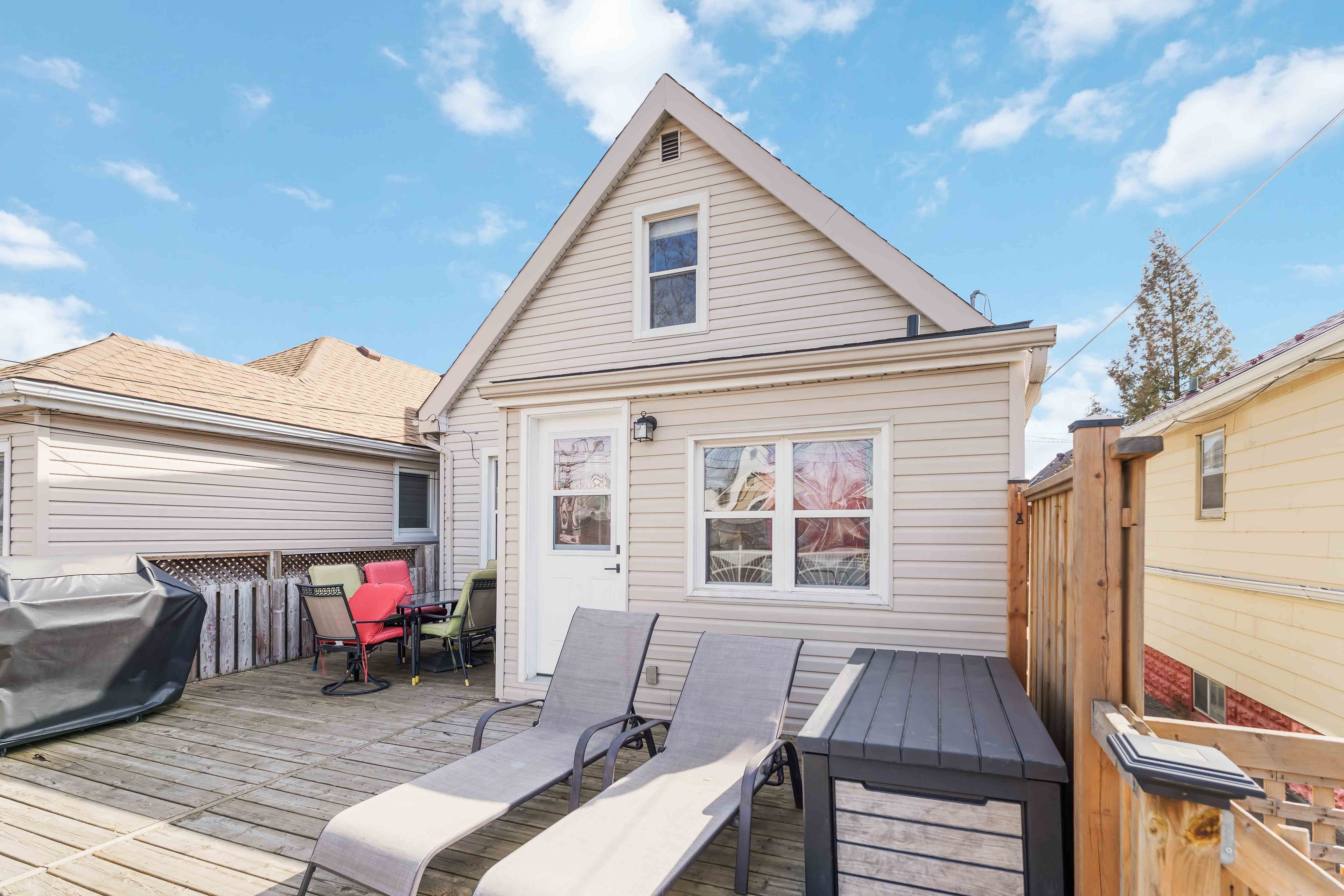 Welcome to 54 weir street south, nestled in the highly desirable east hamilton neighbourhood. This charming home offers the perfect balance of comfort, thoughtful updates, and a family-friendly location just steps from montgomery park. Enjoy your morning coffee on the welcoming front porch, spend sunny afternoons relaxing in the backyard by the above-ground pool, and take evening walks through the nearby park with family and friends. Inside, the main floor showcases a cleverly concealed wine rack hidden behind the entrance mirror, adding a distinctive and functional design feature. The space continues into a warm and inviting living & dining area filled with natural light from large windows, alongside a beautifully renovated kitchen designed for both everyday living and effortless entertaining. The kitchen features updated cabinetry with thoughtfully added drawers, providing enhanced storage and organization. Convenient main-floor laundry & a stylishly updated 2-piece bathrm. The staircase has been upgraded with laminate flooring and thoughtfully enhanced with additional storage beneath the landing. Upstairs, you'll find two generously sized bedrms filled with natural light, along with an updated bathrm. The upper level was refreshed with new flooring,paint and a new closet in the primary bedrm. The offers additional living space with a versatile den or rec room, mechanical/utilities & storage areas. Outside, the property has also been enhanced with a new front porch,parking for two vehicles (2023),new fencing that fully encloses the yard & updated deck stairs. The above-ground pool has been well maintained with upgraded equipment (2021-2024), making the backyard a perfect space to relax and entertain. Ideally located close to schools,shopping,restaurants,public transit and with quick access to the red hill valley parkway,commuting to toronto or niagara is simple. A wonderful opportunity to own a beautifully maintained home in a vibrant & convenient community.