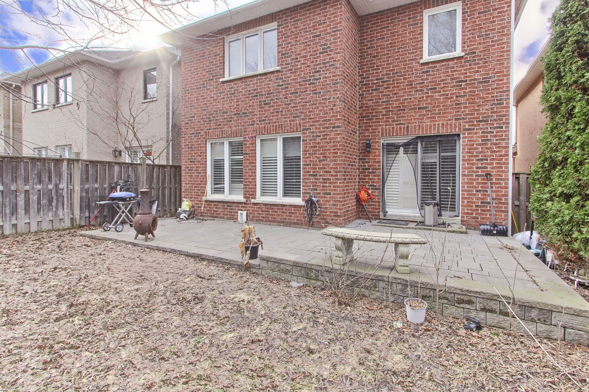 • Large fenced backyard with patio, great for entertainment and recreation.