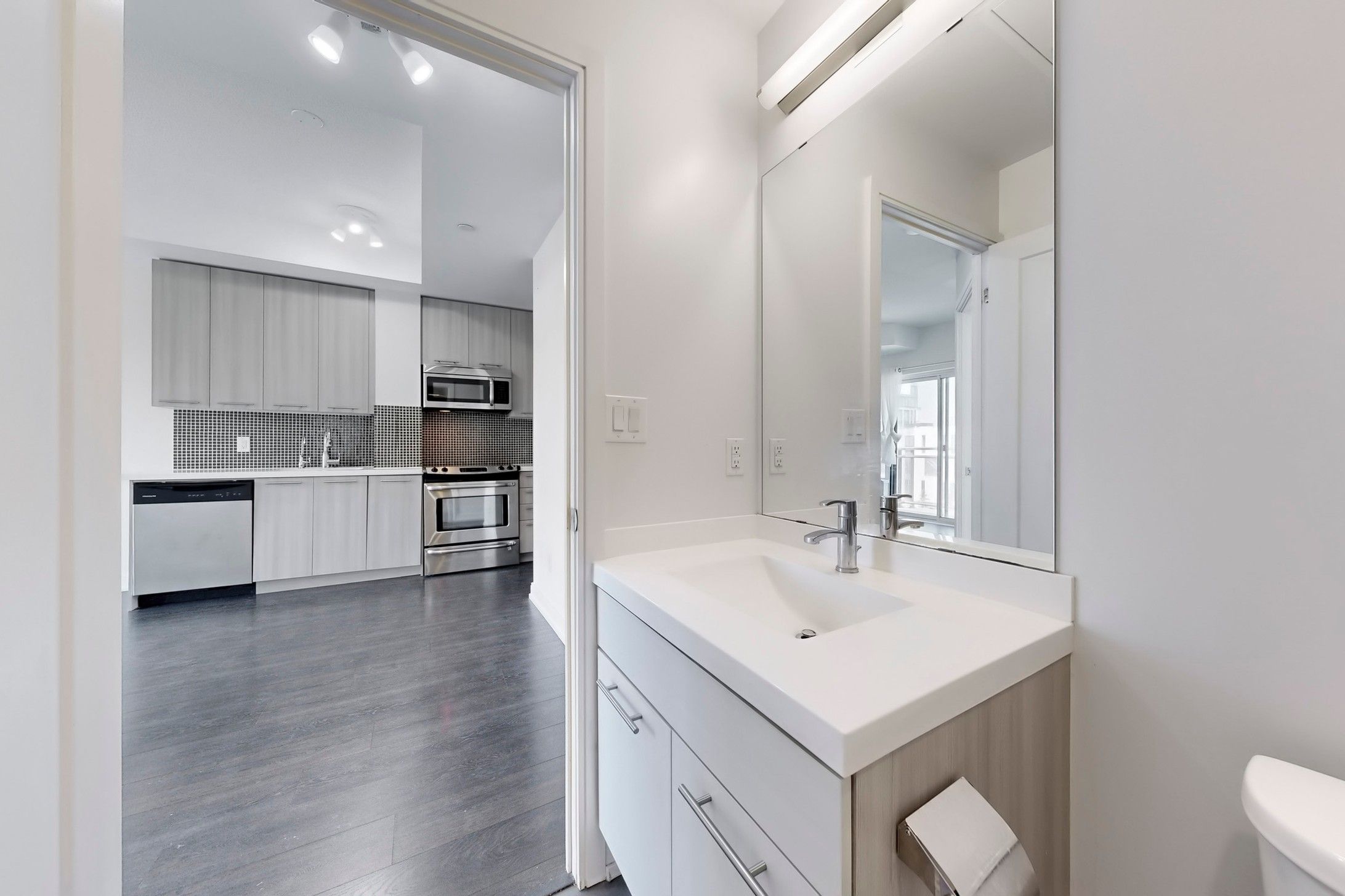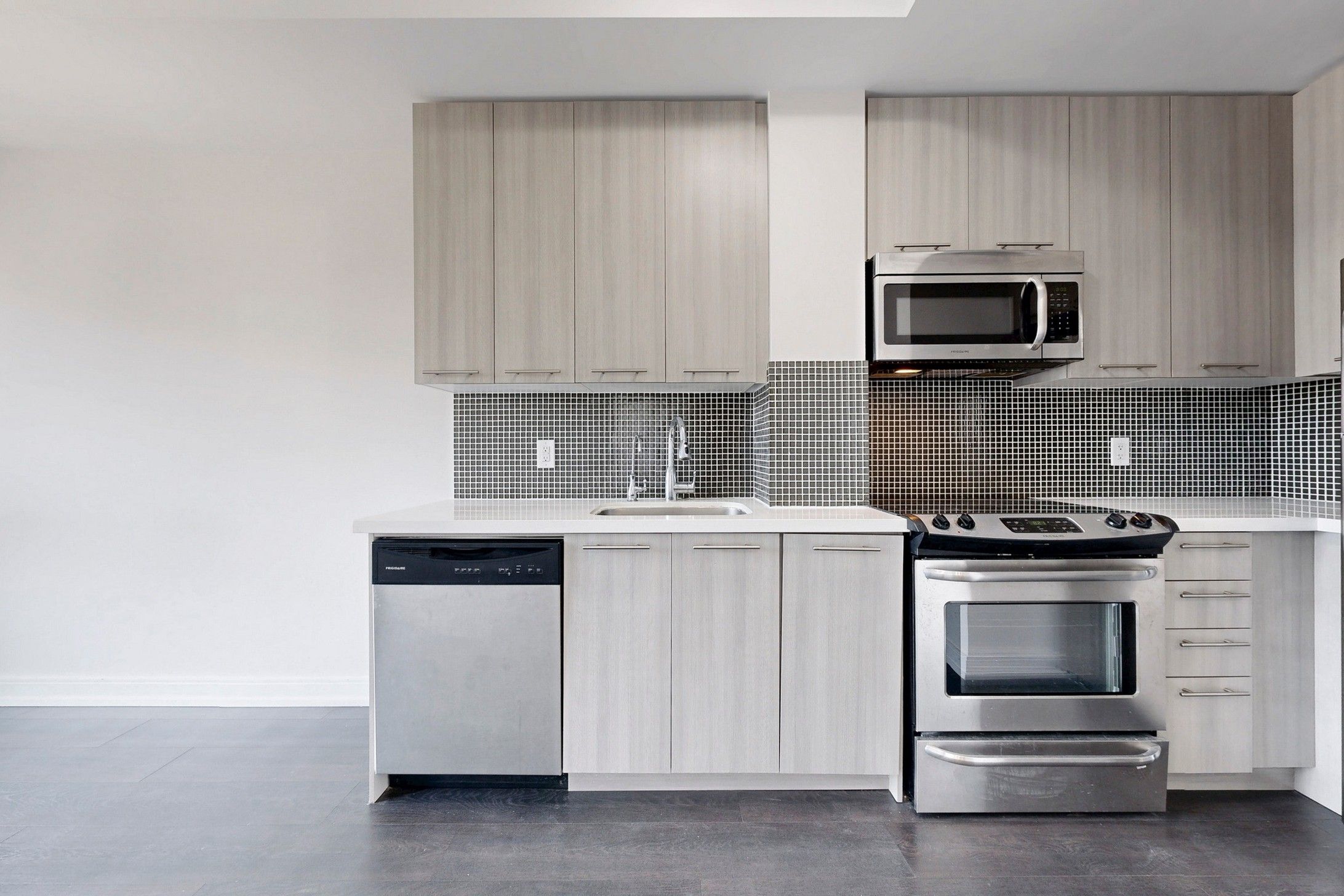 • Stylish kitchen features quartz countertops and stainless steel appliances.