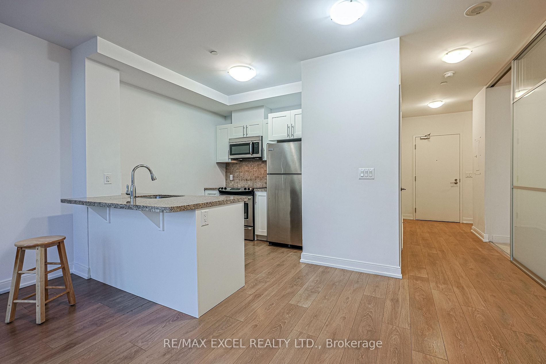***beautiful 1 bedroom 1 washroom unit in the heart of markham!*top floor (no units above)*9ft smooth ceiling throughout*upgradedquality laminate floors w/acoustic underlay*large open concept layout*bright & sunny with large windows*modern kitchen w/granitecountertops, stainless steel appliances & breakfast bar*great location - steps to local bus, amenities; close to park, good schools, gotransit & much more!* extras: ss fridge, ss stove, ss rangehood, ss b/i dishwasher, washer, dryer and all blinds. 1 parking & 1 locker. Building amenities: party rmw/lounge & kitchen, rooftop patio w/bbq & garden, screening rm, library, golf simulator and much more!