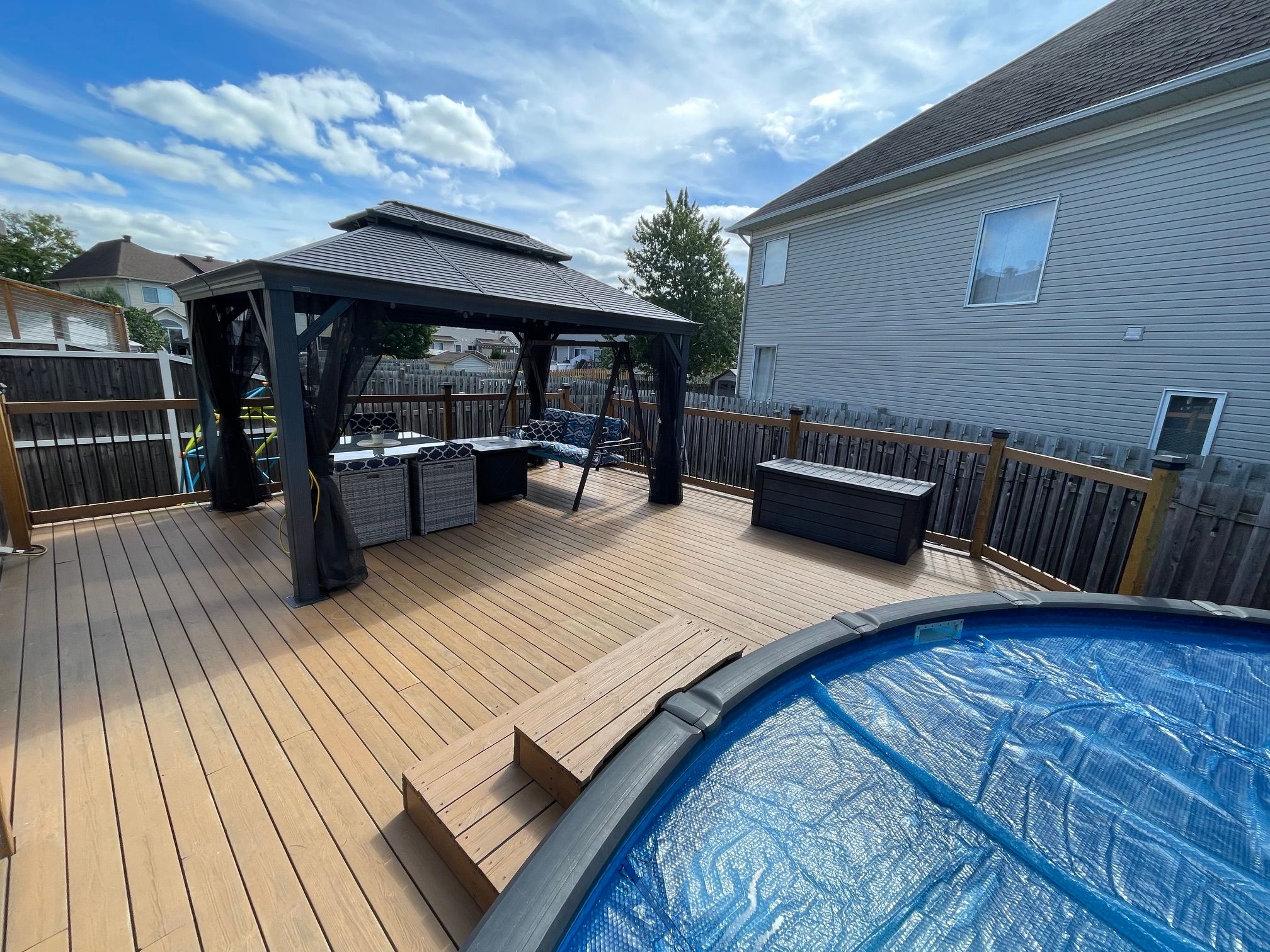 • Fully fenced backyard with a pool and large deck for outdoor entertaining.
