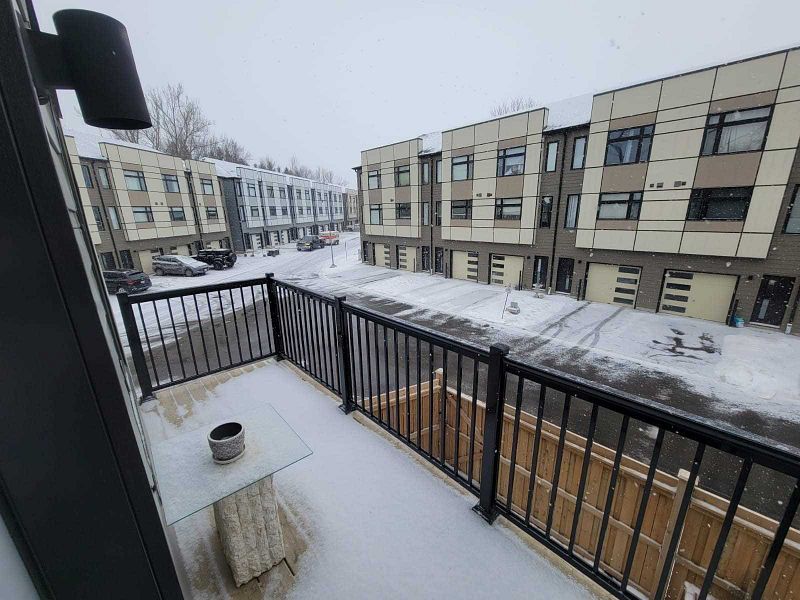 Must see for all buyers & investors! Modern luxury one of the biggest units (1. 500+ sq. F) townhouse with self-contained unit on ground floor, that includes 2 separate entrances, a full kitchen and 3 pc bath. Fully upgraded. Corner unit with grand windows, natural light & 9 ft ceilings! Upgrades include pot lights, gallery kitchen, quartz counter tops, stainless-steel appliances, owned ac unit, full-length balcony with gas line connection. Above ground studio w/ separate entrance. Kitchenette & en- suite bathroom. Walkout to backyard & the second exit to the garage. Located in a very desirable area close to schools, shopping, public transportation, & hw 400! Walkout to backyard. Tenants can stay or leave.