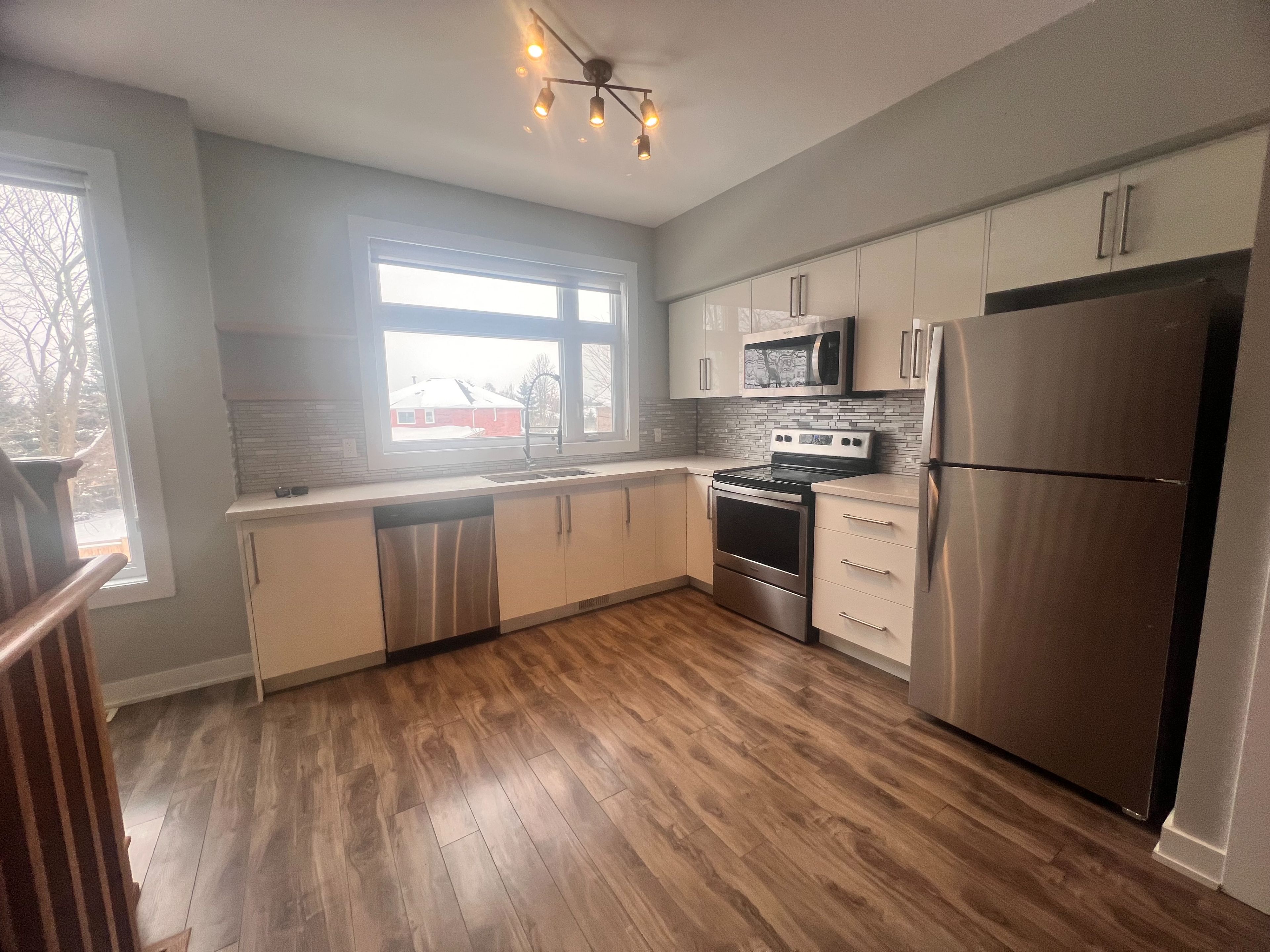 • Modern open concept layout with 9 ft ceilings and natural light.