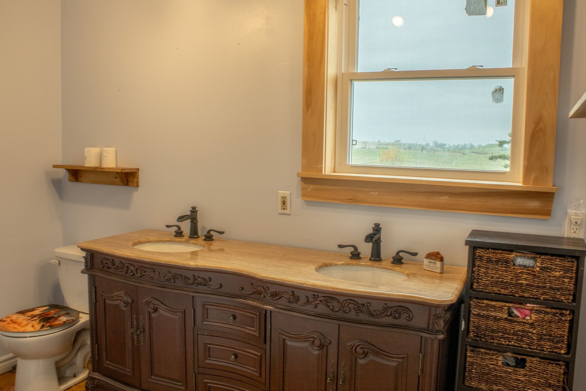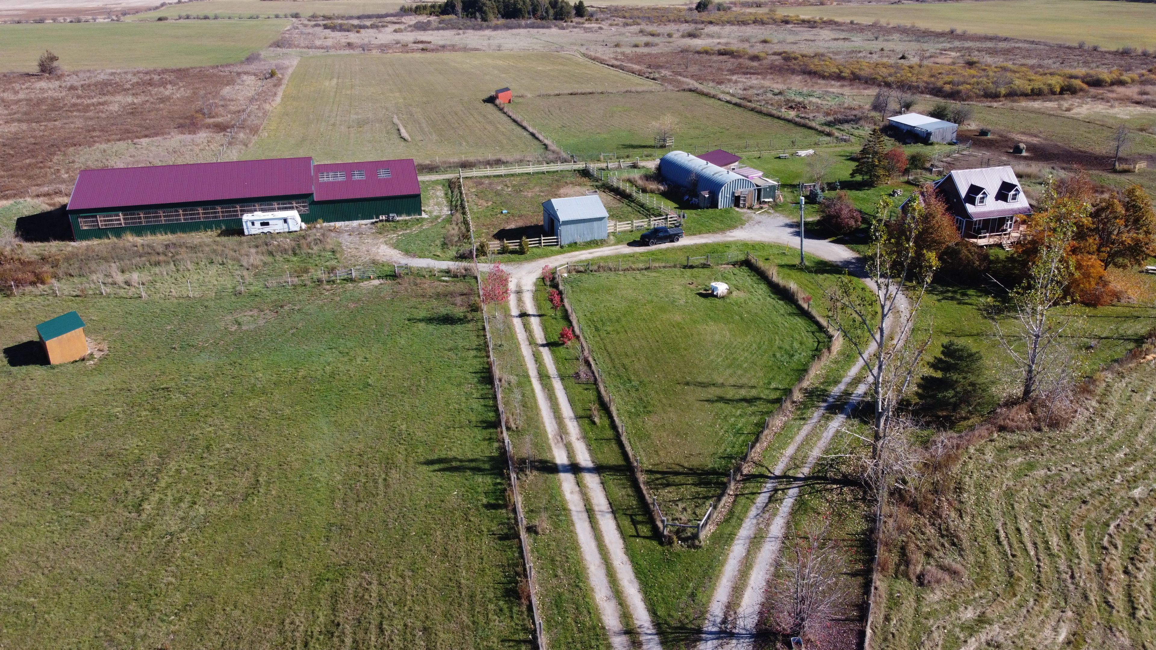Welcome to an exceptional 103-acre equestrian and agricultural property offering privacy, versatility, and income potential. A scenic tree-lined driveway leads to this peaceful countryside setting, surrounded by expansive open fields ideal for horses, cattle, sheep, or mixed livestock. The property is well equipped for equestrian use with a brand-new three-stall stable featuring 12' x 12' stalls and a concrete walkway, with capacity to add additional stalls. A 60' x 100' arena built in 2022 offers excellent space for riding, training, and lessons, while also providing outstanding flexibility for agricultural use. The arena is well suited for livestock handling, winter feeding, lambing or calving, equipment storage, or other multi-purpose farm uses. Multiple paddocks with electric fencing and three run-in shelters support efficient grazing and herd management. The acreage offers strong potential for rotational grazing, with approximately 30 acres already in hay production, supporting scalable livestock operations while maintaining a premium equestrian setup. The upgraded log home blends rustic charm with modern comfort, featuring an open-concept eat-in kitchen with granite countertops, island, and walkout to a deck overlooking gardens and fields. The dining room includes a propane fireplace and large picture windows. The primary bedroom offers a three-piece ensuite and two additional bedrooms. The lower level features a separate entrance, family room, and potential bedroom, ideal for an in-law suite or added living space. A rare opportunity to own a versatile farm combining equestrian and livestock potential with peaceful country living.