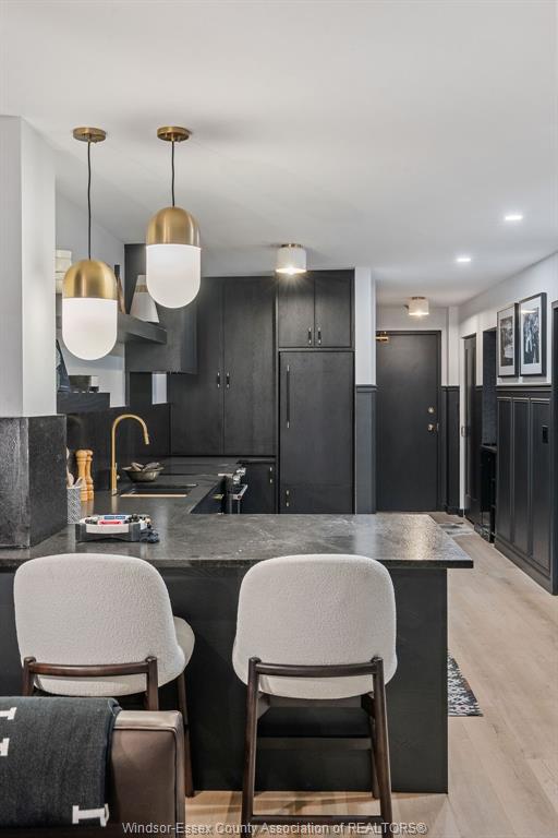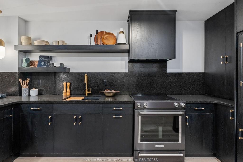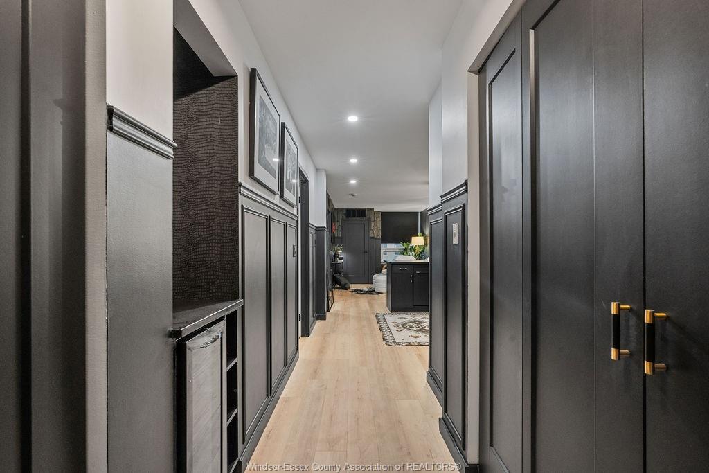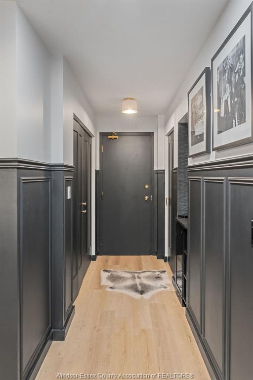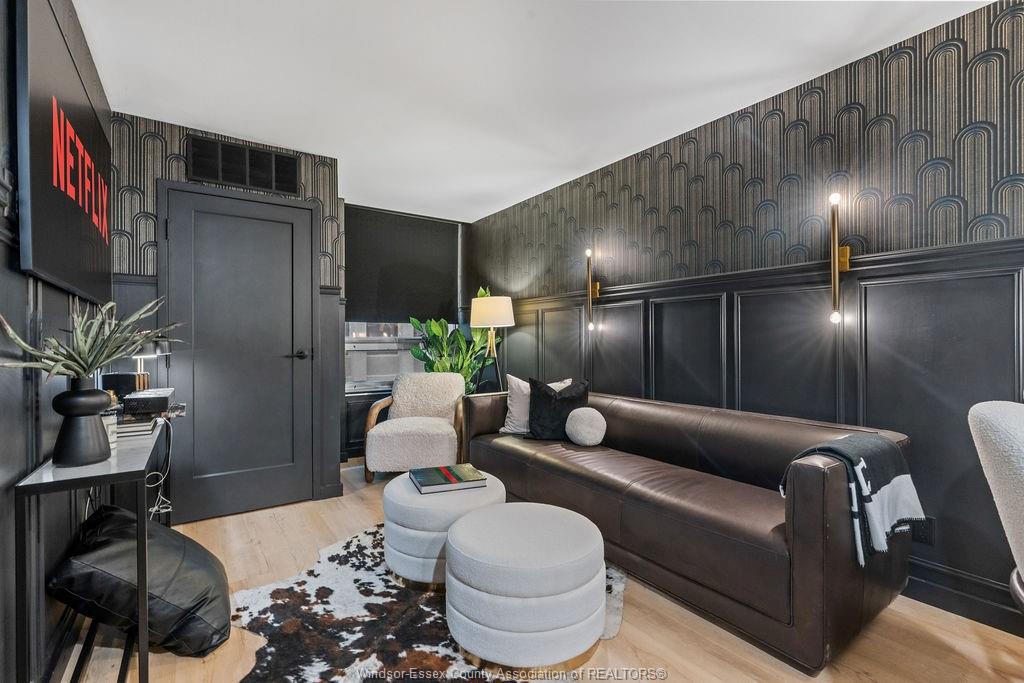 Step into a beautifully reimagined 1 bed, 1 bath condo where every detail has been thoughtfully curated. This fully renovated unit blends a dark, moody aesthetic with elevated finishes from ceiling to floor. Light engineered hardwood flows throughout, creating a striking contrast against rich tones, while custom wainscoting and designer sconces set a warm, sophisticated ambiance. The kitchen features high-end appliances and a stylish bar nook complete with a bar fridge—perfect for displaying your favourite whisky and books. Enjoy the added convenience and security of underground parking, plus the bonus of an owned hot water tank. Ideally located just moments from the tunnel and bridge, offering effortless access to the u. S. This unit can also be purchased fully furnished, offering a seamless turnkey opportunity. Whether you're a first-time buyer with an eye for design, an investor seeking a standout property, or a downsizer looking for refined living, this condo delivers. A truly unique space that must be seen to be fully appreciated.