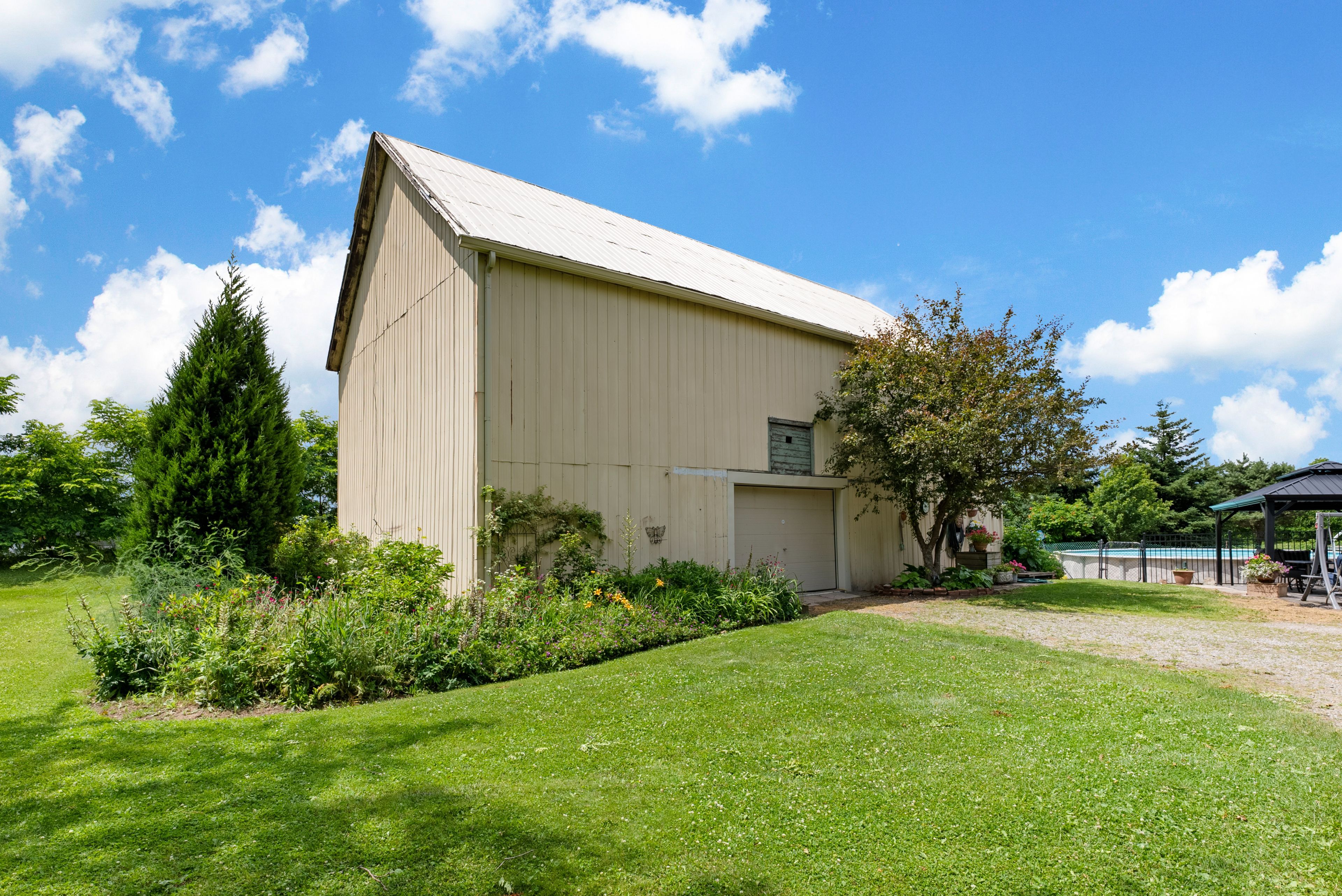Country charm, endless possibilities - 1 acre with home, barn & highway visibility -dreaming of space to live, create, and grow? This picturesque 1-acre property offers the perfect blend of country lifestyle and opportunity-ideal for young professionals, downsizers, or entrepreneurs seeking room for a home, hobby farm, or small business. Welcome home to your own little piece of paradise. The inviting farmhouse features 3 bedrooms and 1 bathroom, offering a cozy and comfortable living space filled with character and warmth. Surrounded by mature trees, flourishing fruit orchards, and lush greenery, the property provides a serene natural setting with seasonal views that evolve beautifully throughout the year. Nature lovers will appreciate being just a short walk to the lake, while still enjoying easy access to nearby amenities and commuter routes. A standout feature of the property is the large 30 x 50 barn equipped with hydro and water, making it ideal for car enthusiasts, workshop space, storage, hobby farming, or creative business ventures. With over an acre of land, there is plenty of space for gardens, chickens, outdoor projects, or future plans for your dream home. Whether you're looking to embrace a simpler country lifestyle, create a home-based business, or simply enjoy the freedom of wide-open space, this unique property offers endless possibilities.