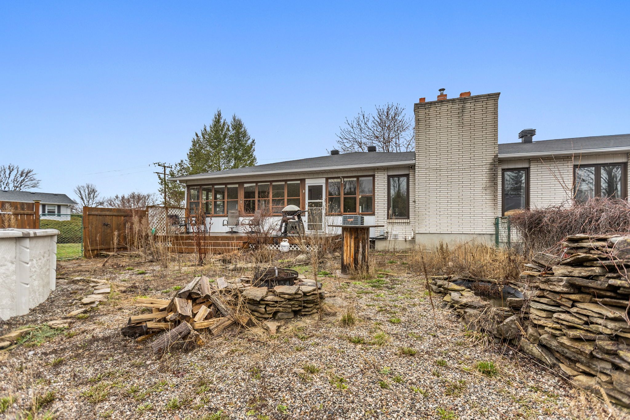 Right in the heart of osgoode, this is one of those rare properties that gives you way more than you expect at first glance. Set on a corner lot with a dual driveway, the home is deceptively spacious; from the moment you walk in to the large foyer and grand formal dining room, to the open concept kitchen with an awesome amount of cupboard space, large island & granite counters to the living room with a fireplace & floor to ceiling stone wall. There's an expansive three-season sunroom perfect for morning coffee, afternoon drinks and with a perfect view of the thoughfully divided backyard and pool. The central backyard features flagstone walkways, river rocks, a lovely above ground pool and deck. There's a separate fully fenced section perfect for family pets and a large side yard with potential of building a carriage house, or a shop for a home based business. The fully equipped lower level with a beautiful kitchen, dining area, large living room and office has amazing potential for for multigeneral living. The shop/workbench area in the basement is a functional and charming space with every detail thought out. Top it all off with a huge mud room, main level laundry and a garage big enough for your vehicle and toys. This is a home that adapts to you you want to live; now and down the road.