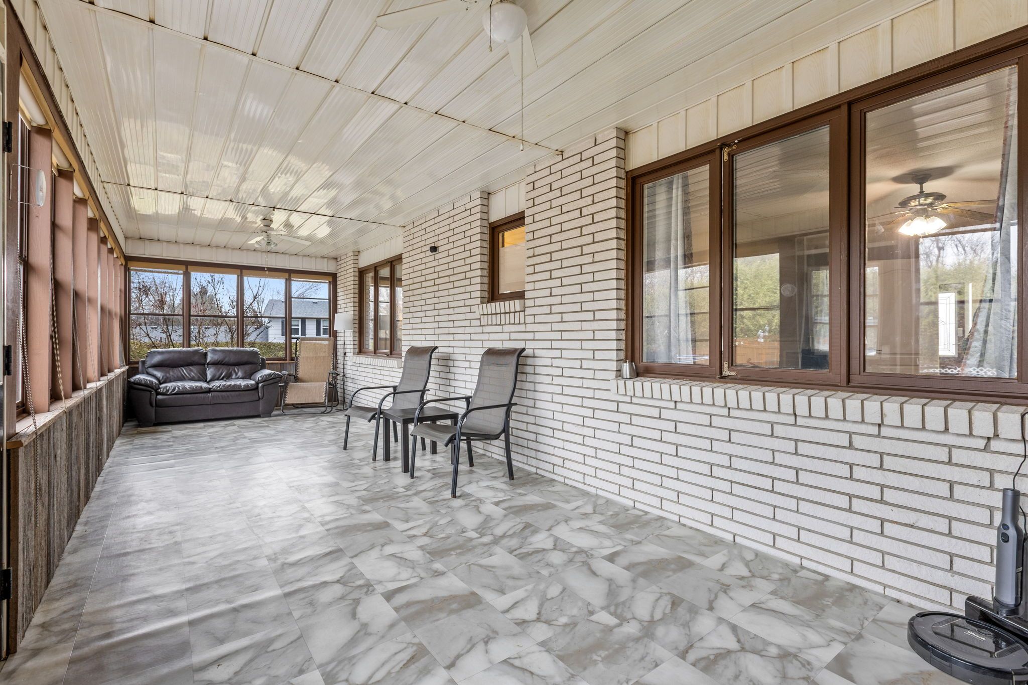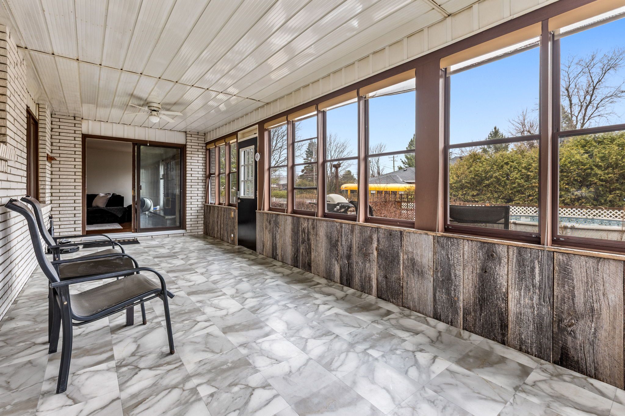 • Expansive three-season sunroom offers great views of the backyard.
