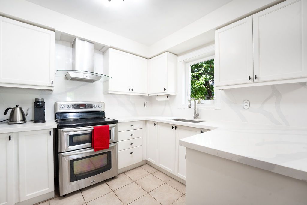 • Renovated kitchen with stainless steel appliances and quartz countertops.