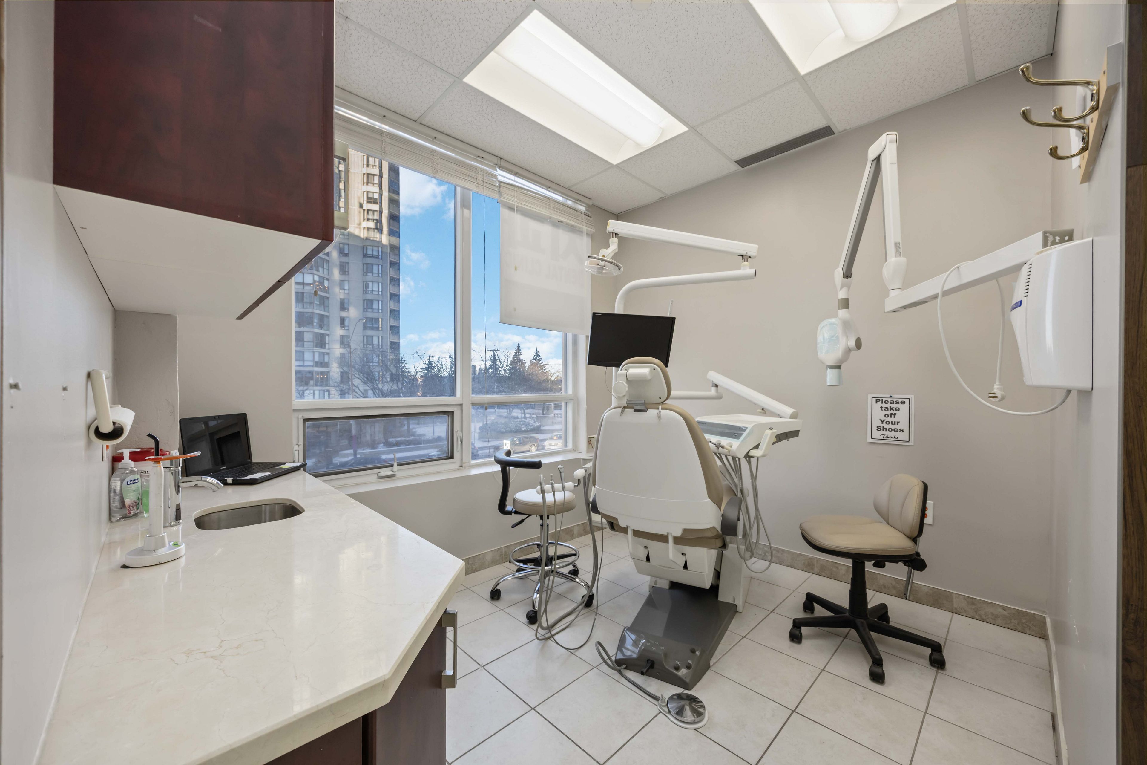 Location location location /prime turn-key dental practice available in one of the most sought-after high-traffic corridors in north york. Located steps from yonge st. & finch ave., this modern 816 sq. Ft. Clinic is situated in a premium commercial building developed by tridel, offering exceptional visibility, steady pedestrian flow, and unmatched convenience for both clients and staff. Just minutes to finch subway station, this location provides outstanding accessibility and exposure for any dental professional looking to grow or relocate their practice. This impeccably maintained space is fully equipped and move-in ready, featuring 3 well-designed operatories, a dedicated x-ray room, and a professionally planned layout ideal for efficient patient flow. The clinic comes complete with dental chairs, wall unit, pan, and essential dental equipment, providing a rare opportunity to step into a functioning practice without the cost or time required for a full build-out. The reception area includes a connected server setup, ensuring smooth administrative and digital workflow. A security system is already in place for added peace of mind. The building offers visitor parking, making patient visits convenient and stress-free, while utilities are metered separately for better cost control. Whether you are an established practitioner looking to expand or an entrepreneur entering the dental industry, this location offers everything needed to operate at a high standard from day one. With its strategic location, modern infrastructure, and complete equipment package, this is an exceptional opportunity in one of toronto's busiest and most desirable neighbourhoods. Ready for immediate use and ideal for those seeking exposure, accessibility, and long-term growth potential. Don't miss out on securing a high-demand space in a thriving area.