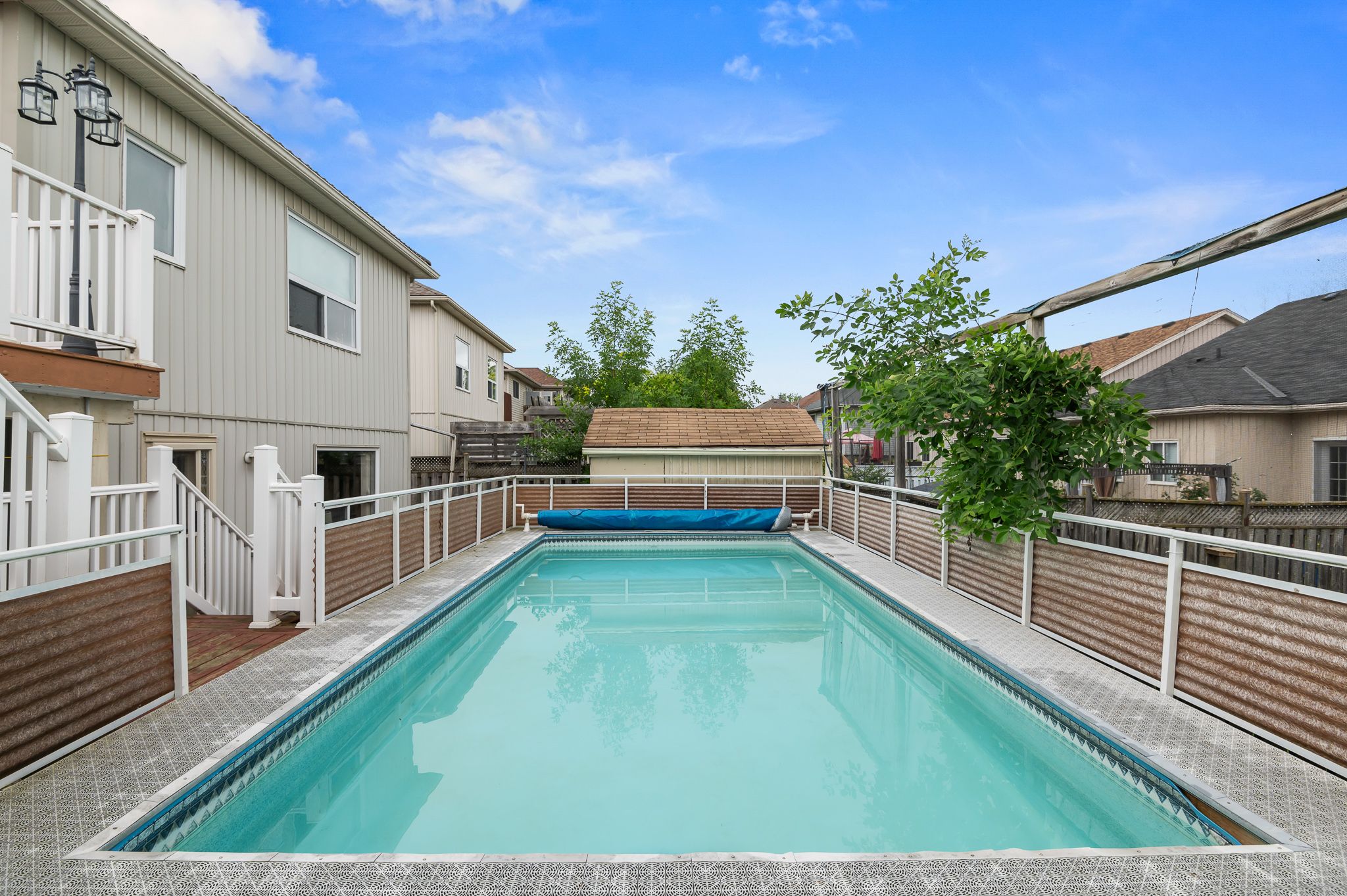 Welcome to this beautiful bungalow offering 3 spacious bedrooms on the main level plus 2 additional bedrooms in the fully finished walk-out basement! This home features two primary bedrooms - one on each level! Perfect for a growing family or multi-generational living! Located in a family-friendly neighborhood, just steps from schools, a rec centre and greenwood park! This home combines comfort, convenience, and endless potential. The main floor features a bright, open-concept living and dining area with a walk out to the large deck perfect for entertaining. Downstairs, a second full kitchen, separate entrance, and spacious living room, provides incredible in-law suite or income-generating potential. Enjoy summer days in your dream backyard, complete with a large above ground pool, spacious patio, and second storey deck. This turn-key property offers flexibility, functionality, and a prime location. Don't miss your chance to own this rare gem!