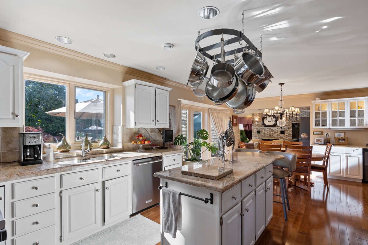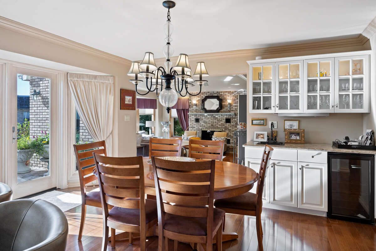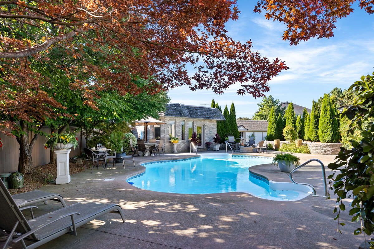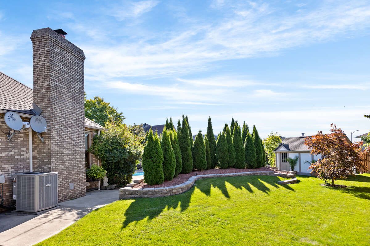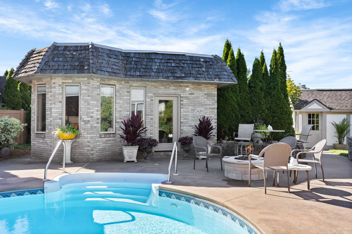 For more info on this property, please click the brochure button. A rare and extraordinary property combining a unique location on a nearly 17,028 square foot, pie shaped lot in the heart of tecumseh. This captivating full brick property spans 4244 square feet, boasting 4 generous bedrooms on the upper level, complemented by 1 additional room on the upper level, and 2 full bathrooms on the upper level, 1 piece bathroom on the main level and 1 piece bathroom in the basement with a finished basement. Step inside to a welcoming ambiance, where a spacious family room with a natural fireplace and home office adorned with hardwood and ceramic tile flooring & armstrong zone system. Furnace/ac/hrv/humidifier are all new installed as of 2019. The gourmet kitchen is a culinary haven, featuring granite countertops, custom cabinetry offering ample storage, and high-end stainless steel appliances. Outside, the resort like space features a full brick and flagstone upper patio with a built-in barbeque, pool, a fully bricked pool house that is fully insulated, heated and air conditioned that is approximately 400 square feet and a shed that is approximately 160 square feet. The pool liner is approximately 4 years old with a heater/pump that is about 5 years old. The outside is an extremely backyard sanctuary with neighbours not in site, ideal for hosting gatherings. Gym and wine cellar located in the basement, electric fireplace on the pool deck; new roof installed in 2016 with 45 year shingles; gas fireplace in a sitting area on the main level and natural fireplace in the family room; storm and sanitary both have back flow preventers; hot water tank is owned and new installed as of 2018; all new anderson windows installed in 2018; automatic sprinkler system; driveway replaced in 2016; fiber and mnsi available to the house!