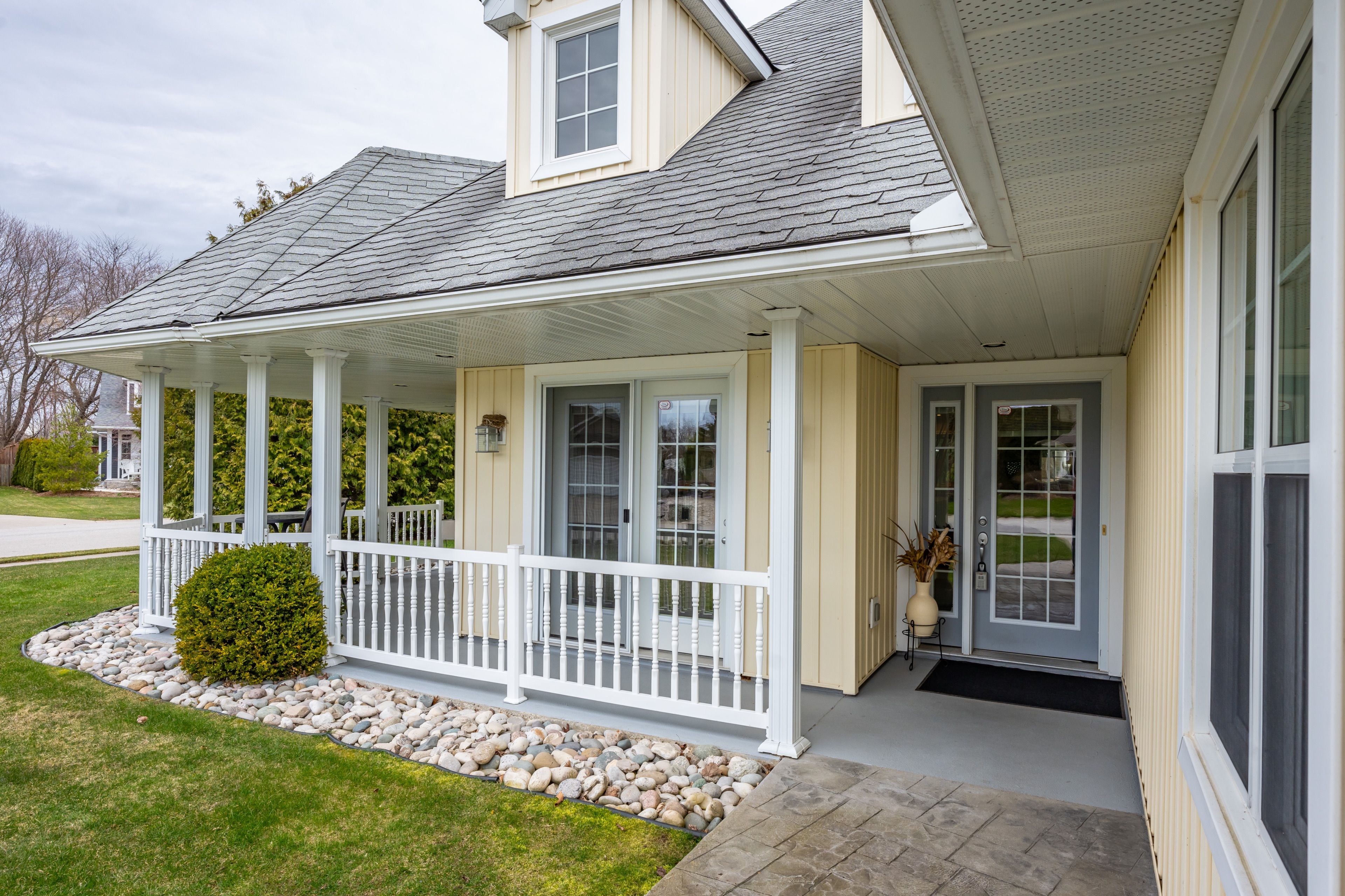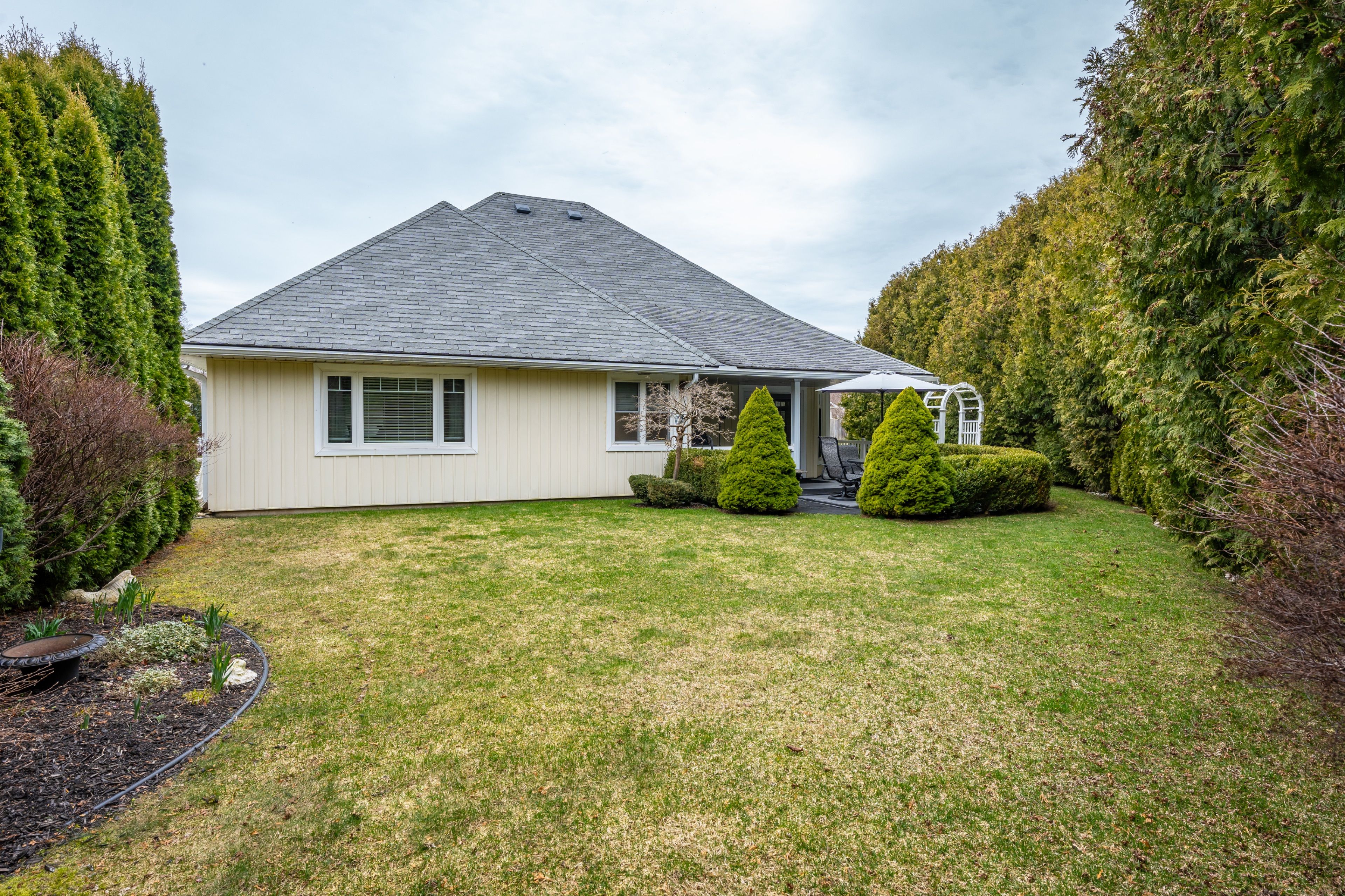Discover your dream retirement retreat in this meticulously maintained, single-level residence situated on a beautiful reverse pie lot along meadow lane in southampton. Offering unrivaled comfort with a stair-free layout, the home is built on a concrete pad featuring efficient in-floor natural gas heating throughout. The heart of the home is a sun-drenched open-concept living area, where a cozy gas fireplace, spacious dining area, and well-appointed kitchen are framed by oversized windows that capture stunning vistas in every season. The primary suite serves as a private sanctuary with a large walk-in closet and a luxurious ensuite featuring a soaker tub and separate shower. A second bedroom enjoys convenient "cheater" ensuite access to a main bathroom via a pocket door, while a versatile third bedroom or den stands ready to accommodate guests with a day bed or murphy bed. The exterior of the property is equally impressive, boasting a wrap-around porch and three separate entry points that lead to a picturesque, private yard shaded by towering cedars and a weeping birch. Whether you are hosting a cookout in the covered bbq area with its dedicated gas line or relaxing in a hammock, the outdoor space is designed for effortless enjoyment. Life here is defined by convenience and leisure; the property backs onto the fitness corner for yoga and exercise classes, is just steps from the eight courts of the southampton tennis club, and sits a short stroll away from the sandy shores and shallow waters of south street beach. With low-maintenance vinyl siding, an in-ground irrigation system, and no condo fees to worry about, this home allows you to fully embrace the sensational southampton lifestyle. Be sure to click on the "mutimedia or virtual tour button".