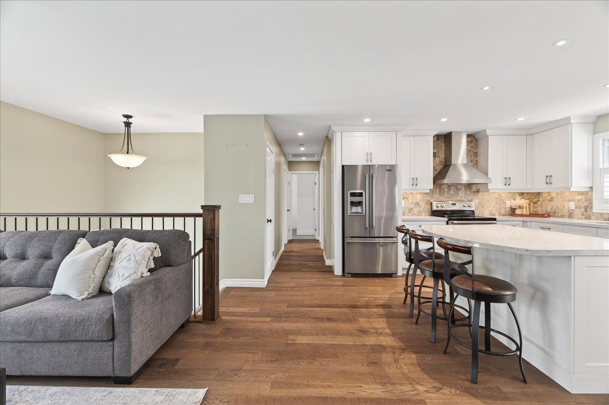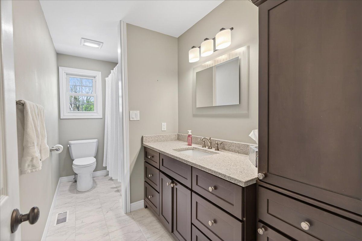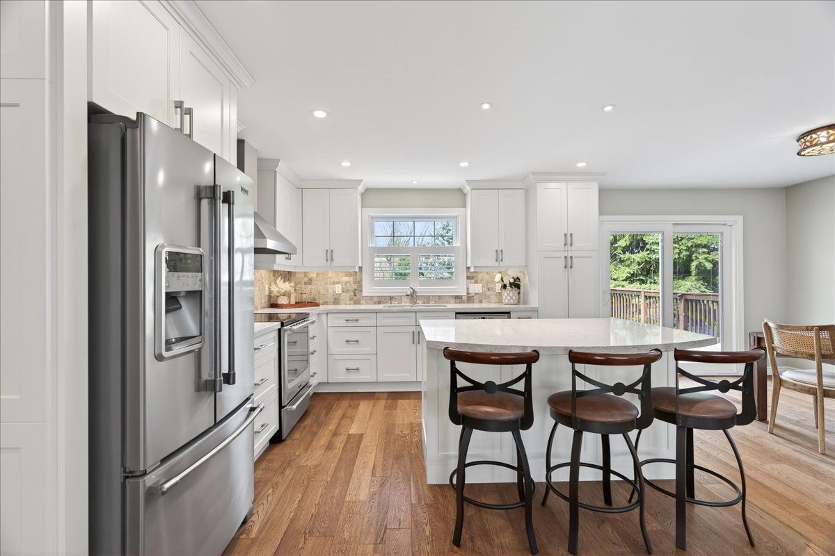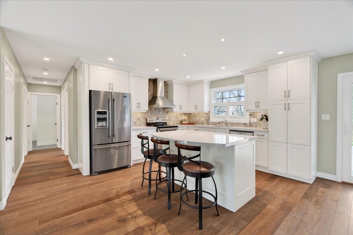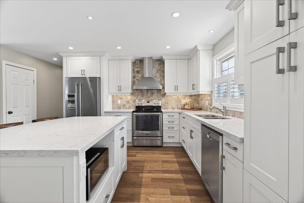 • Updated kitchen featuring quartz countertops and stainless steel appliances.