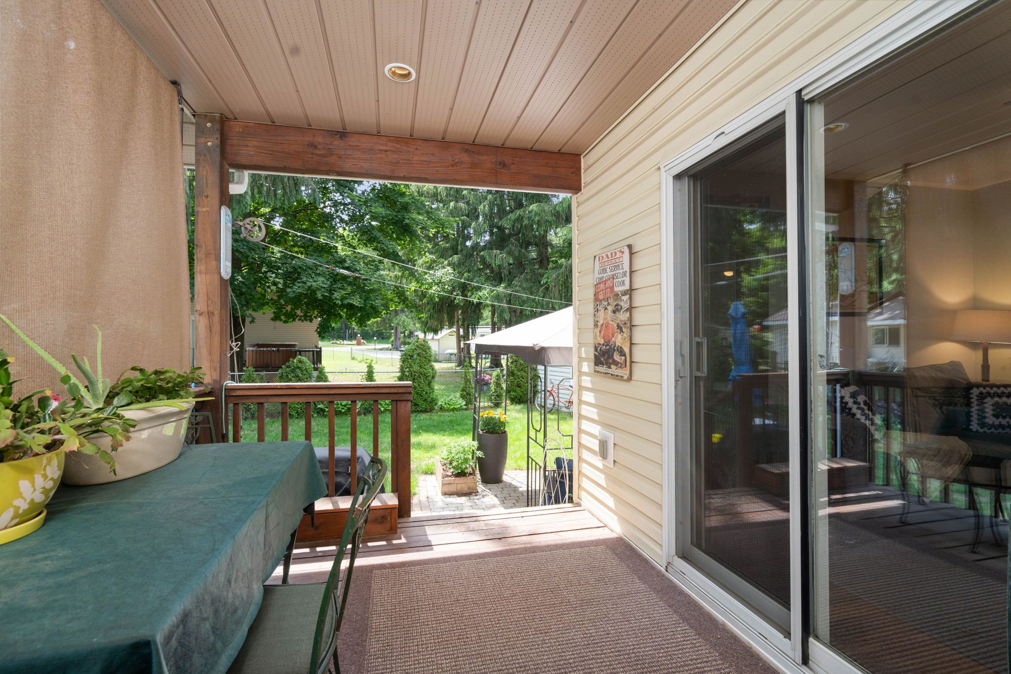 Welcome to candlelight village, one of simcoe countys most desirable adult-living communities, just minutes from downtown midland and the shores of georgian bay. This beautifully updated double-wide modular home offers the perfect balance of comfort, privacy, and community ideal for retirees or anyone ready to downsize and simplify life. Set among mature trees in a quiet, friendly neighbourhood, this home feels serene and inviting. Step inside and youll be amazed by the bright, open layout featuring two bedrooms plus a family room perfect for guests, hobbies, or a 3rd bedroom . The spacious living and dining areas flow effortlessly into a modern kitchen designed for easy, comfortable living. Everything is on one level, making the home accessible and functional for everyday life. Pride of ownership shines through in every detail. Enjoy your morning coffee on the covered deck, or tend to your garden in the sunshine. With multiple outbuildings, there is a plenty of extra storage for tools and seasonal items, so everything stays neat and organized. Residents of candlelight village appreciate the peace of mind that comes with low-maintenance living. Monthly fees include water, snow removal, and road upkeep, allowing you to focus on what matters most. The community also offers an optional clubhouse and social club, where you can connect with friendly neighbours at your own pace. Just minutes away, midland offers all the essentials shops, restaurants, healthcare, marinas, walking trails, and cultural attractions like the wye marsh and sainte-marie among the hurons. If youre seeking a quiet, affordable, and comfortable lifestyle, this home delivers everything you need for a truly worry-free retirement.