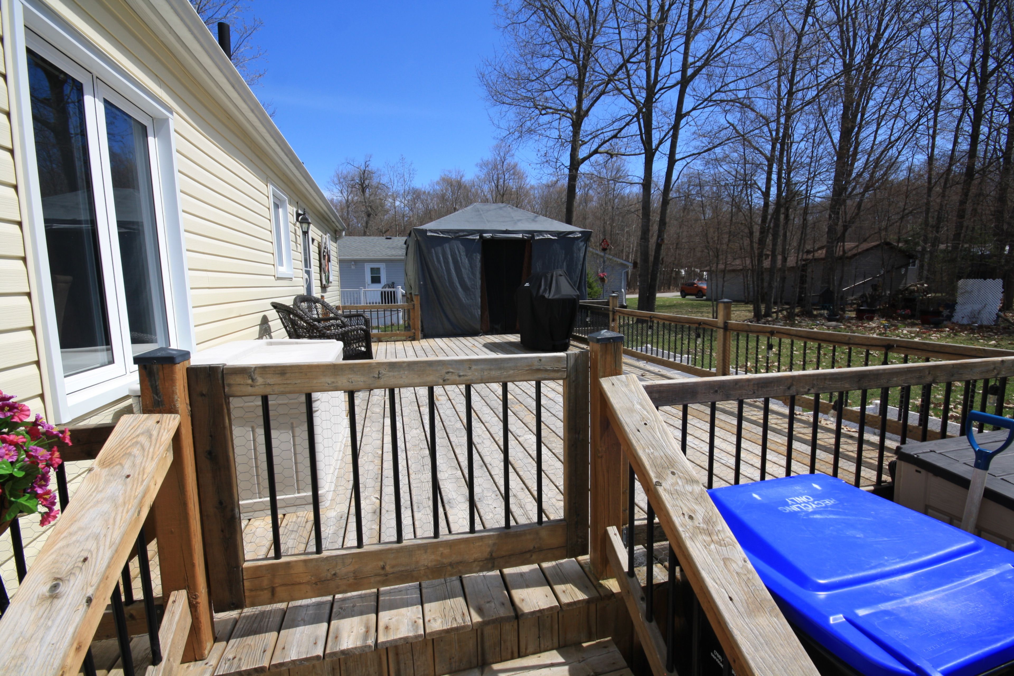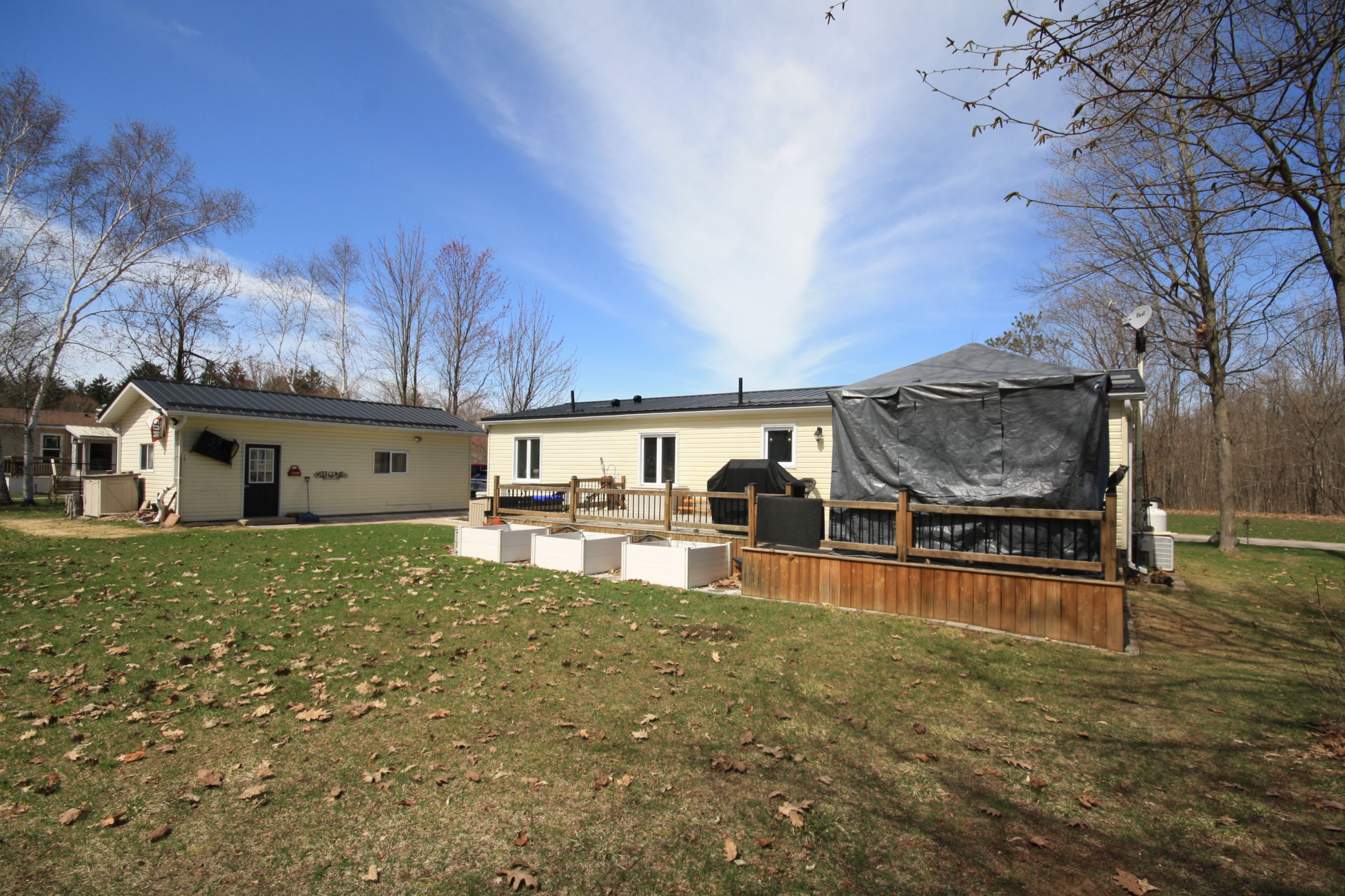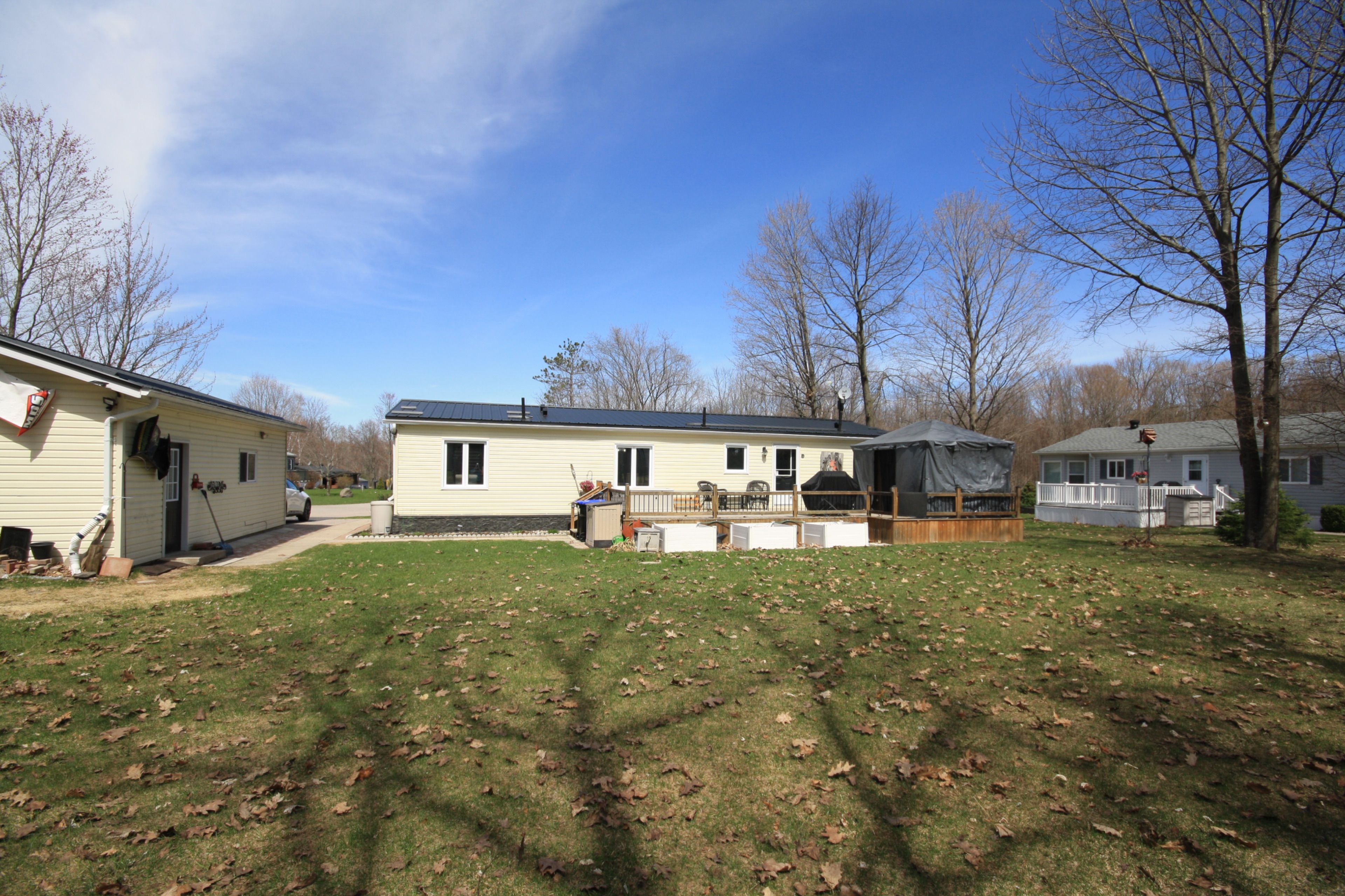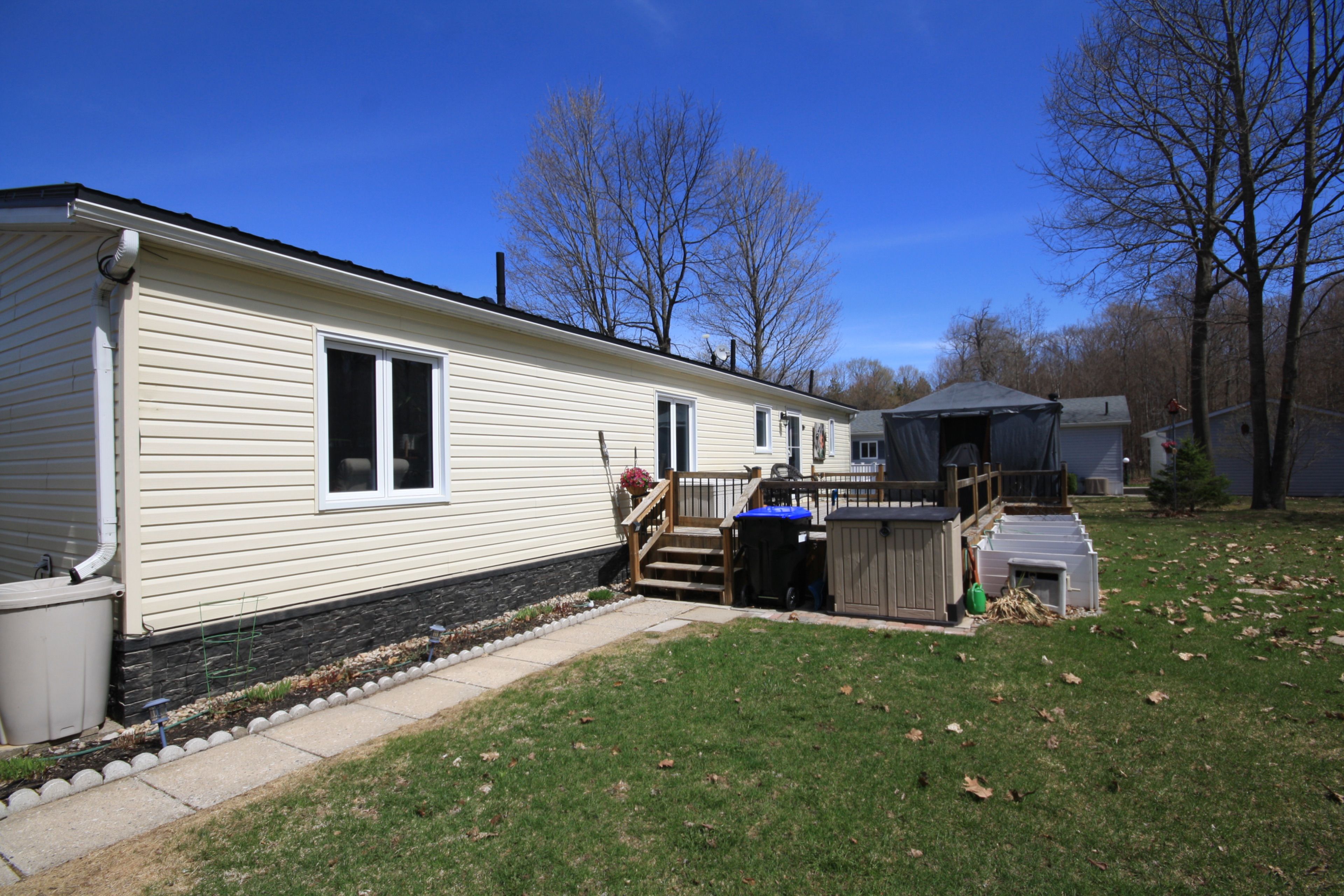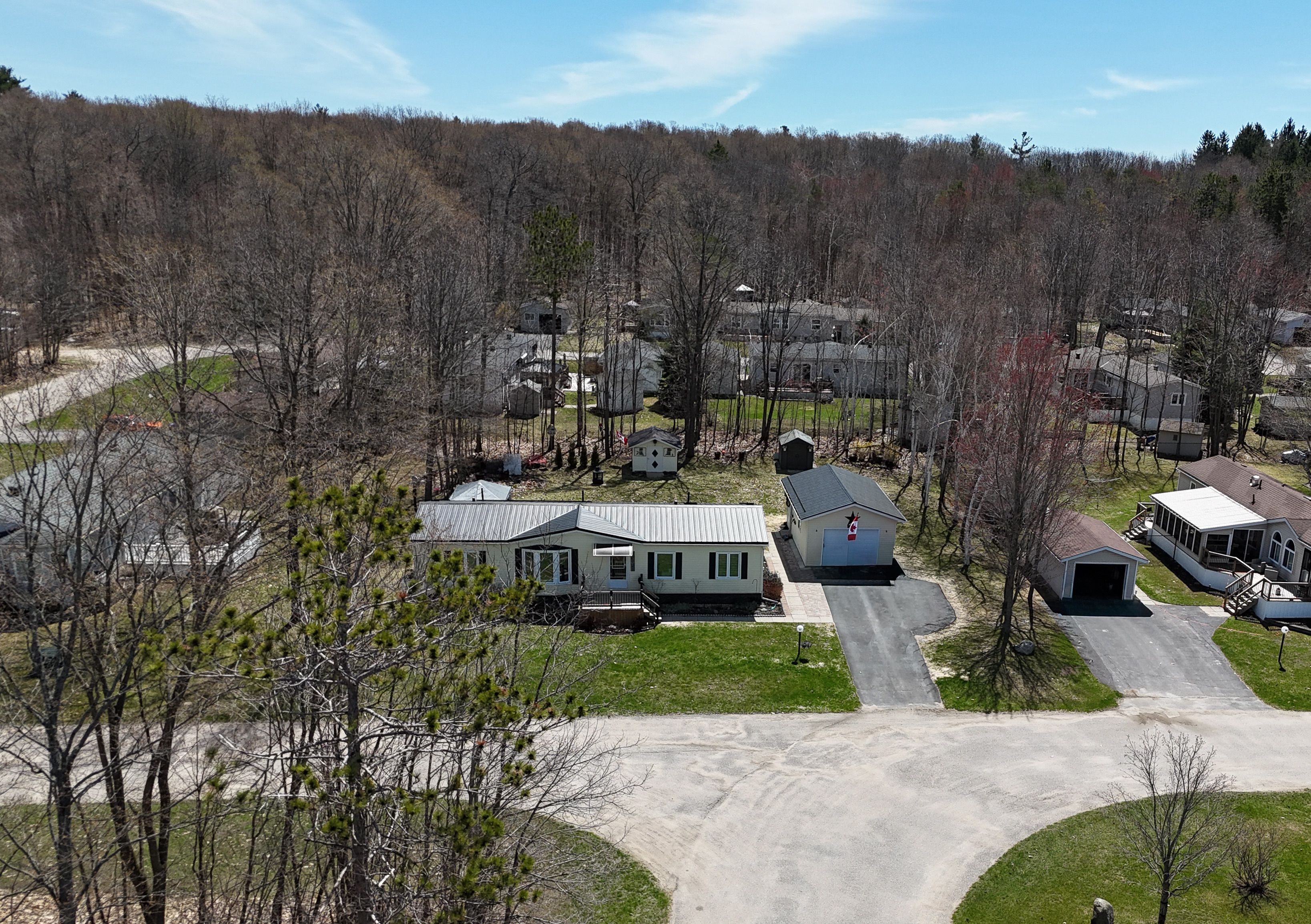 Welcome to candlelight village, a quiet adult lifestyle community just minutes from midland-an ideal setting for those looking to enjoy a relaxed, low-maintenance way of living. Situated on a desirable double-wide lot, this well-maintained modular home offers approximately 1,300 sq. Ft. Of comfortable, single-level living with space to enjoy both inside and out. The home features 2 bedrooms and 2 bathrooms, along with a spacious family room and an open-concept kitchen, dining, and living area that creates a bright, connected main living space. The custom georgian kitchen (2023) is designed for everyday function, complete with quartz countertops and updated appliances. Ensuite laundry with a walkout to the deck adds convenience and easy access to outdoor living. Extensive updates provide confidence and long-term value, including luxury vinyl flooring (2024), updated bathrooms (2021), triple-glazed windows (2018), siding and insulation (2021), and a steel roof (2022). Mechanical upgrades include an electric forced air furnace (2021), hot water tank (2019), and a whole-home generac generator (2023), supporting reliable year-round comfort. Outdoor features include updated decks (2019), offering space to relax or entertain. The oversized insulated single garage includes a dedicated workshop area, and two additional storage sheds provide plenty of room for tools, hobbies, and seasonal items. Set within a well-established adult community close to town amenities, this home is a strong option for those looking to downsize without giving up space, storage, or peace of mind.