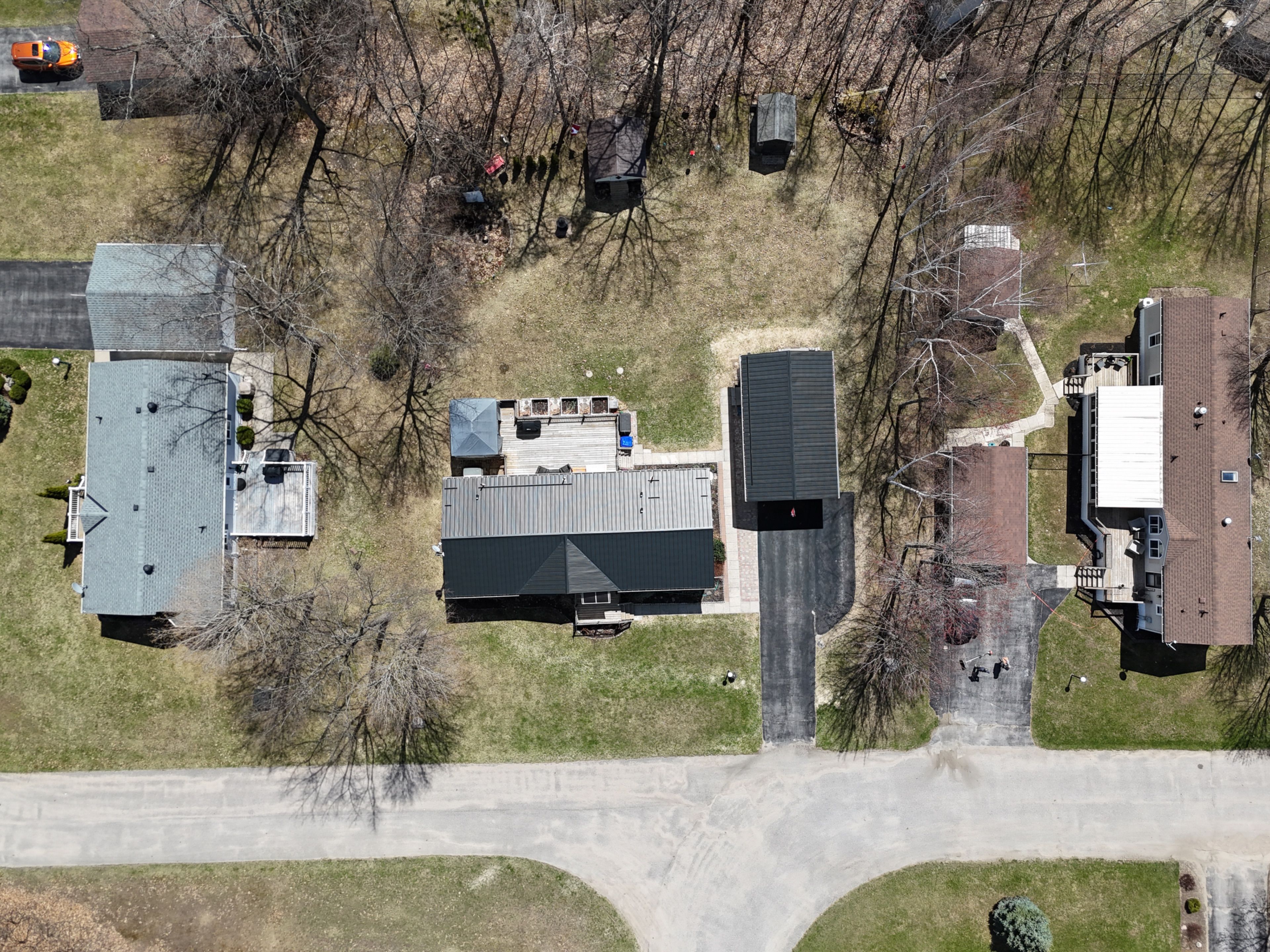 • Oversized garage with workshop area and extra storage sheds.