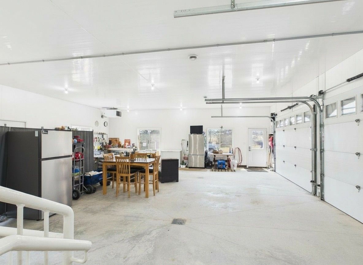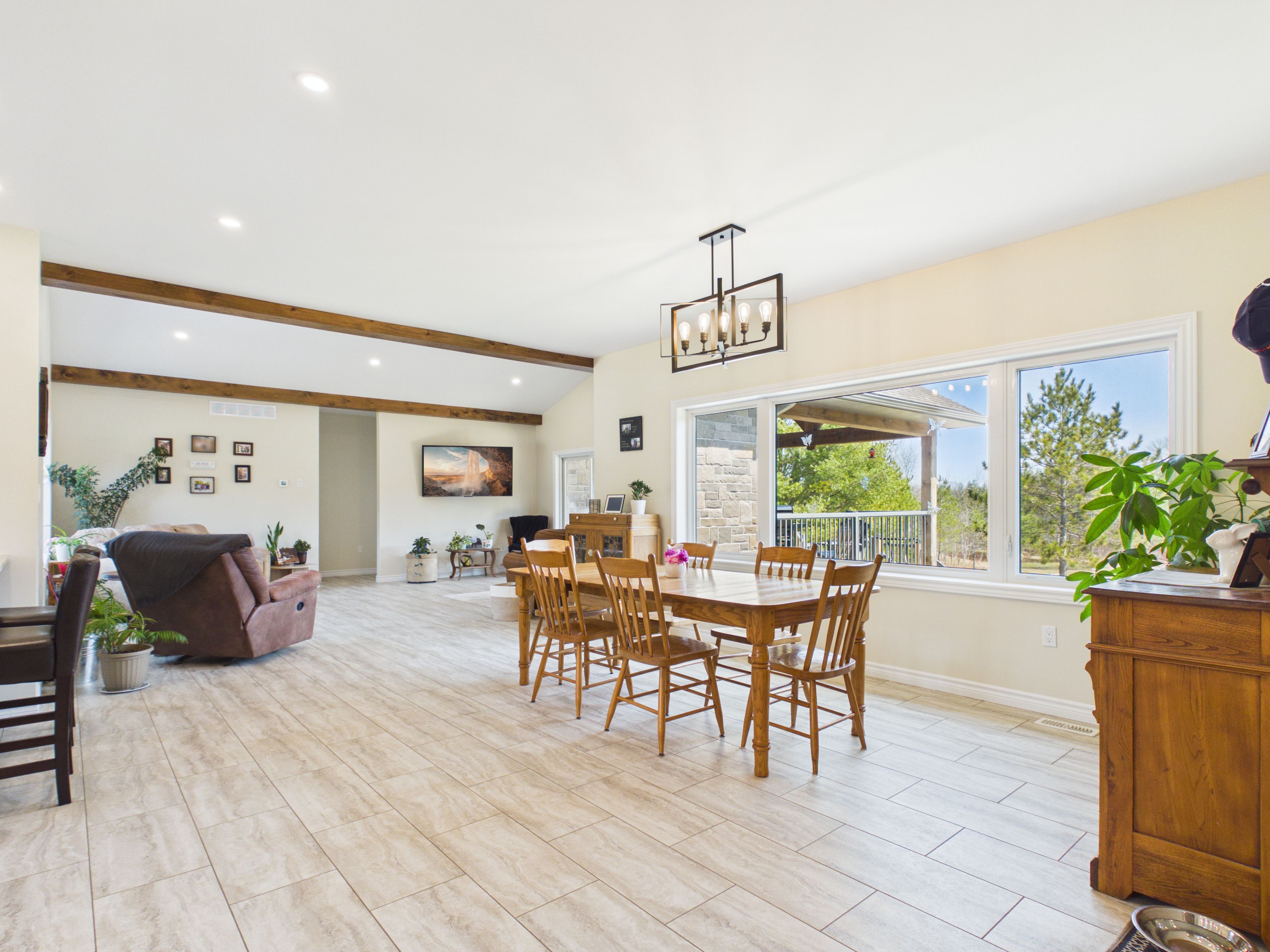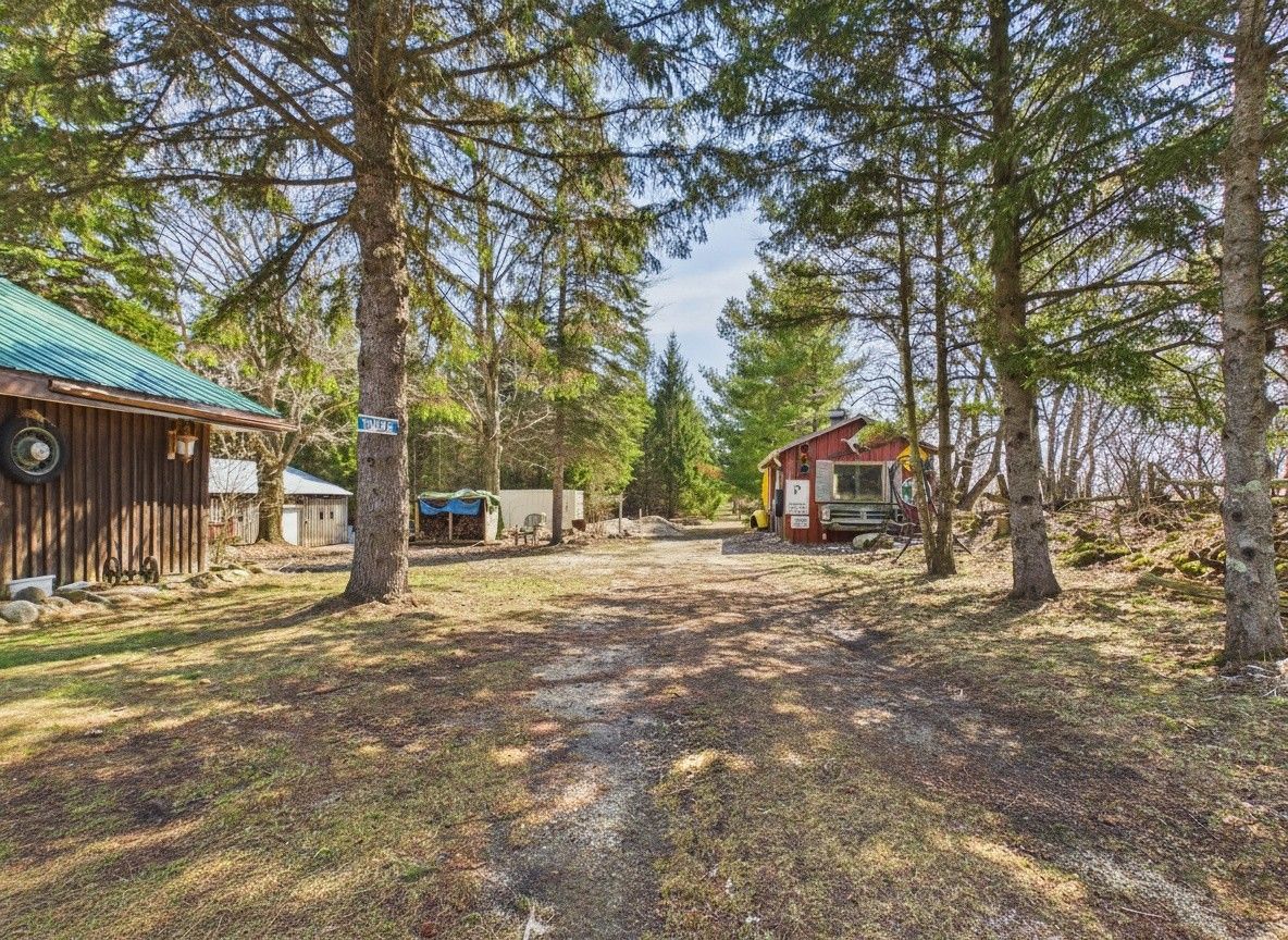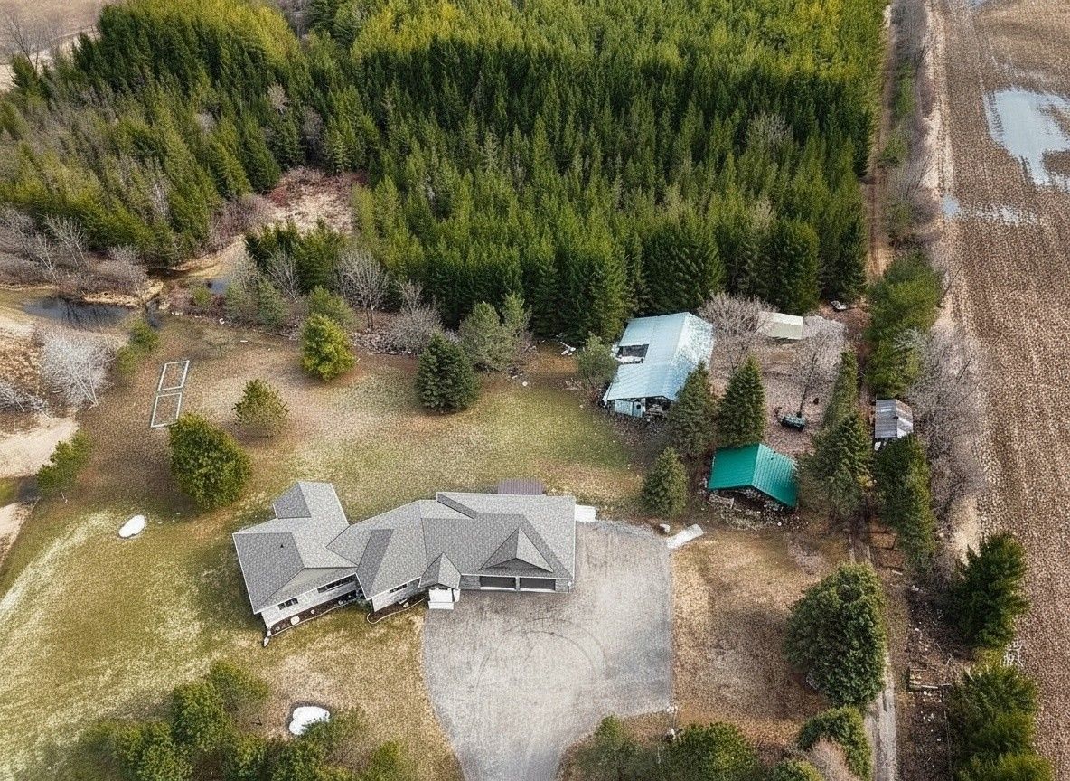 Tucked at the end of a winding lane, this custom-built 2022 shouldice stone bungalow offers the perfect blend of privacy, elegance, and nature. Set on fifty mostly treed acres, including twenty acres of planted pines, ten acres of hardwood bush separated by deer creek, this property is a scenic haven for outdoor enthusiasts. Step inside to a welcoming foyer and bright open-concept main floor, with oversize windows framing the natural surroundings. Or enjoy the landscape from the generous covered timber frame deck. The main floor primary bedroom offers a 4 pc. Ensuite, expansive walk-in closet, and private deck access. A 2 pc. Powder room and laundry room complete this level. The 9 ft. Ceilings on the lower level enhance the sense of openness and space. Features include an open concept second kitchen and living room, with large windows to let in the sunshine and a heat pump to regulate temperatures. A comfortable bedroom and 3 pc. Bath, utility room with additional laundry facilities makes this level in-law friendly and can be accessed by a separate entrance through the garage. A second bedroom is a bonus on this floor, as is the abundance of storage space. The heated double garage is finished with trusscore and has its own heat exchanger keeping vehicles and floors dry in winter months. The adjacent dog grooming room (also finished with trusscore) is a moveable shed! House is heated by f/a propane, has central air, air exchanger, and generator. Several charming outbuildings complete this property making it a hobbyist paradise! They include a workshop, storage shed, and an adorable bunky with covered porch and loft. Raised garden beds are convenient and when you're not trail hiking, engage in a friendly game of horseshoes! Indulge in the serenity of country living while being a short drive from hanover, walkerton, and chesley. This property is truly a rare combination of luxury, functionality, and natural beauty.